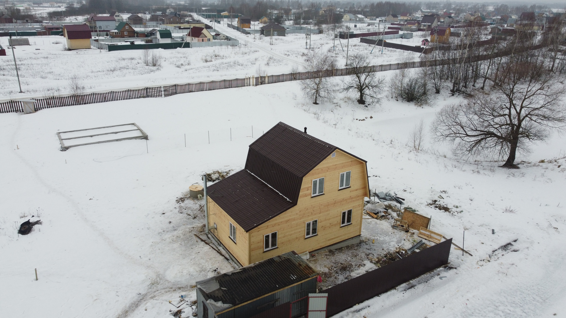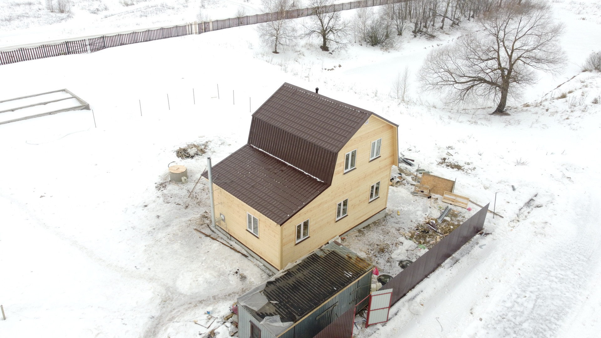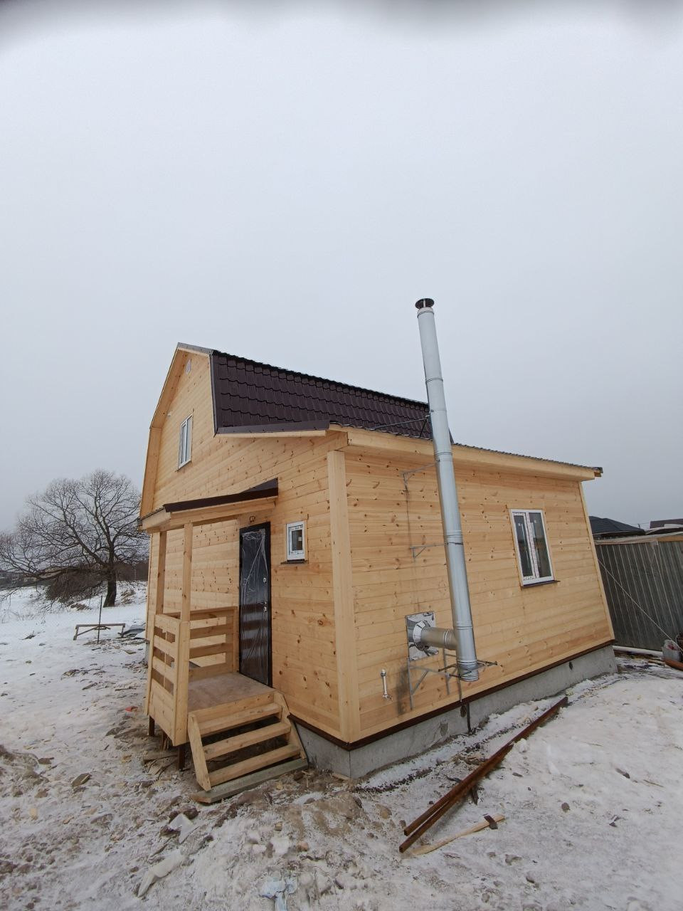 Дом стоит на ленточном фундаменте с армированием, утепленный для зимы 150 мм базальтовая вата, кровля металлочерепица утеплена 200 мм, окна пластиковые-двойные стеклопакеты.