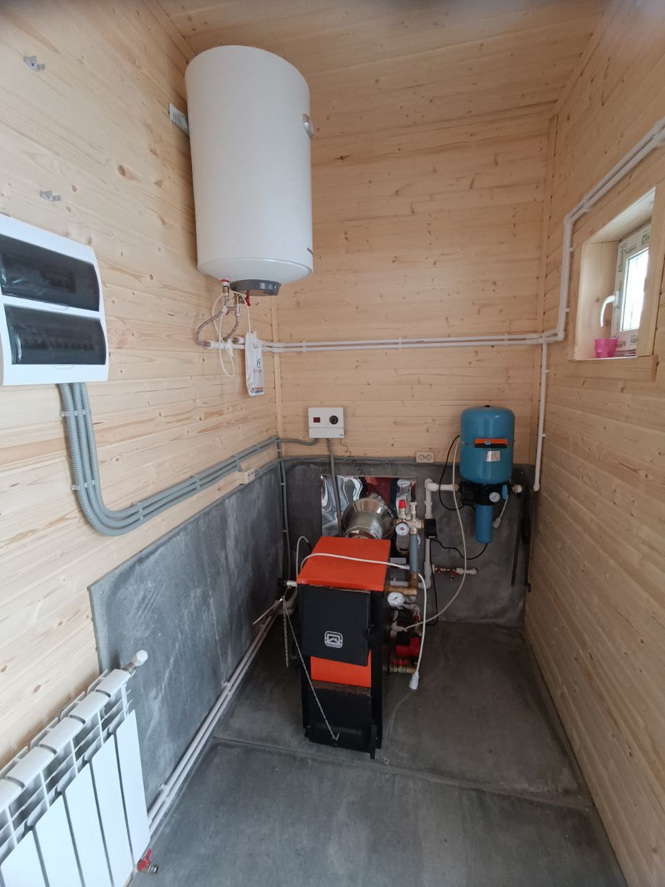- 1-й этаж: котельная, прихожая, кухня-гостиная, комната, холл, санузел (ванна, раковина, унитаз),