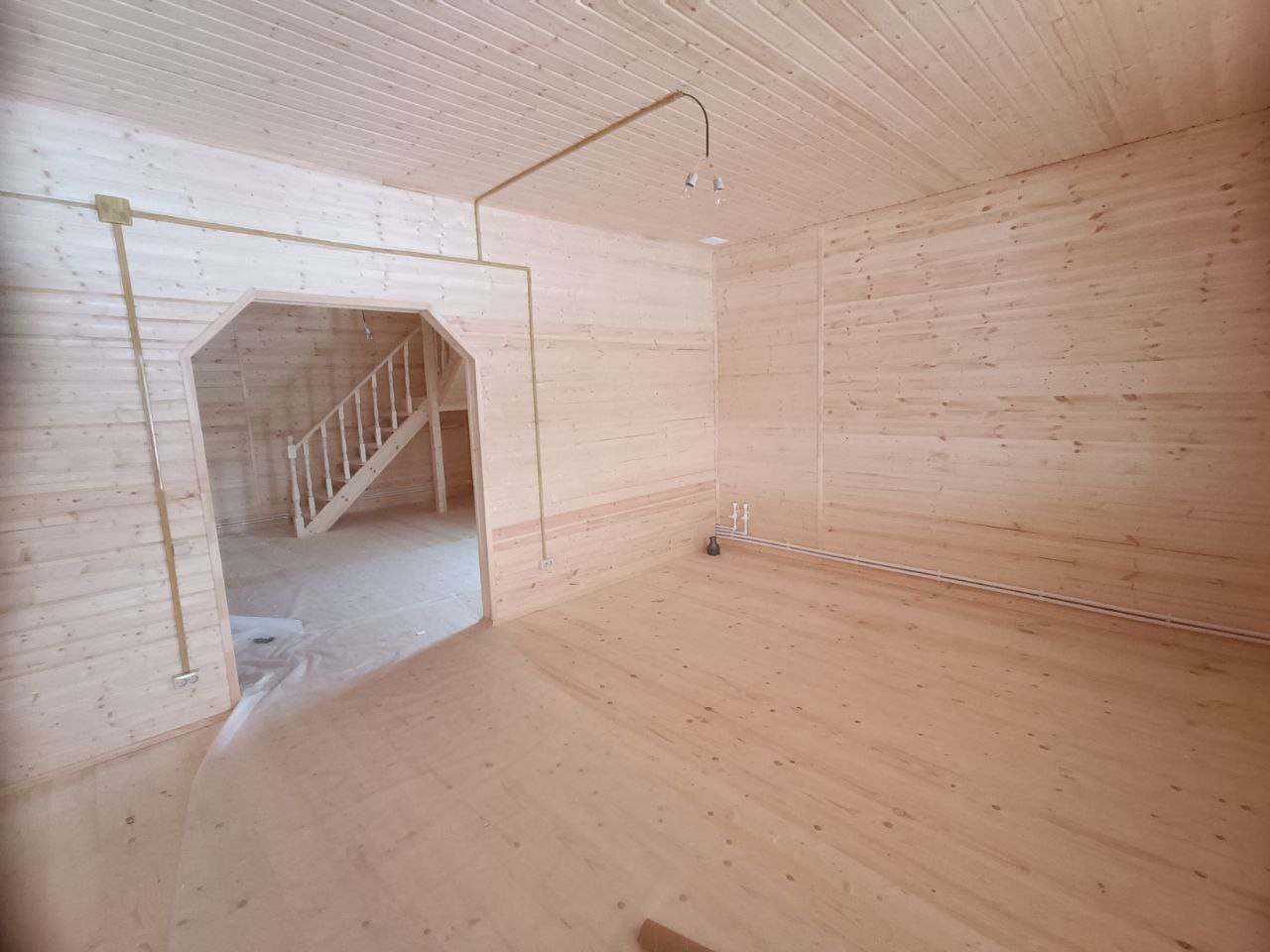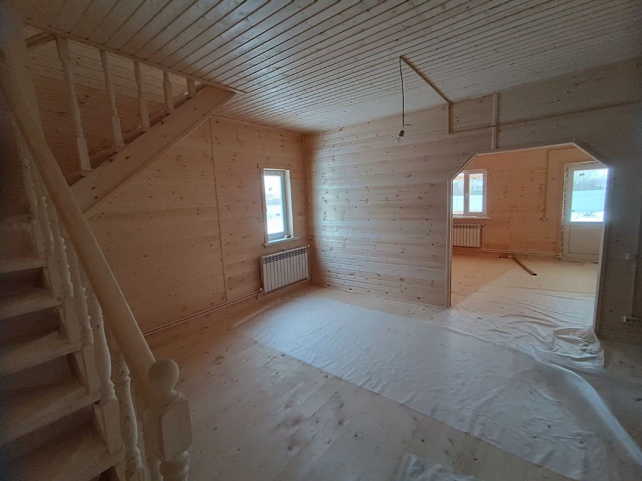 Планировка дома: 1-й этаж: просторная веранда (27 кв.м) , прихожая, холл, кухня-гостиная, котельная( с ГОТОВЫМ ОБОРУДОВАНИЕМ), комната, санузел, (ванная, раковина, унитаз+водорозетка д/стир.машины) 2-й этаж: 3-и комнаты, холл с лестницей, санузел (унитаз, раковина).
