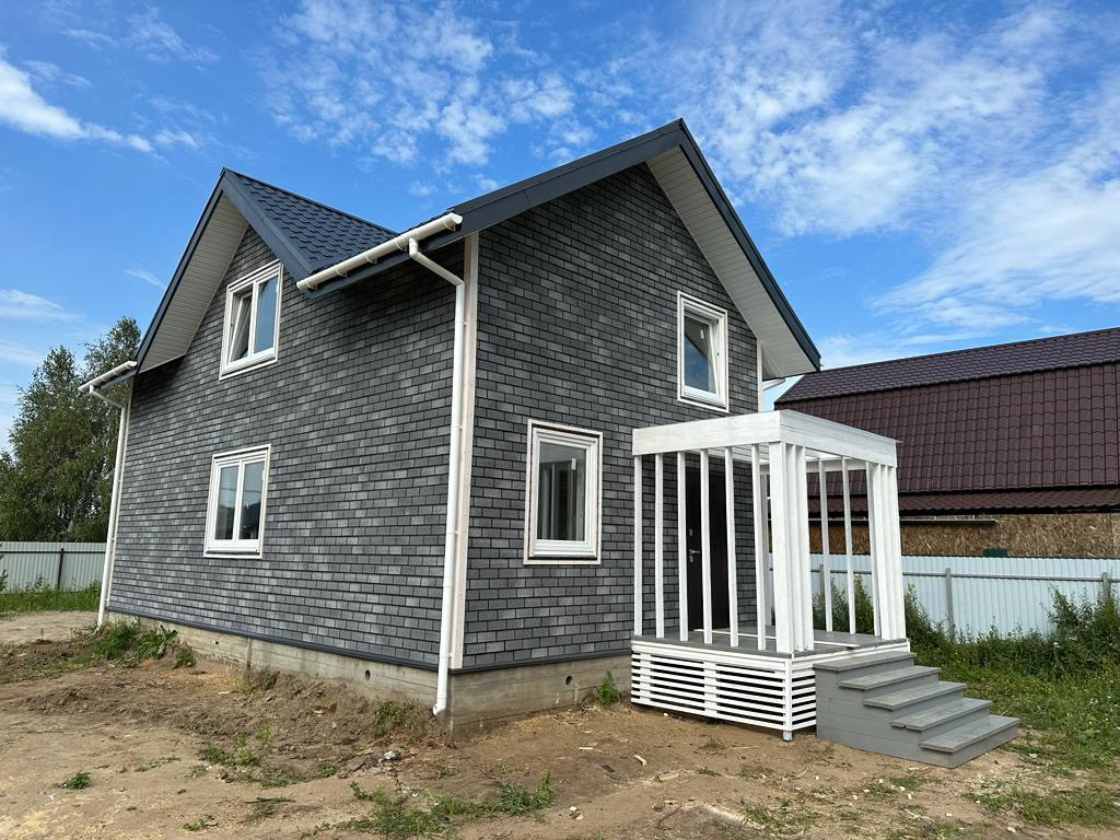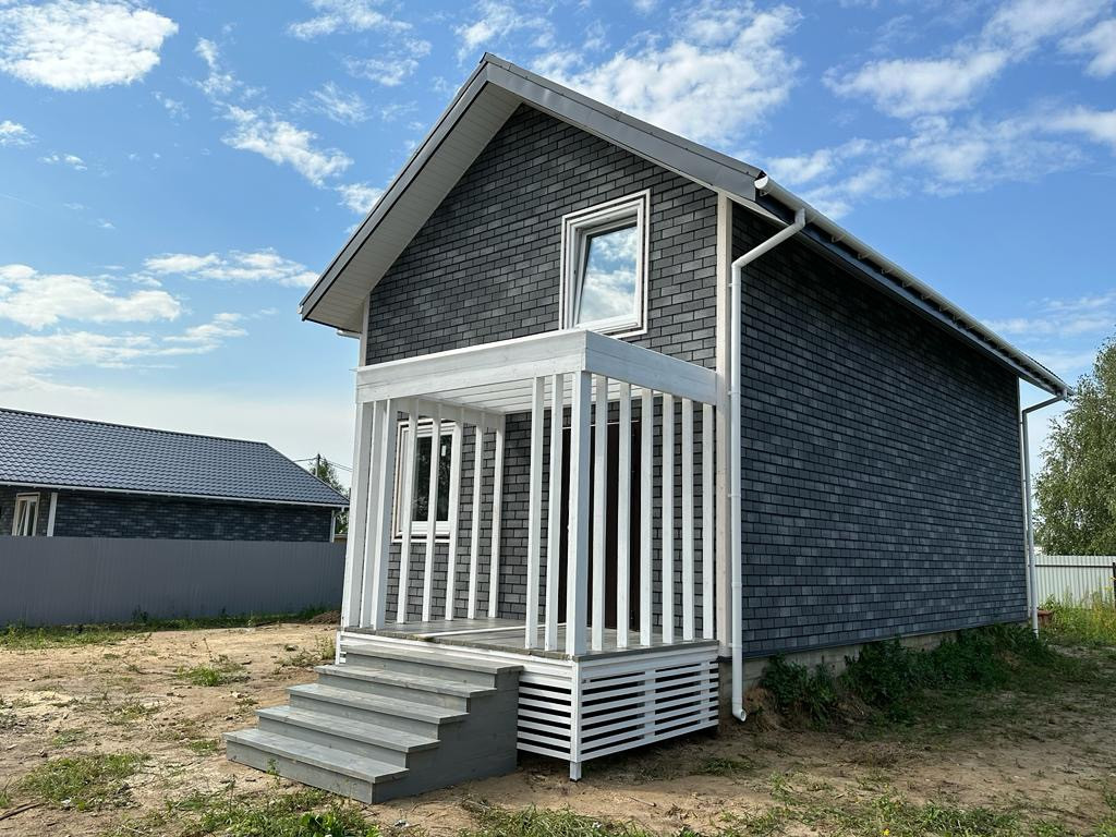Снаружи утеплён и отделан мягким фасадом Хауберг .