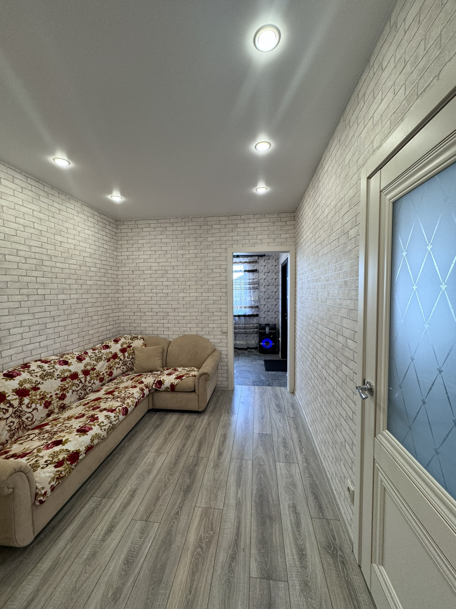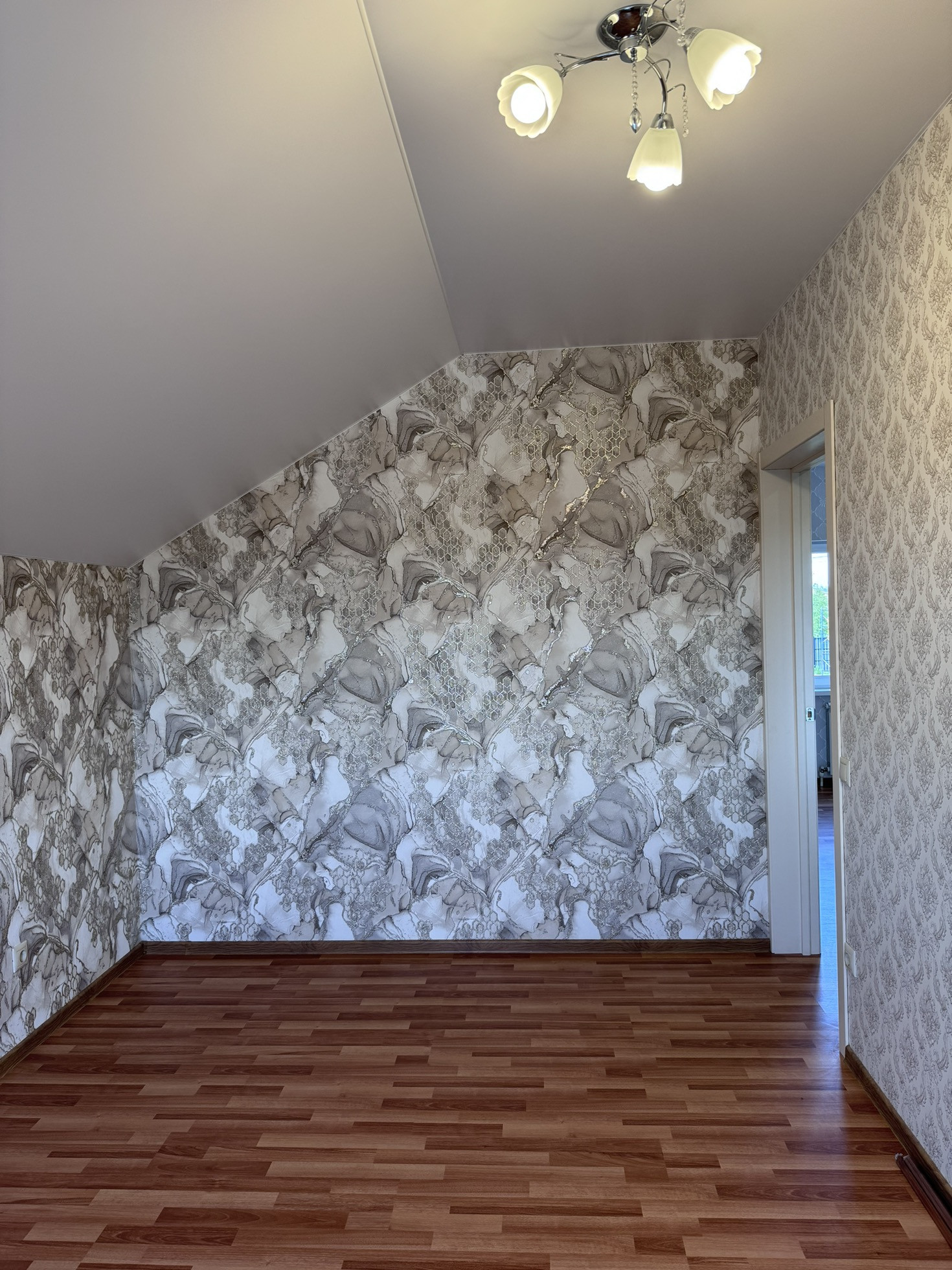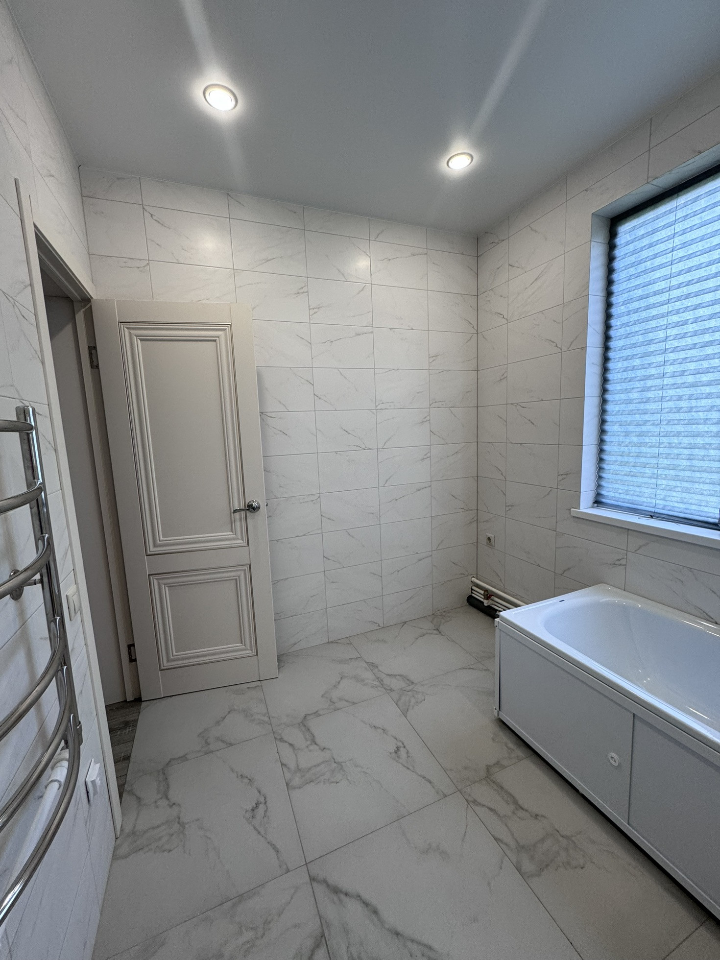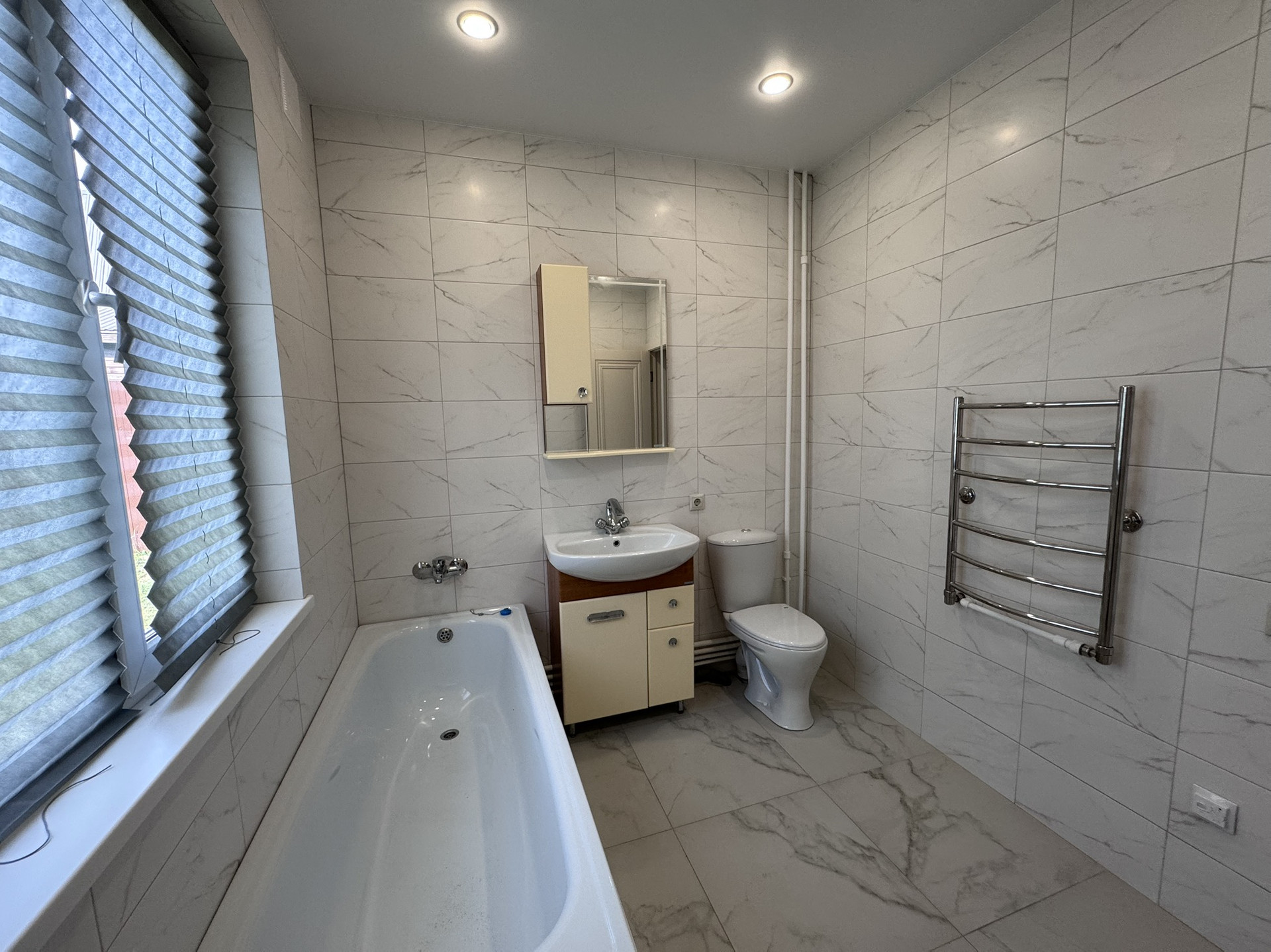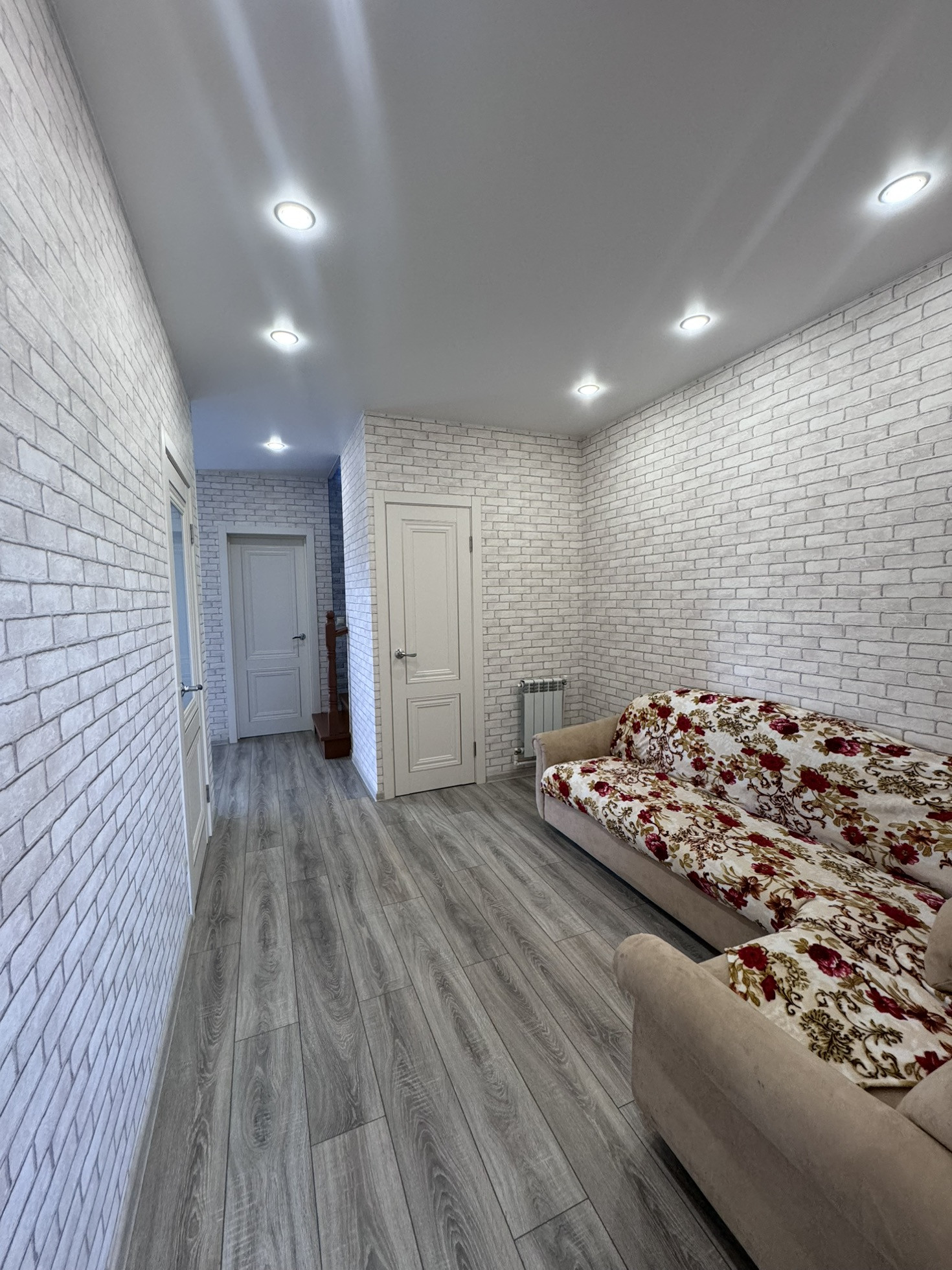 Потолки натяжные во всем доме.