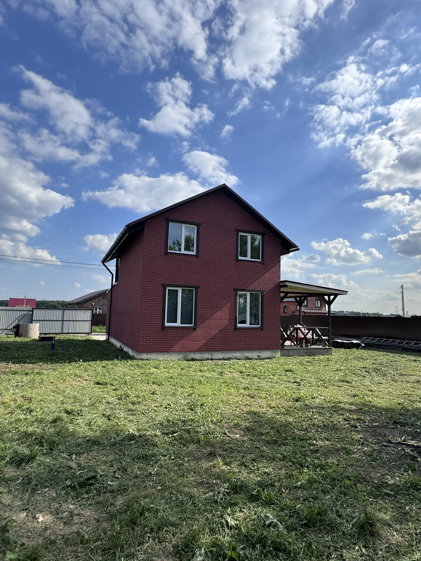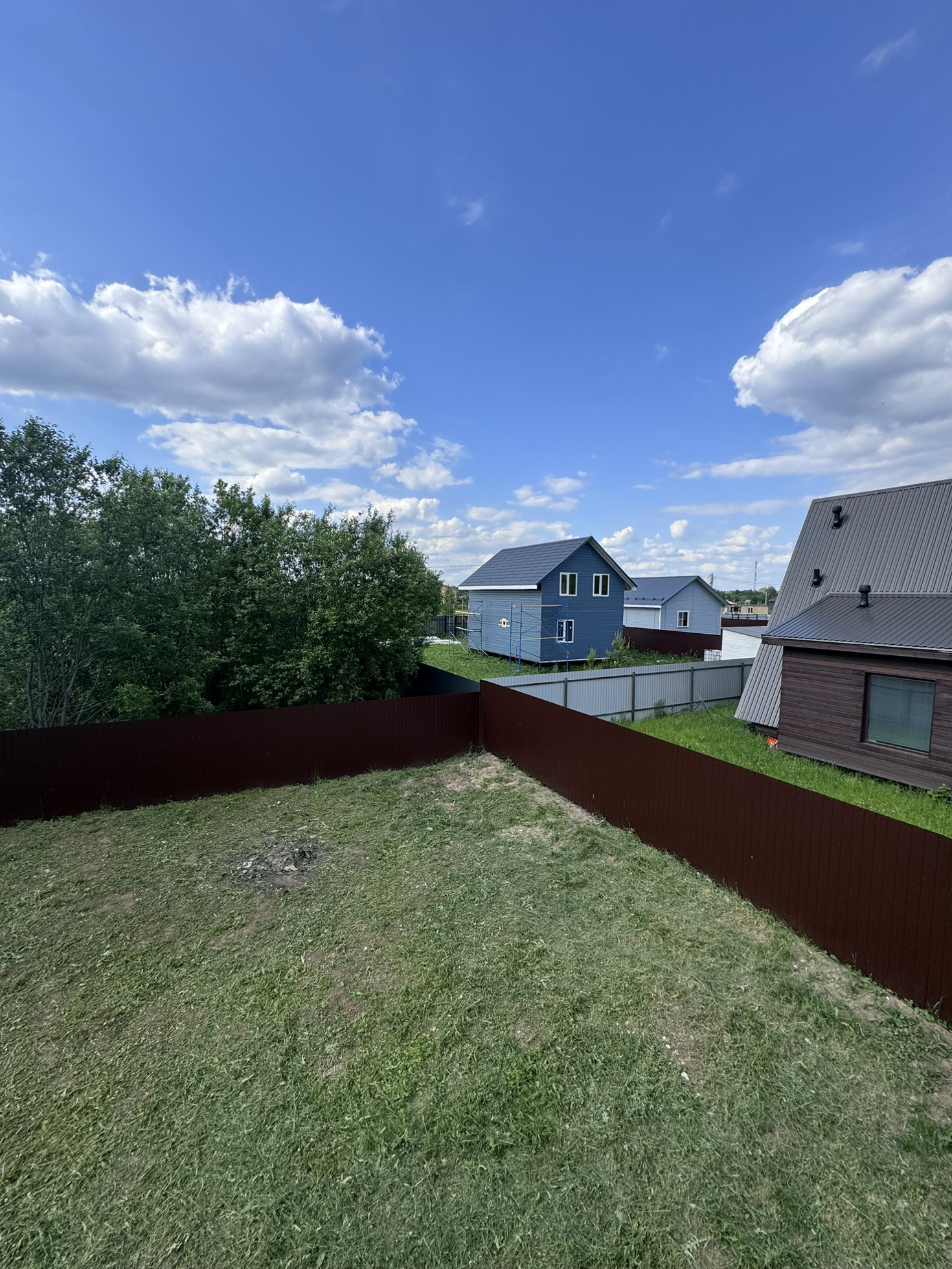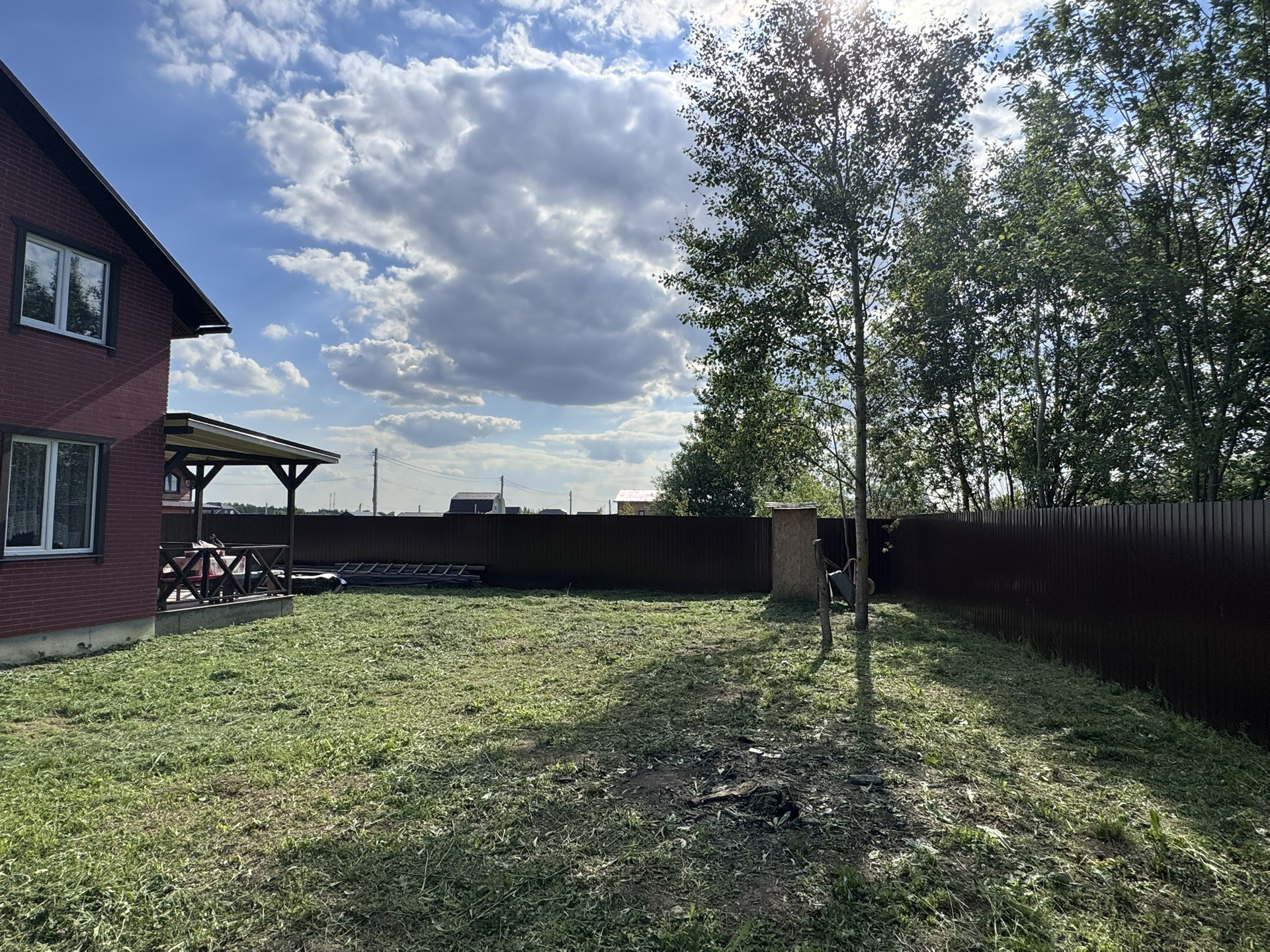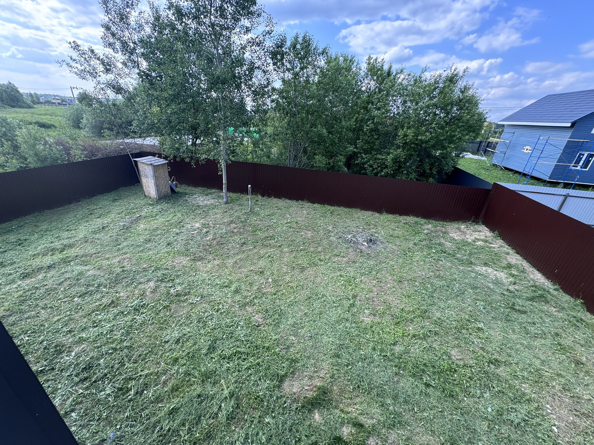 Крыша: профнастил. Участок огорожен забором из металлопрофиля, откатные ворота.