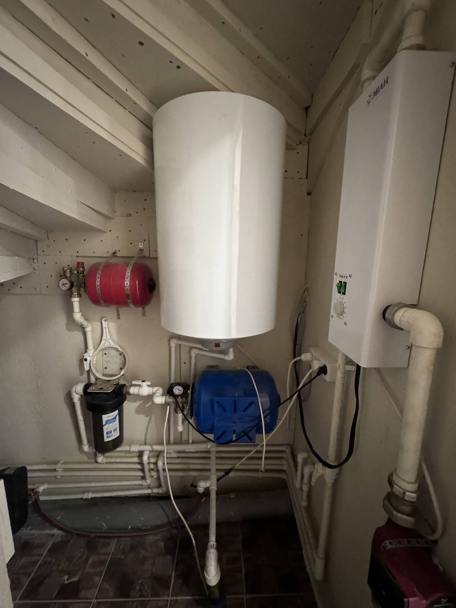 Котельная: электрический котел, бойлер на 80 л, система очистки. Канализация - септик: Аквалос 5 кубов. Вода: скважина - 25 м.