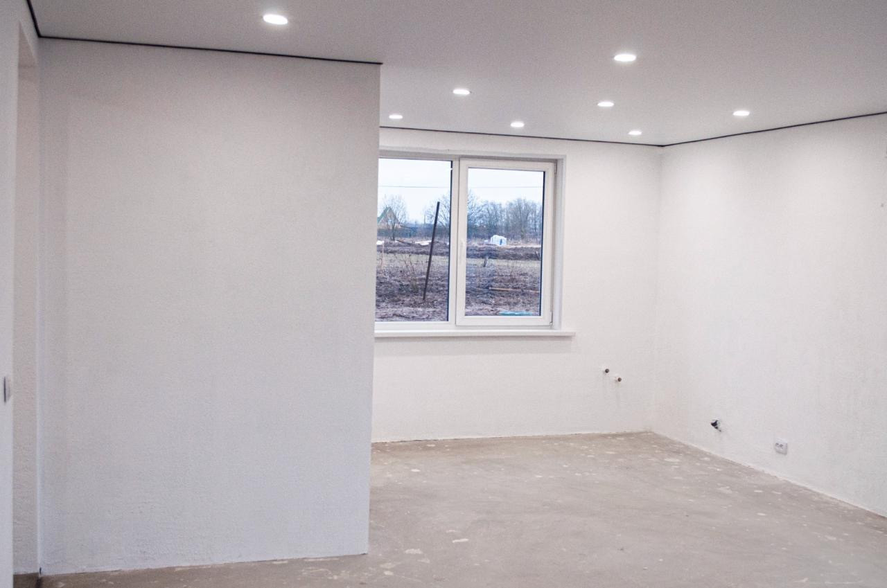 На данный момент завершена полная отделка всех помещений, кроме полов.