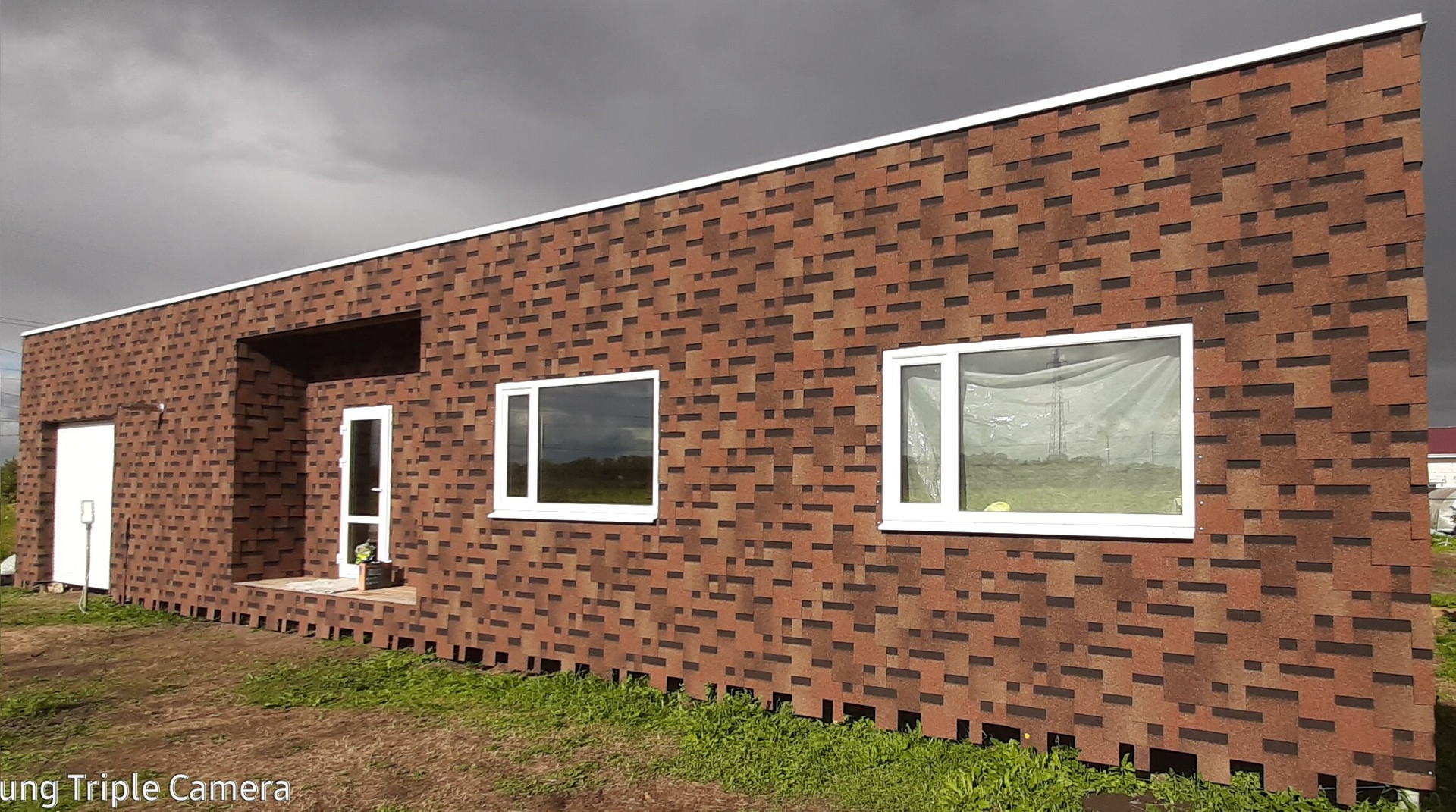 Дом в процессе завершения наружной отделки.