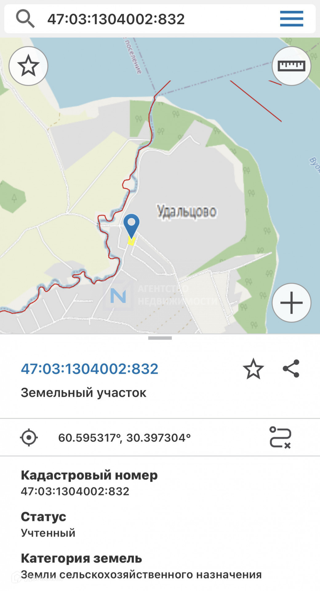 Участок можно посмотреть используя кадастровую карту и координаты: 60.595317, 30.397304