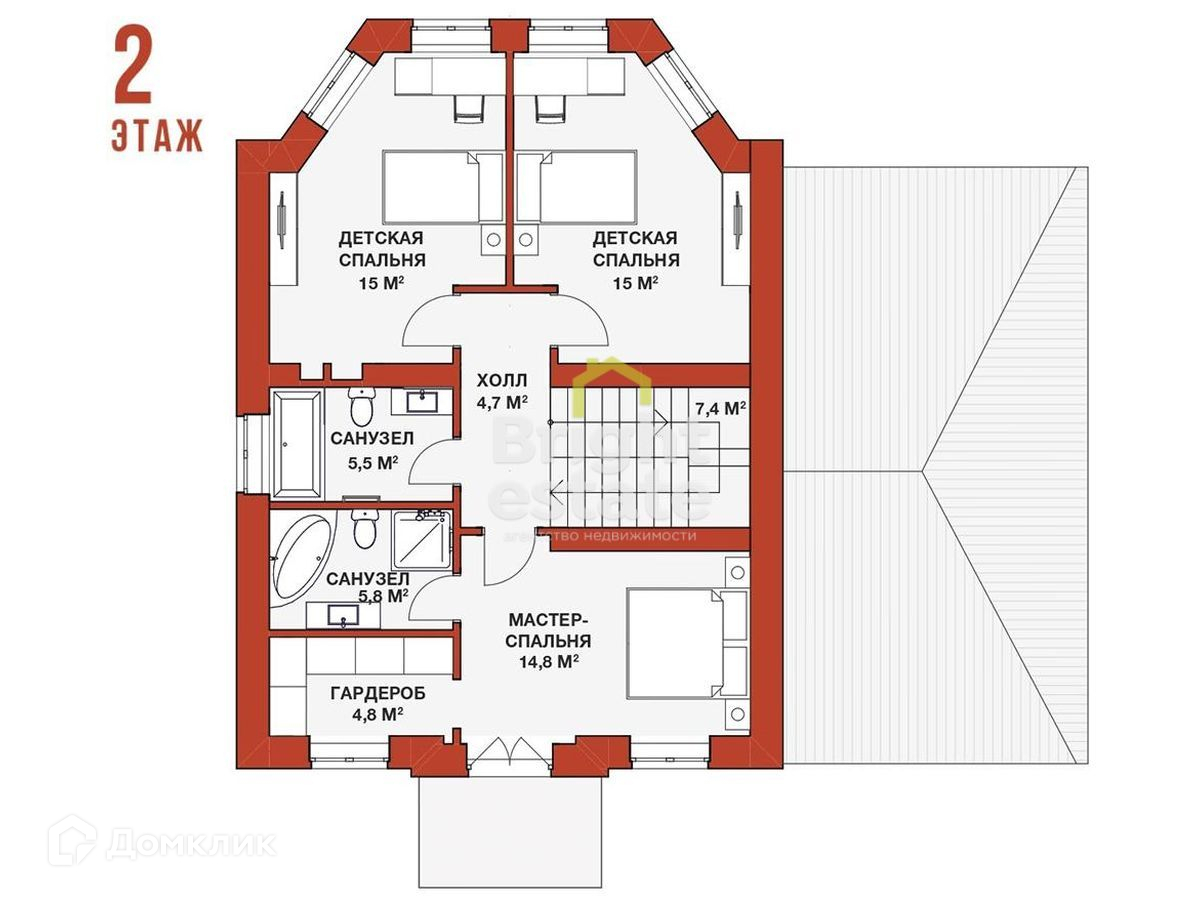 2 этаж: холл, мастер-спальня с с/у и гардеробной, 2 спальни, с/у.