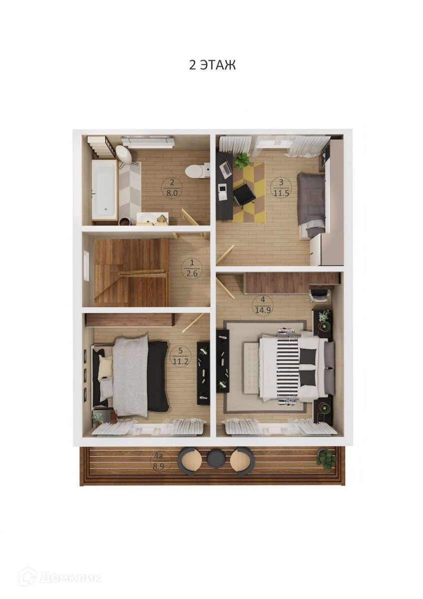 Второй этаж: коридор, 3 спальные комнаты,