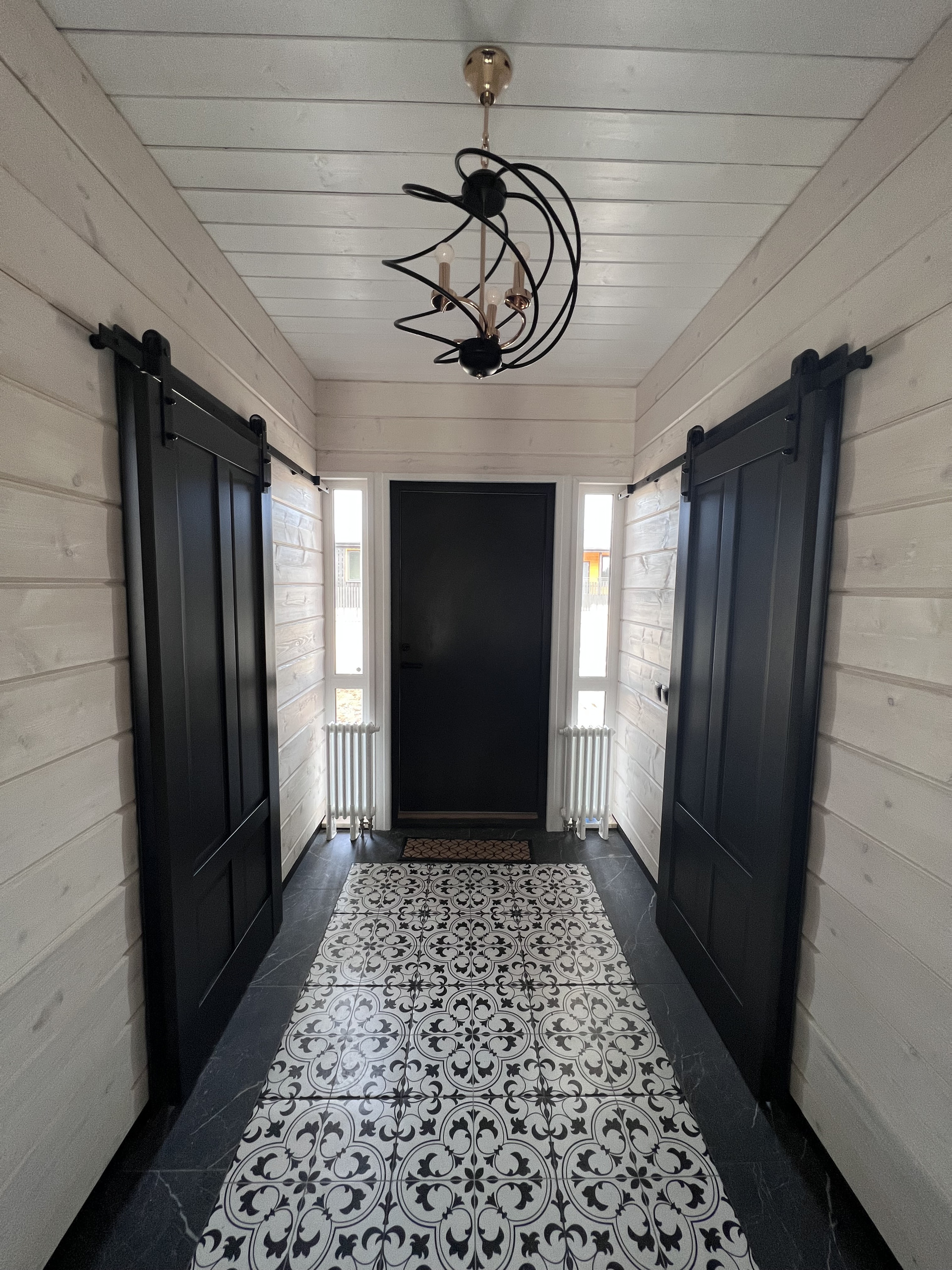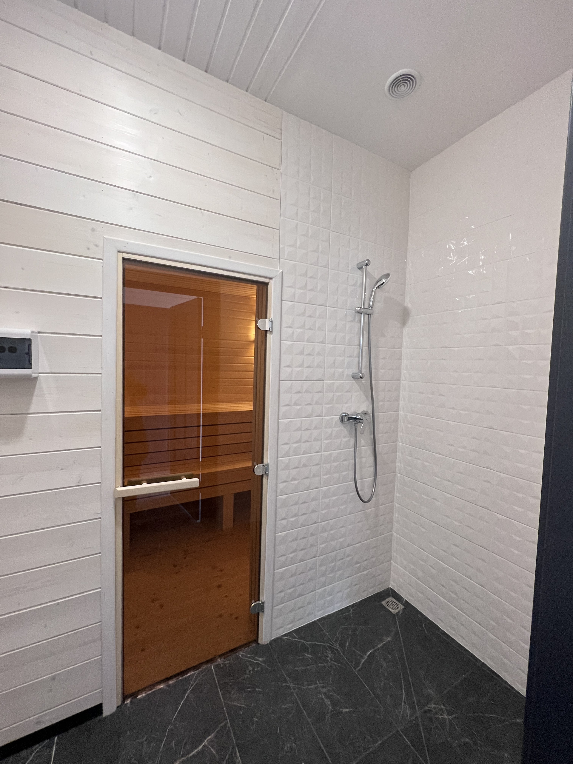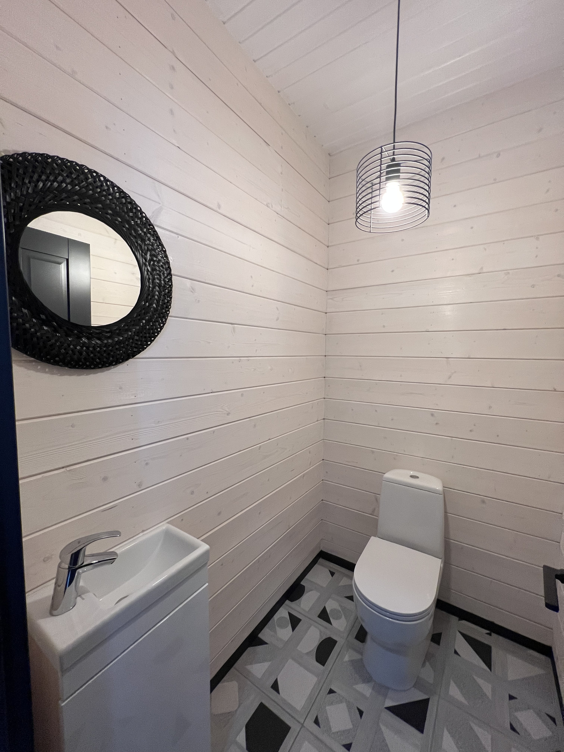 При входе располагается прихожая, гардеробная, вход в гостиную и кухню Общественная зона объединенная кухня-гостиная 54 м2 с потолками высотой от 2,7 5,0м, с окнами в пол, оснащена кухонным гарнитуром с островом, бытовой техникой, дровяной печью-камином, есть выход на просторную террасу. Из гостиной также можно попасть в зону спа, где располагается электрическая сауна, душ и санузел, и в котельную Приватная зона с 3 спальнями, отдельной ванной комнатой и помещением постирочной, отнесена в конец дома. На территории сделано благоустройство: заезд, отмостка, дорожка к дому. Материалы: Фундамент свайно-винтовой, обвязка швеллером. Материал стен деревянный каркас, с утеплением 150мм по стенам и 200мм по полу и потолку, шумоизоляция в перегородках 100мм. Фасад фиброцементный сайдинг CEDRAL и имитация бруса. Кровля клик-фальц GRAND LINE, установлены снегоудержатели, металлическая водосточная система. Окна 3х камерные пластиковые стеклопакеты VEKA SOFTLINE, увеличенная площадь остекления, в гостиной и прихожей окна в пол. Подоконники из натурального камня. Внутренняя отделка стен имитация бруса (190мм и 145мм) с покраской, плитка в мокрых зонах, осина в сауне. Пол ламинат EGGER CLASSIC 32 класс в гостиной и спальнях, плитка в прихожей, кухне, котельной, санузлах. Двери межкомнатные PROFIL DOORS, входная утепленная финская KASKI Сантехника смесители GROHE, ванна KALDEWEI, сантехприборы SANITA, тумбы с раковинами и смесителями IKEA. Инженерия: Газоснабжение подключено, установлен двухконтурный газовый котел BAXI NOVA 31F Электрика скрытая разводка по дому в металлической гофре, УЗО, заземление EZETEK EZ-6, автоматы на все группы розеток, включатели и розетки (50 точек) SCHNEIDER ELECTRIC, во всех помещениях и на террасах дома установлены осветительные приборы, дополнительно предусмотрены уличные розетки для подключения уличной техники. Интернет разводка оптоволокна с розетками по дому Водоснабжение скважина 59м с адаптером, погружной электронасос BELAMOS TF3, бойлер ROYAL THERMO AQUATEC INOX RTWX-F 100, разводка по дому скрытая, трубы из шитого полиэтилена Канализация септик ЕВРОЛОС БИО 6+ Отопление радиаторы STELRAD NOVELLO, ZEHNDER CHARLESTON COMPLETTO (3 контура), водяной теплый пол в гостиной, ванных, прихожей (7 контуров) Вентиляция принудительная в санузлах.