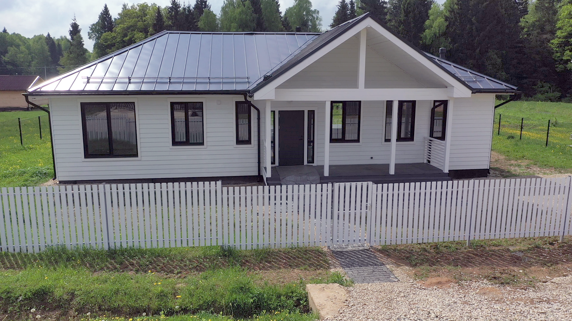 Продается одноэтажный дом, построенный по авторскому проекту FARM HOUSE с открытой планировкой в коттеджном поселке «Усадьба Грачи»: