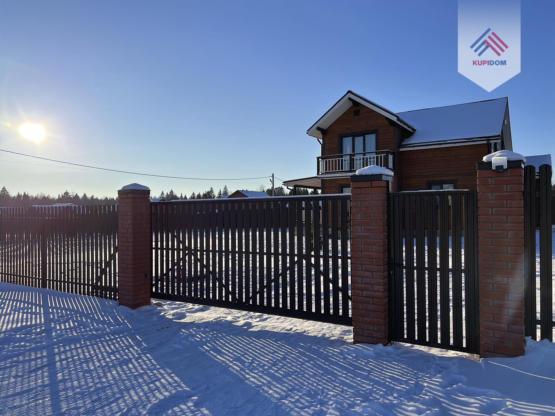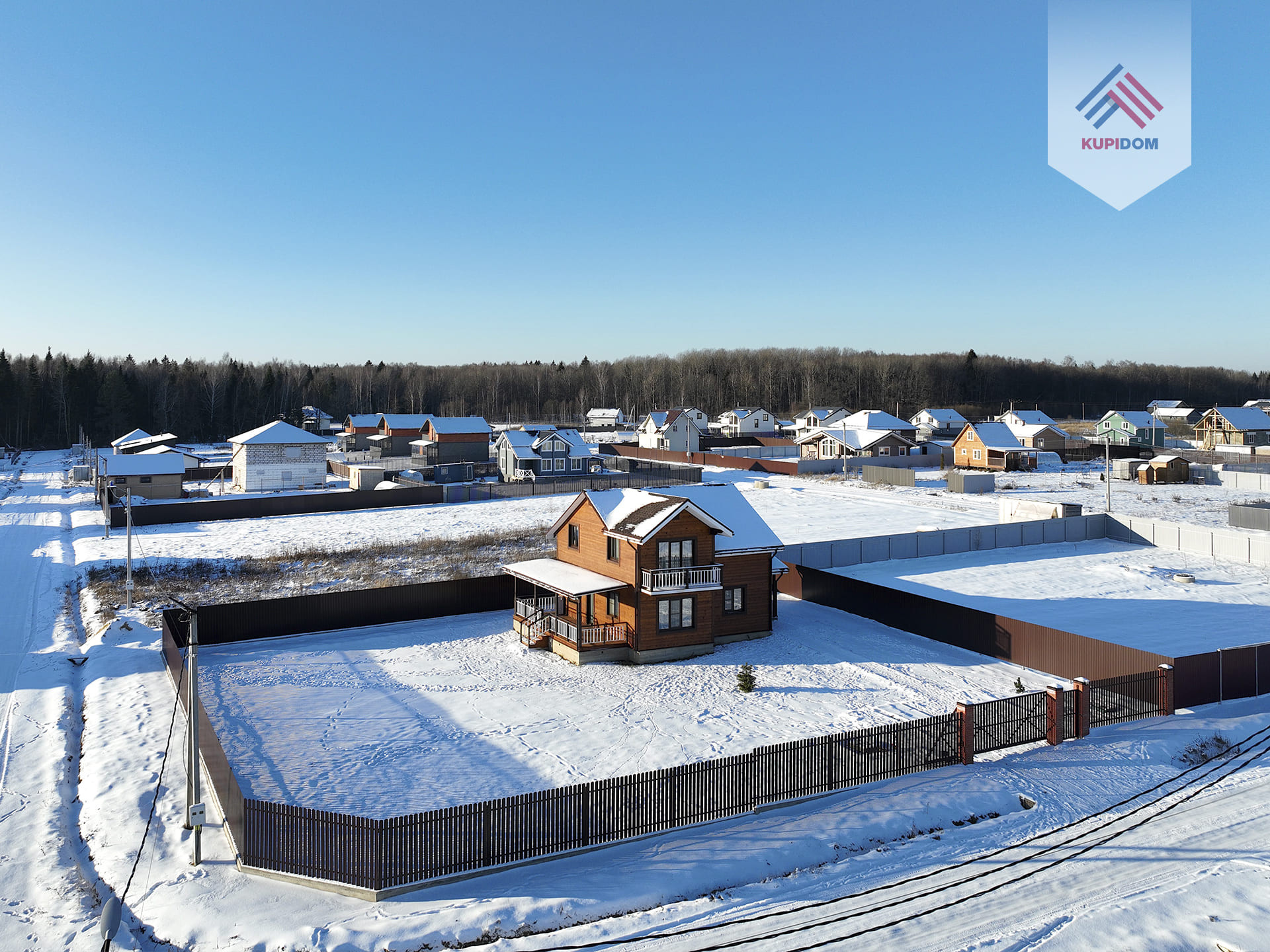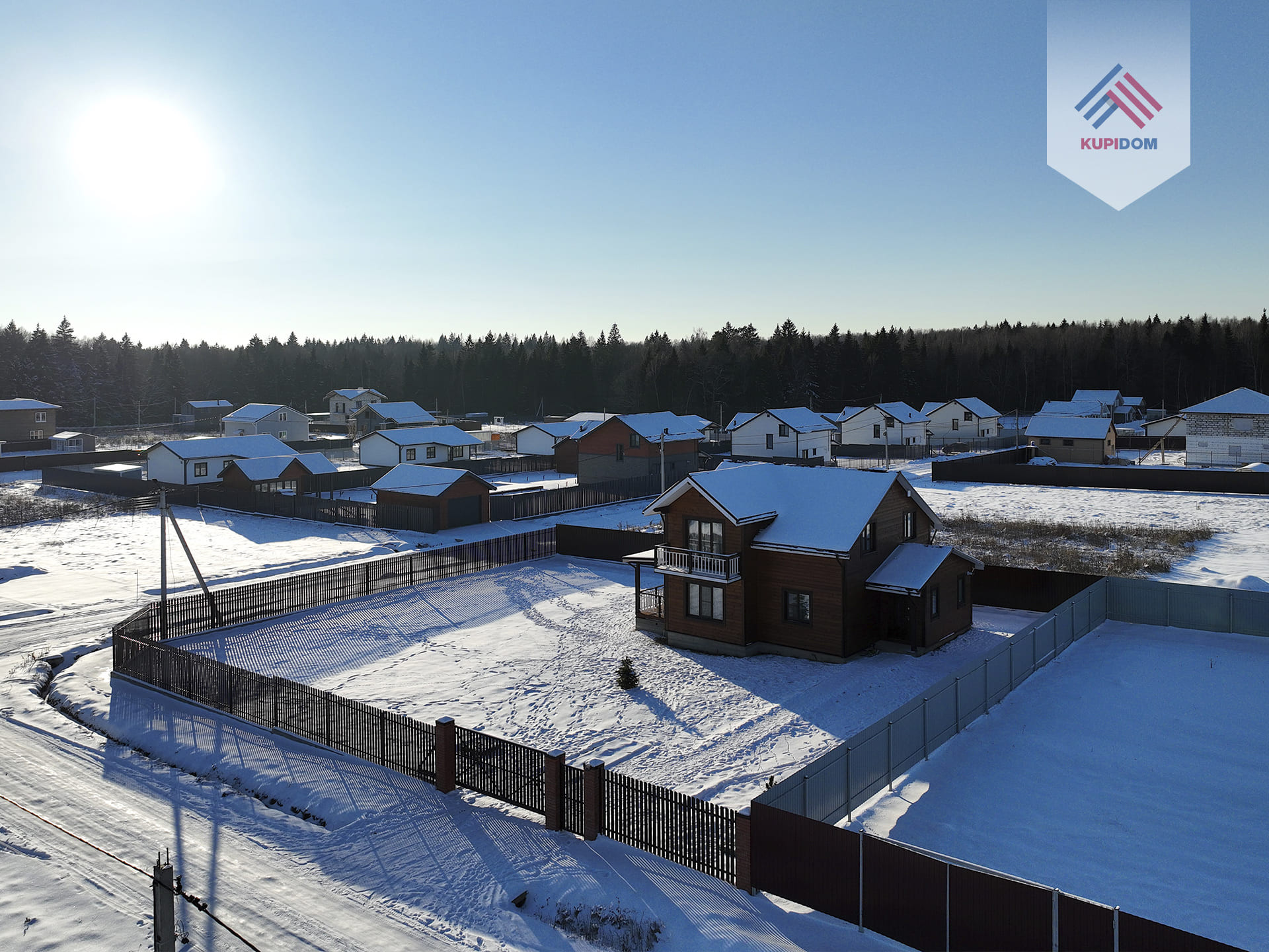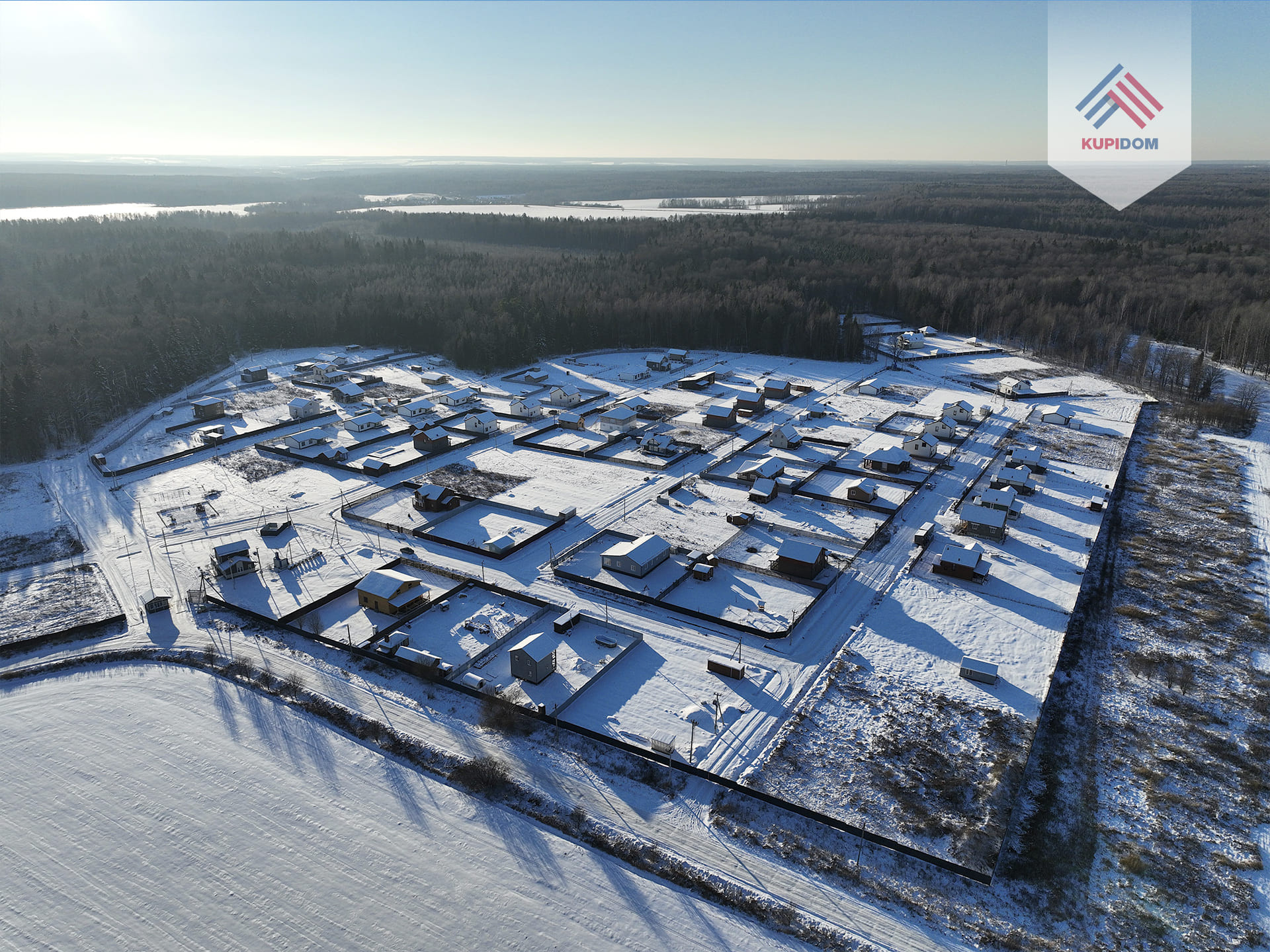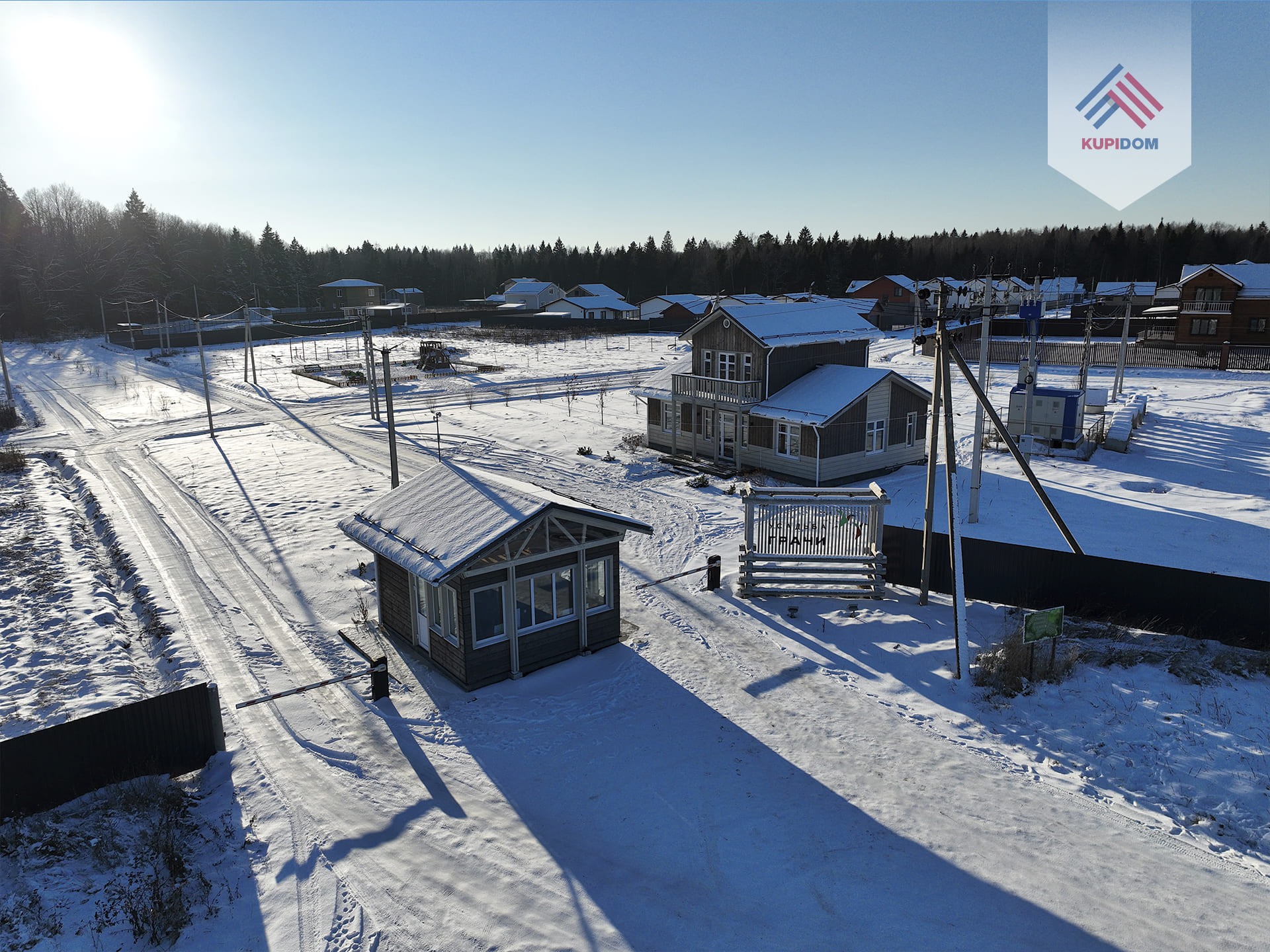 Удобный круглогодичный подъезд, асфальтированная подъездная дорога от шоссе до поселка.