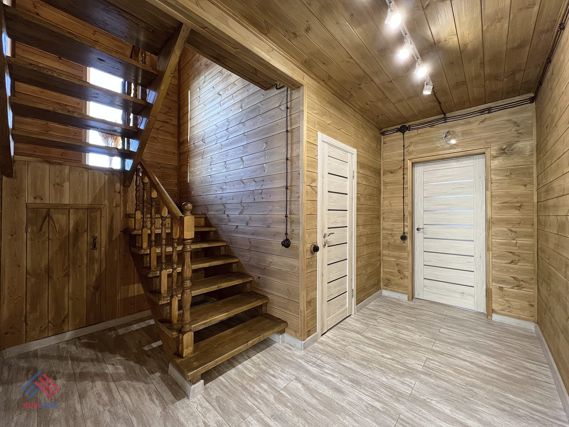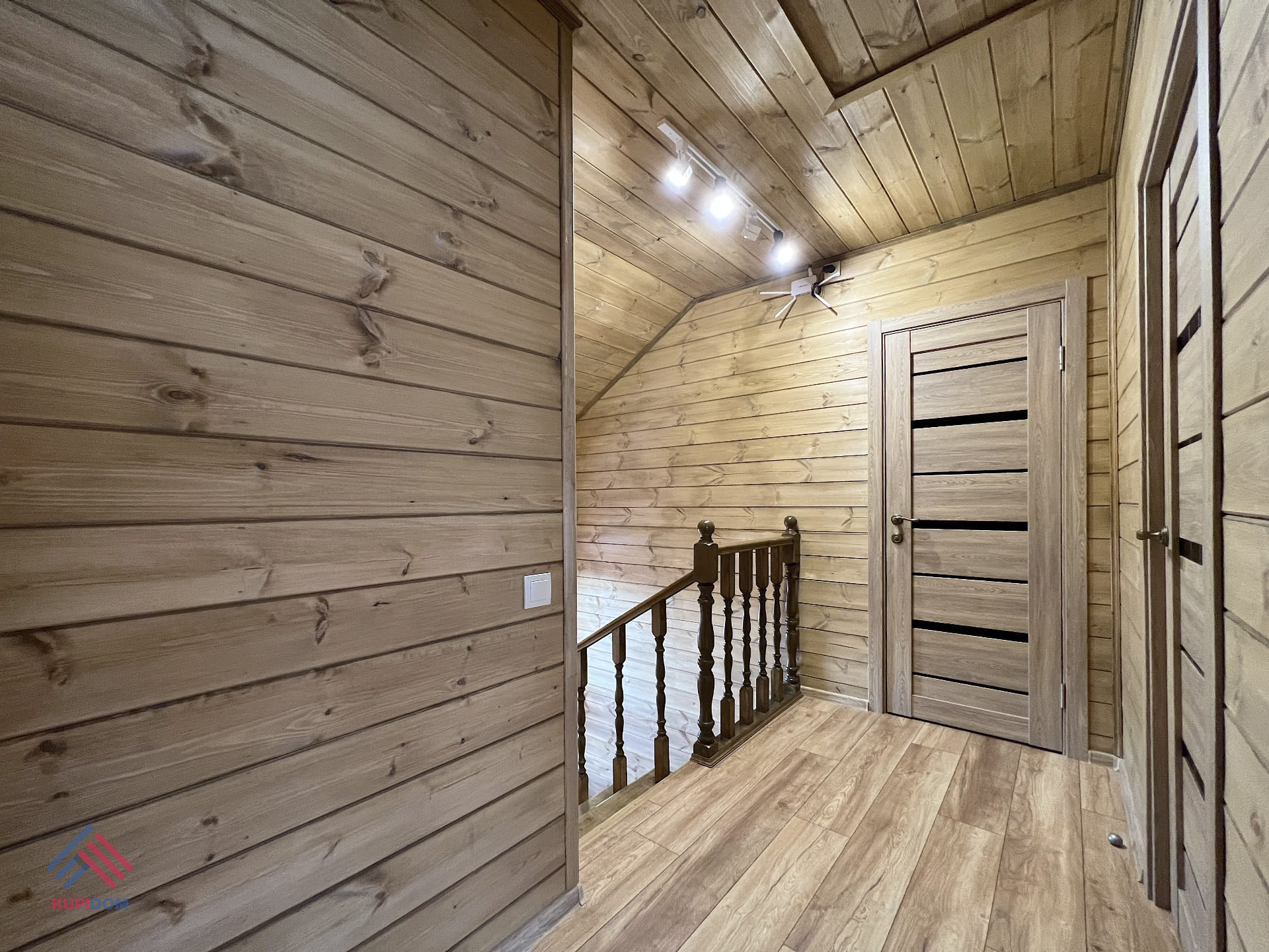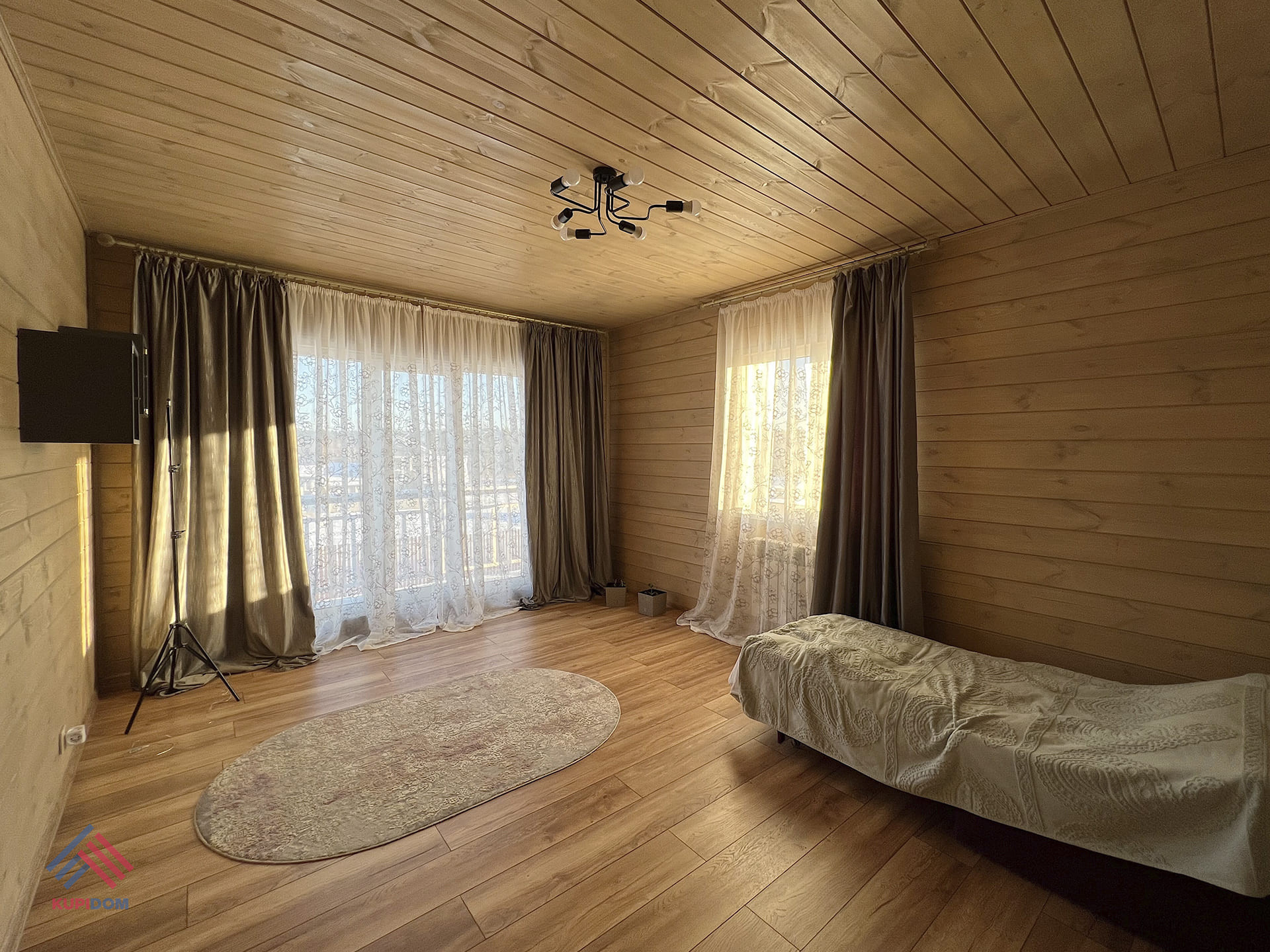 Общая площадь - 160 кв.м.; Материал дома брус сечением - 150x100 с утеплением; Внутренняя и внешняя отделка дома - обработанная и покрашенная имитация бруса; Утепление дома - стены 100 мм; пол, потолки, крыша - 150 мм.; Окна - двухкамерные стеклопакеты Rehau; Крыша - мягкая черепица; Фундамент - монолитная плита с тёплым водяным полом; Полы - плитка\ламинат; На крыше и террасах установлена водосточная система.