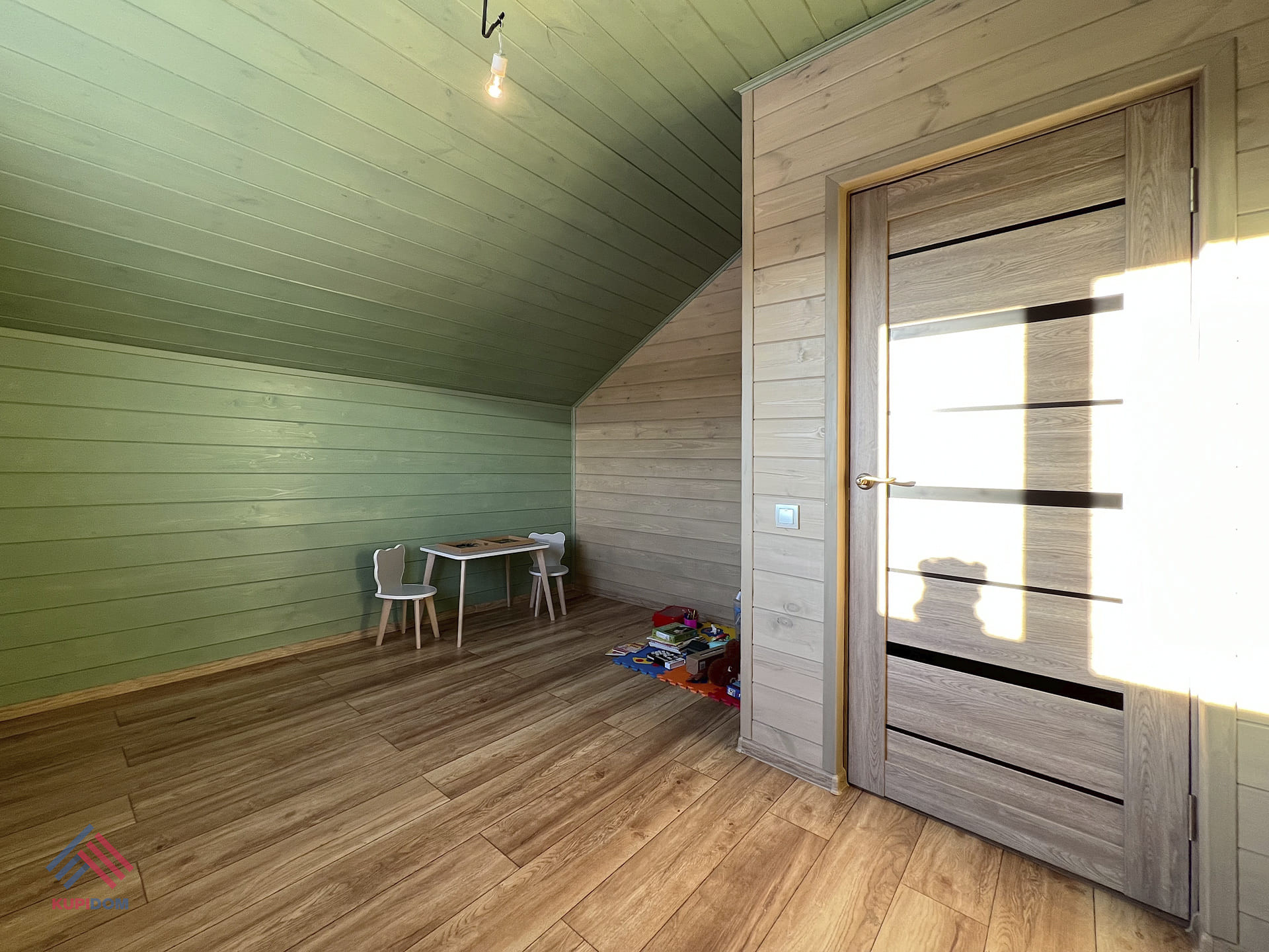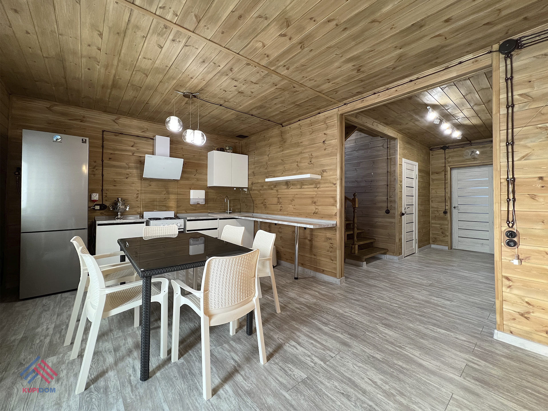 1 этаж - крыльцо, прихожая, котельная, кухня-гостиная с выходом на террасу, комната, санузел;