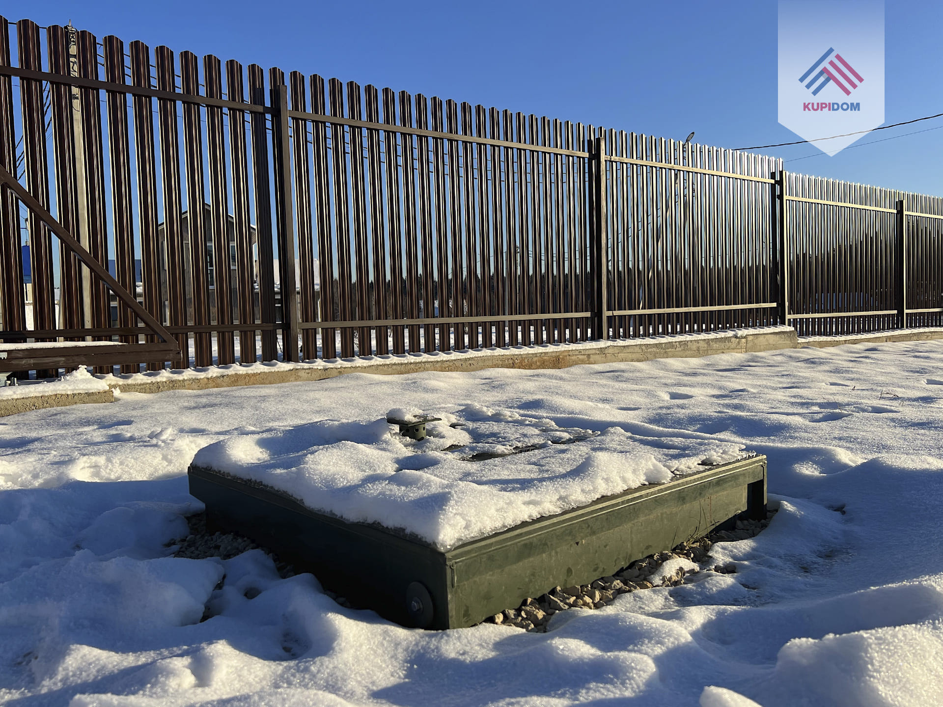 10 соток. Ровный, правильной формы. Огорожен с лицевой части штакетным забором на ленточном фундаменте, с фасадной части профлистом. Оборудованы автоматические откатные ворота и площадка под автомобиль. Категория земель - земли населенных пунктов, целевое использование - для индивидуального жилищного строительства (ИЖС).