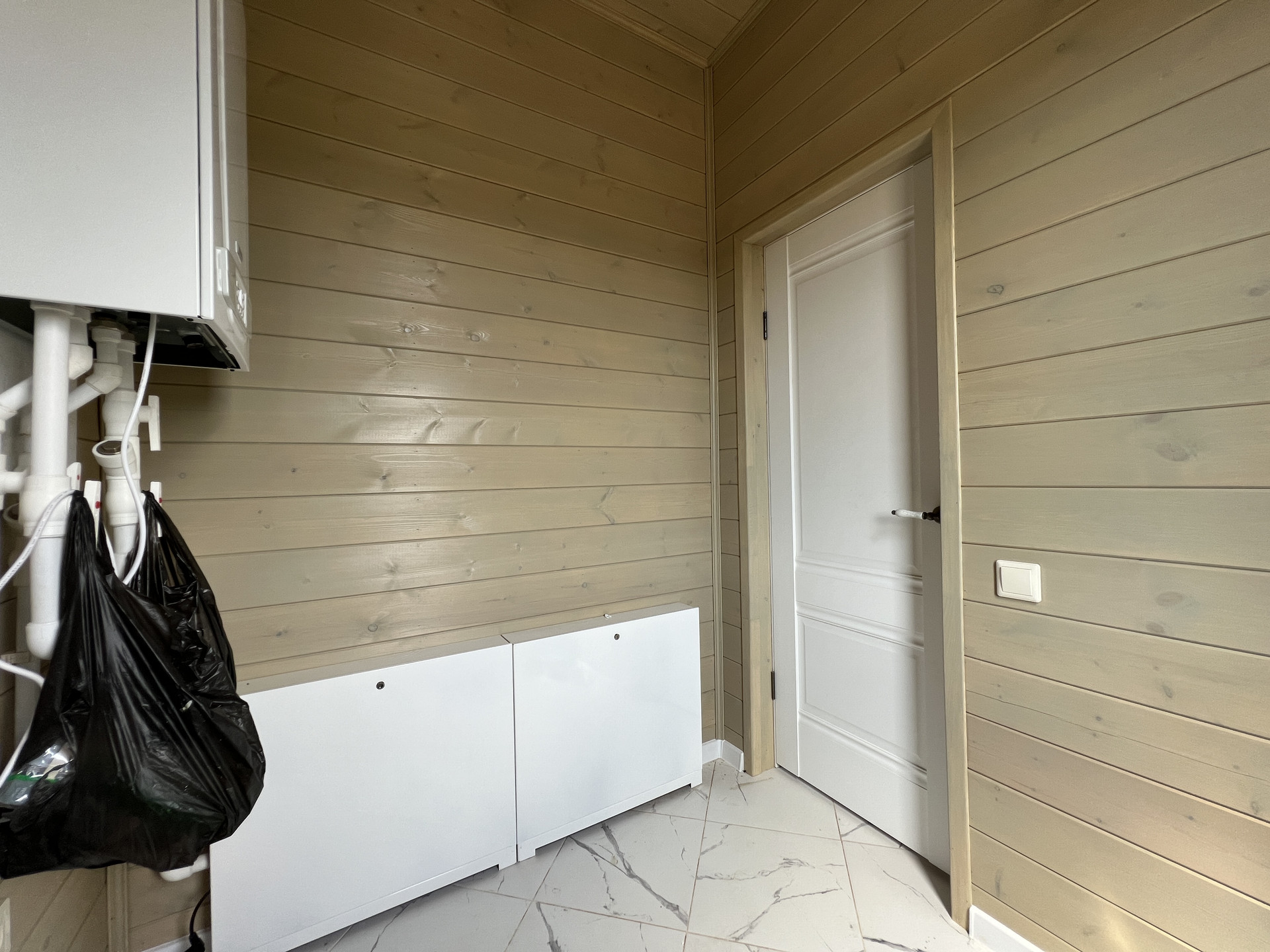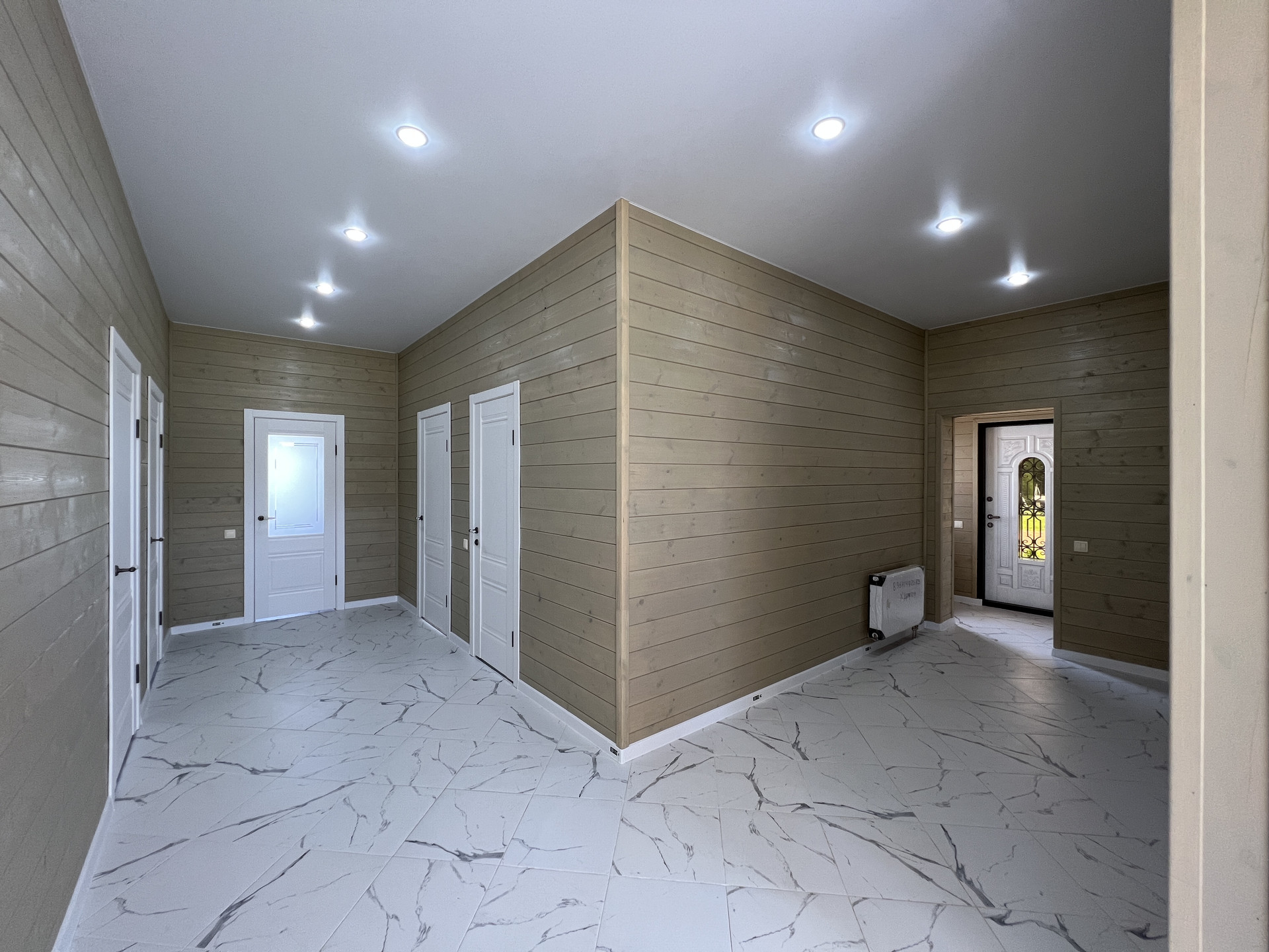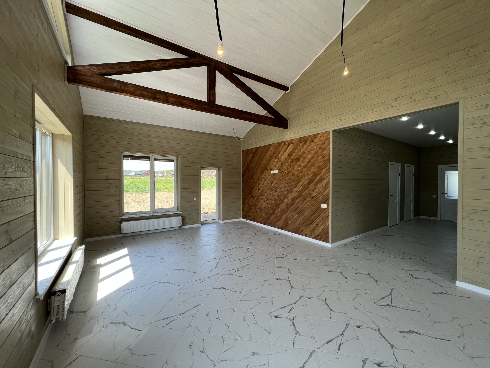 Прихожая, бойлерная, коридор с нишей для гардеробной системы, кухня-гостиная с выходом на террасу, 3 спальные комнаты, санузел с раковиной и подвесным туалетом (инсталяция), гардеробная.