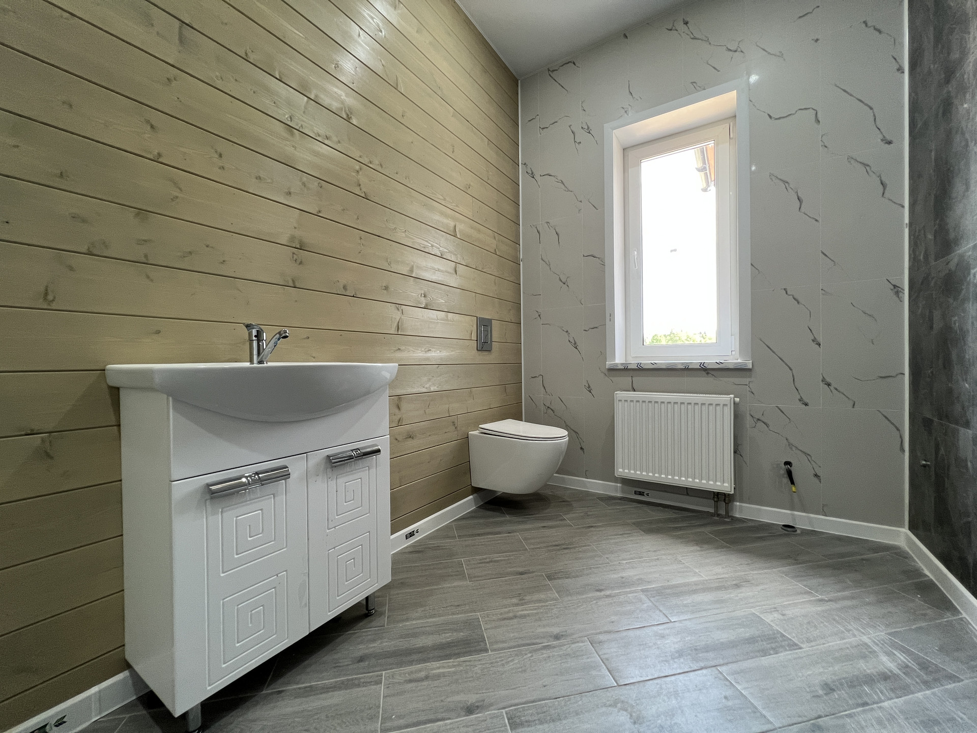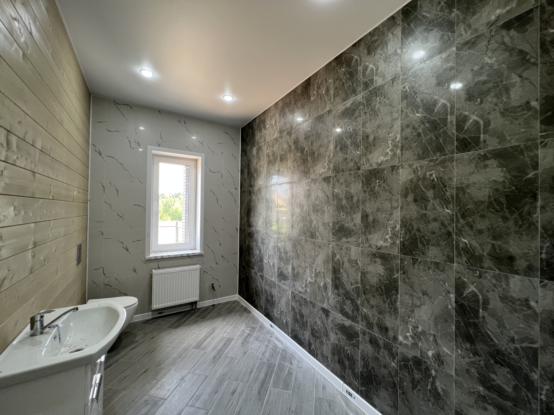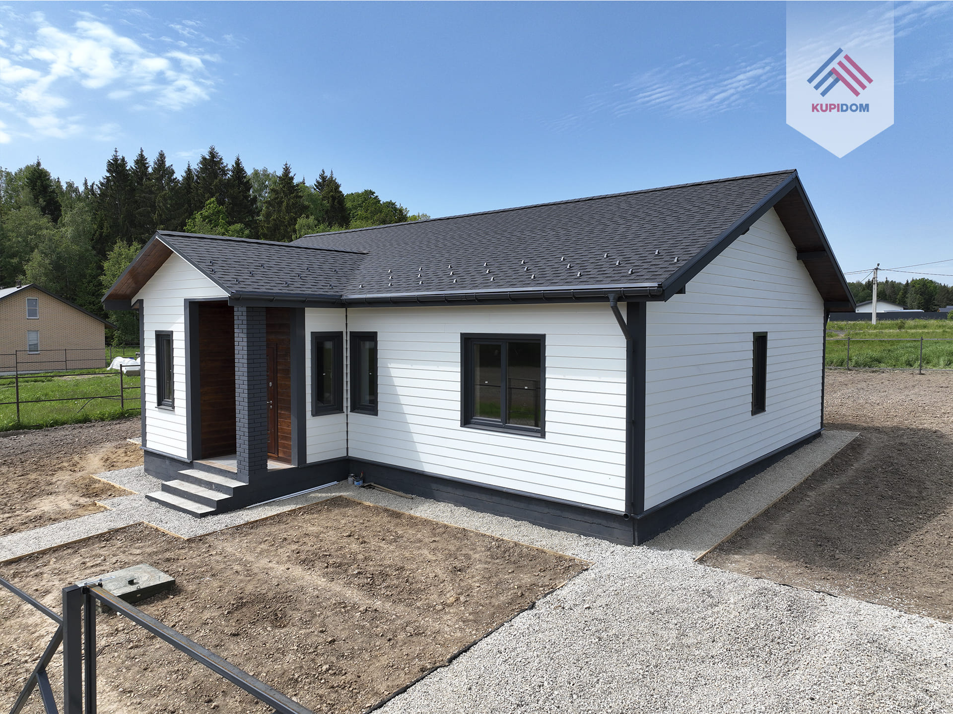 Прихожая, бойлерная, коридор с нишей для гардеробной системы, кухня-гостиная с выходом на террасу, 3 спальные комнаты, санузел с раковиной и подвесным туалетом (инсталяция), гардеробная.