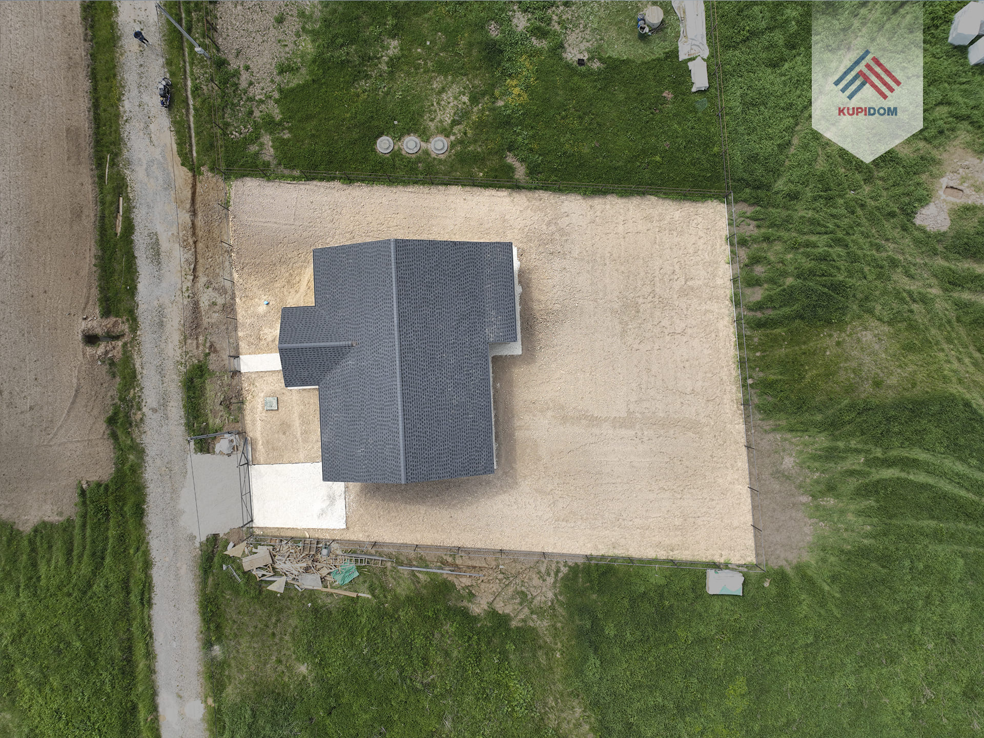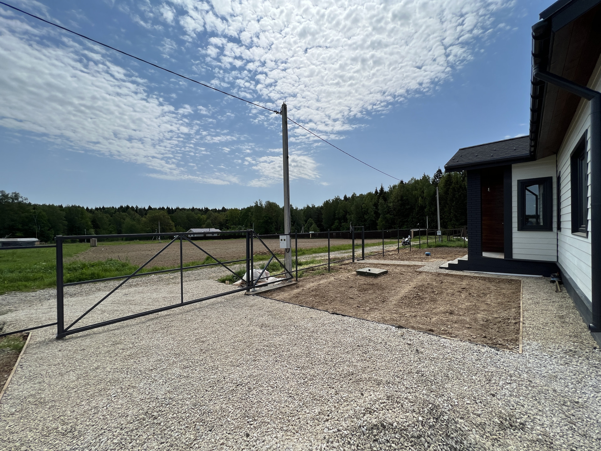 Категория - земли населенных пунктов (ИЖС); 9 соток, выровнен, по периметру установлен металлический каркас для забора, с лицевой стороны будет установлен металлический штакетник. Оборудовано место для машины, установлены откатные ворота; Отмостка, дорожки и парковка отсыпаны щебнем.