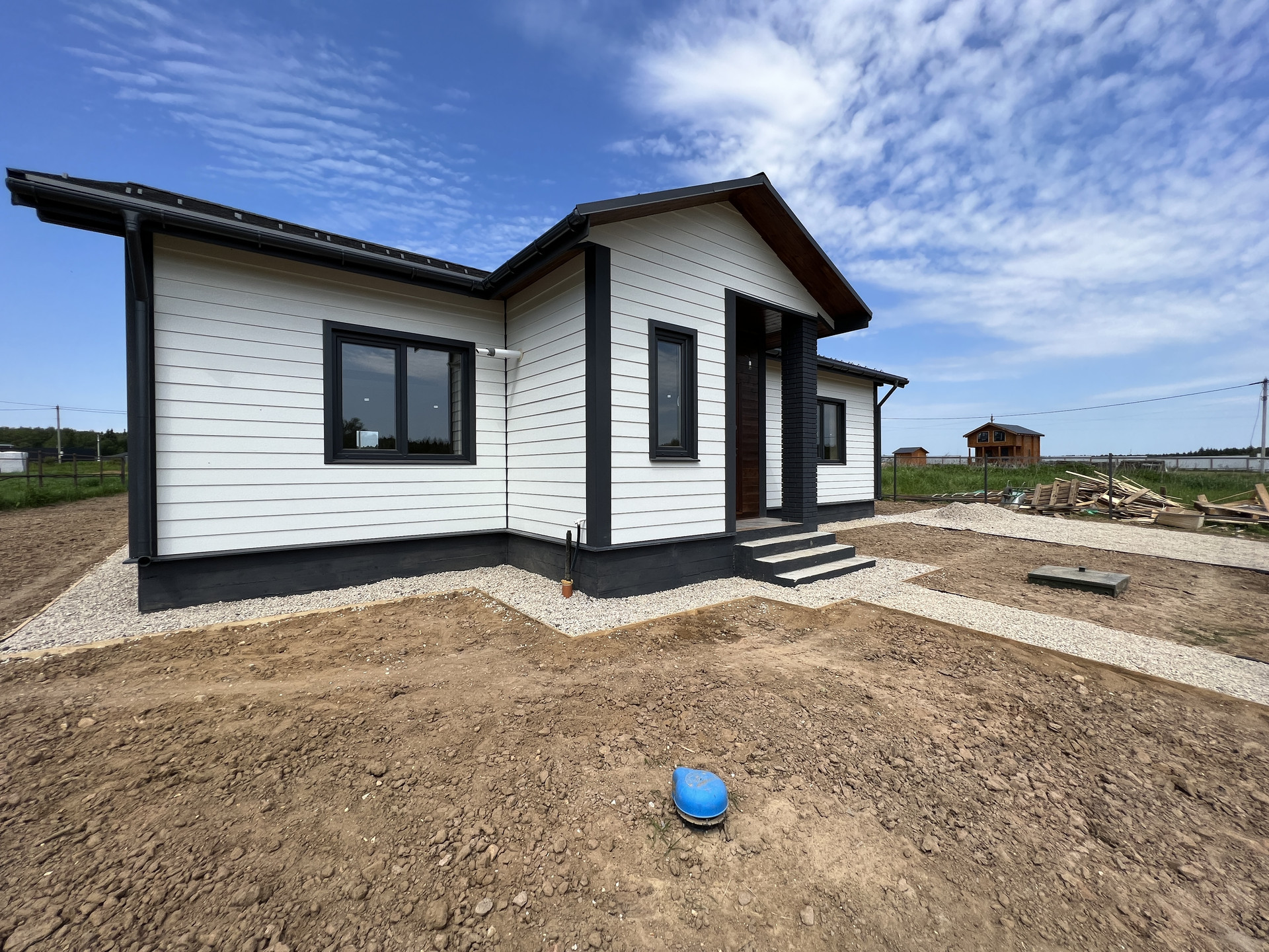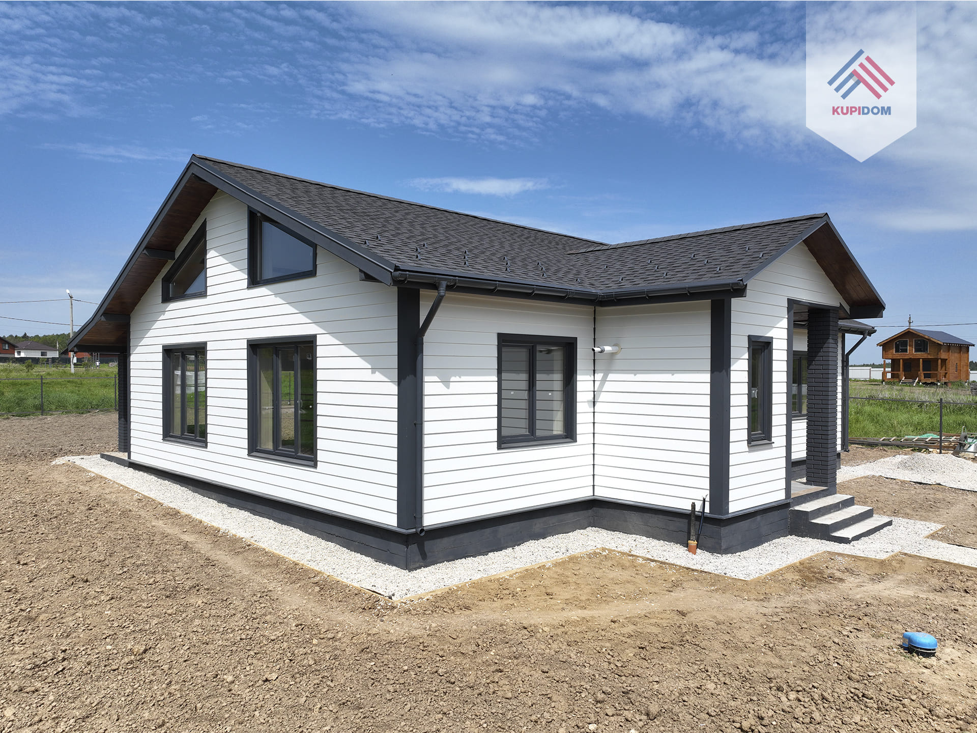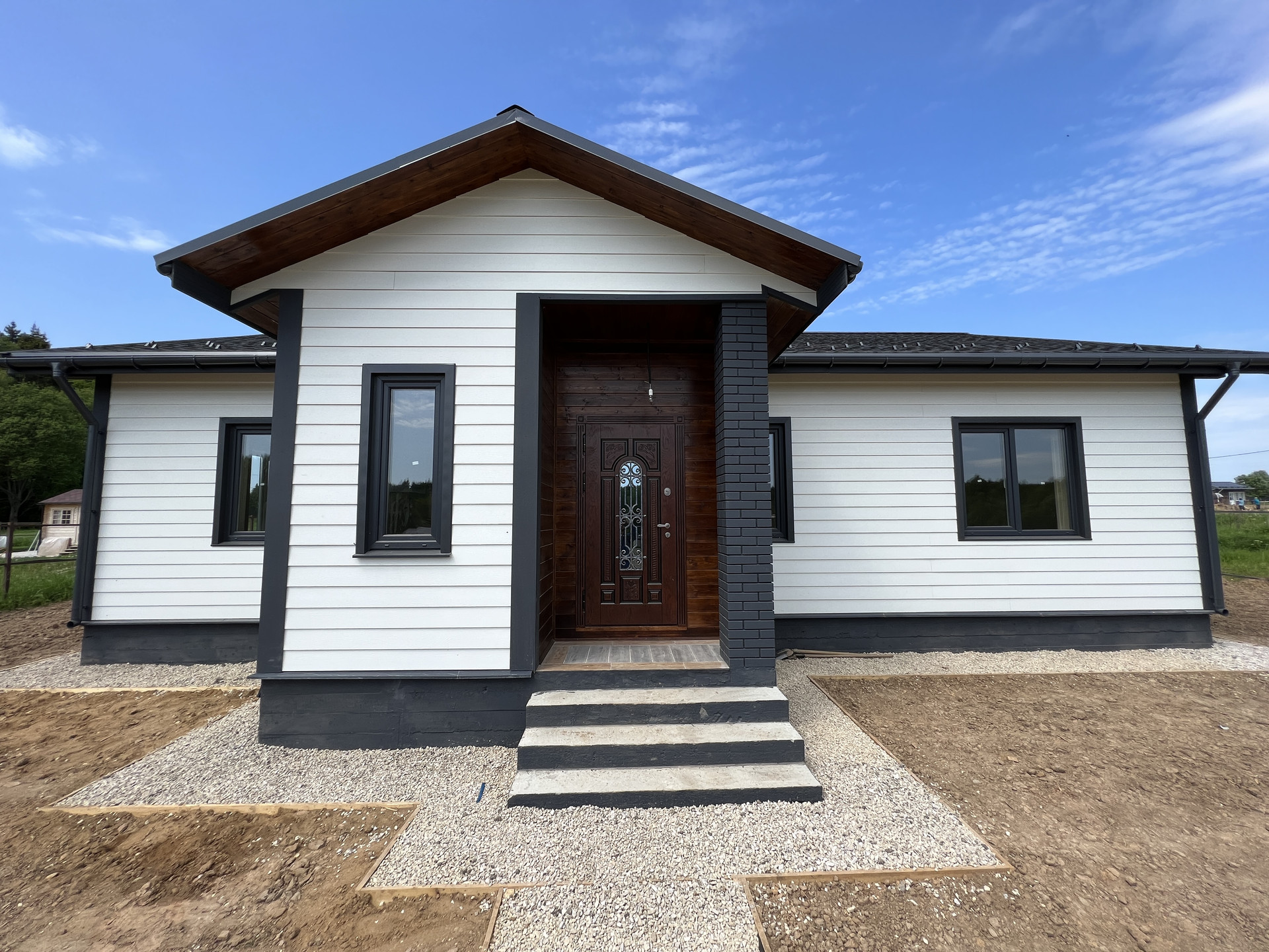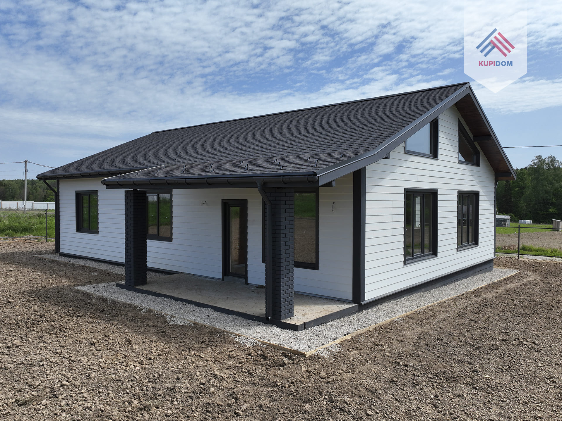 Фундамент - монолитная плита; Стены - газоблок BONOLIT 30 D500; Внешняя отделка дома - фиброцементный сайдинг DЕСОVЕR / Имитация бруса; Столбы террасы и входной группы отделаны кирпичом; Внутренняя отделка - стены - имитация бруса / плитка; полы - керамогранит / ламинат; потолок - натяжной / имитация бруса; Утепление дома - внешняя стена 50мм, межкомнатные перегородки 100 мм, крыша 200 мм; Окна - двухкамерные стеклопакеты RЕНАU; Крыша - мягкая кровля со снегозадержателями; Крыша и фасад - вентилируемые; Установлена водосточная система.