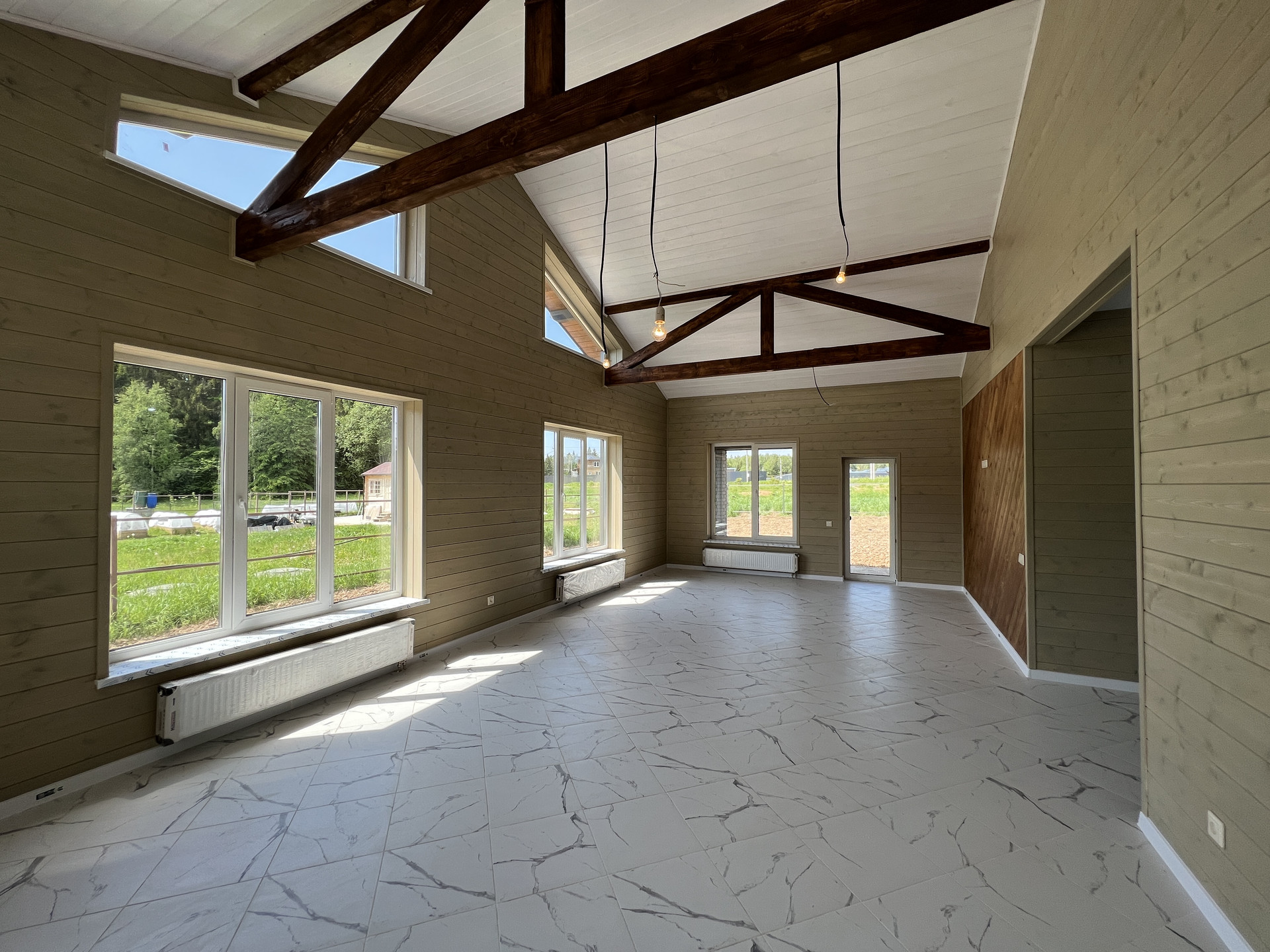 В доме сочетаются качество подобранных материалов и строительных работ, удобство планировочных решений и комфорт пребывания в доме круглогодично. Благодаря большим окнам комнаты наполнены светом и теплом.