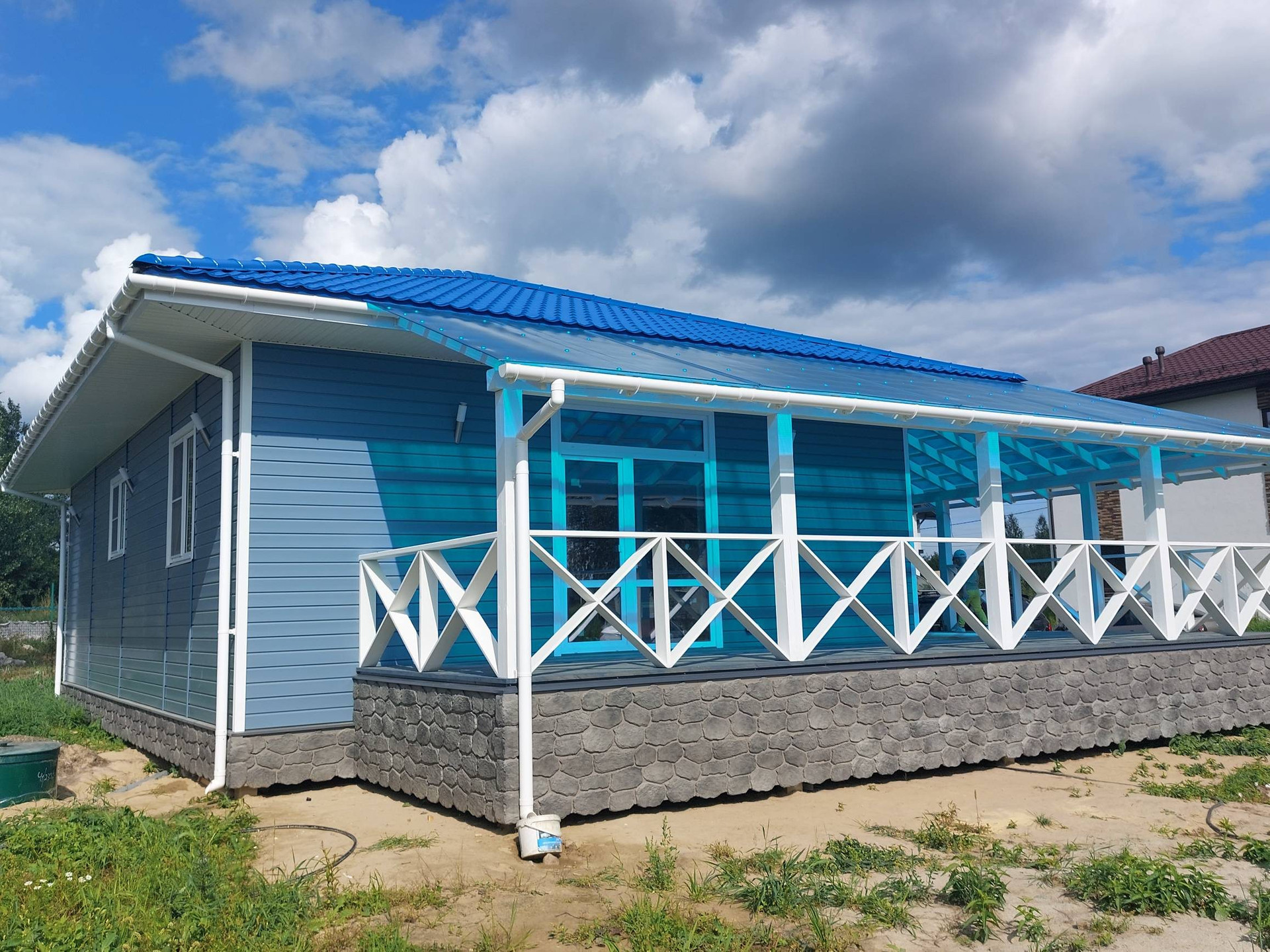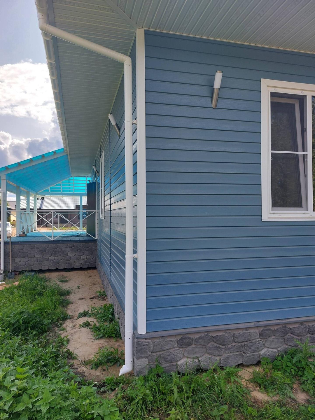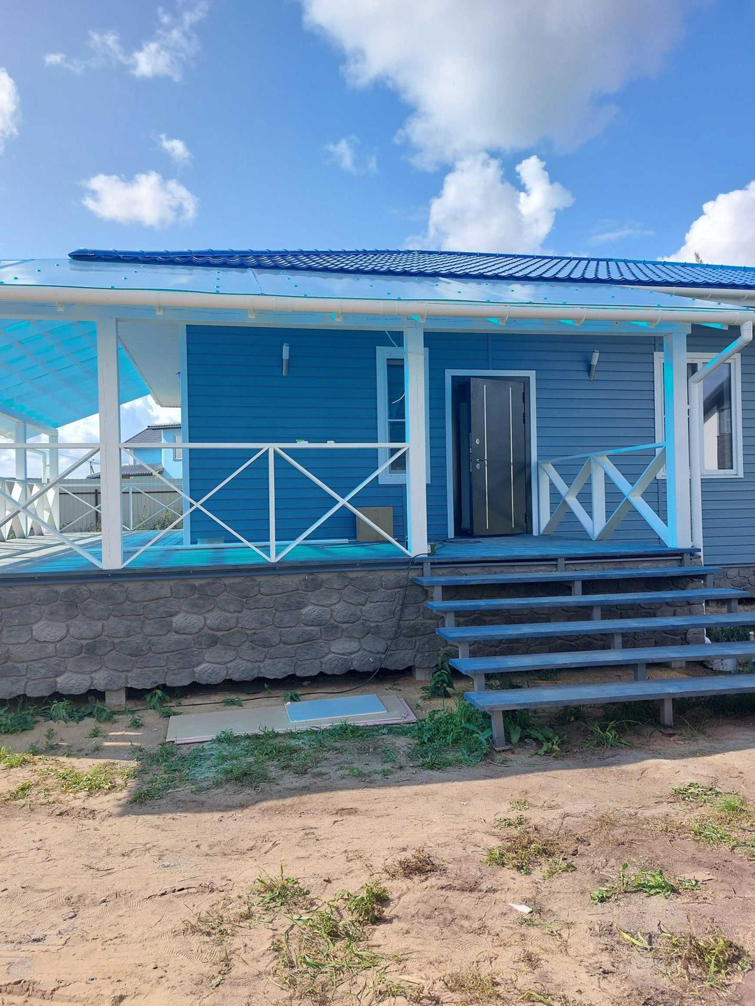 В доме три комнаты 13,13 и 11 метров, два санузла, кухня-гостиная с выходом на веранду 30 кв. метров, техническое помещение, прихожая, и "изюминка" дома большая 40 метров веранда с двух сторон. Потолки в доме высотой 3 метра.