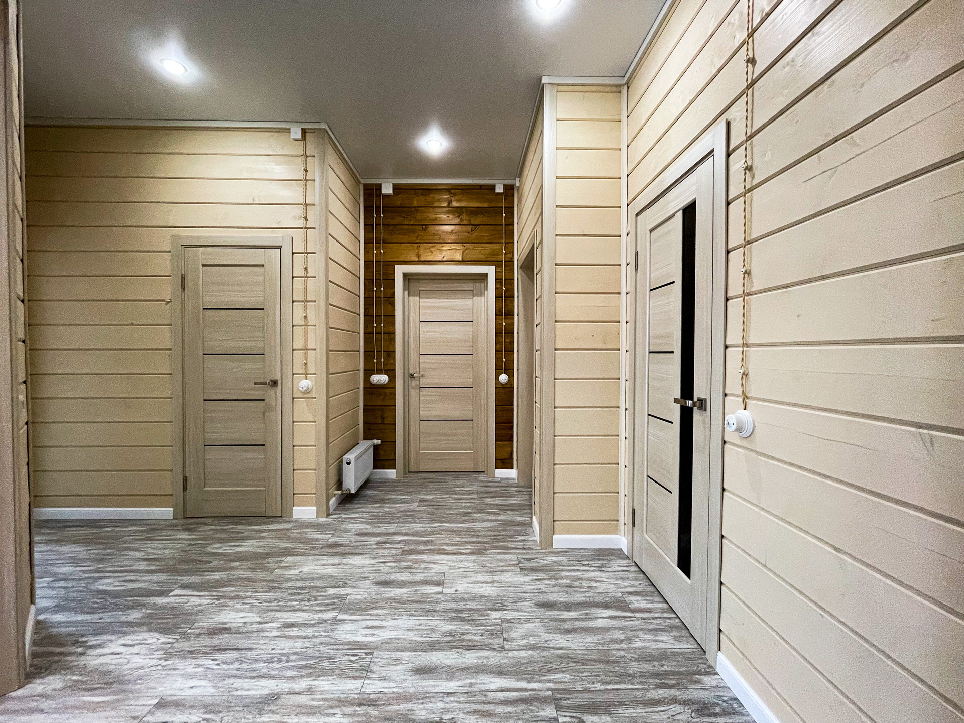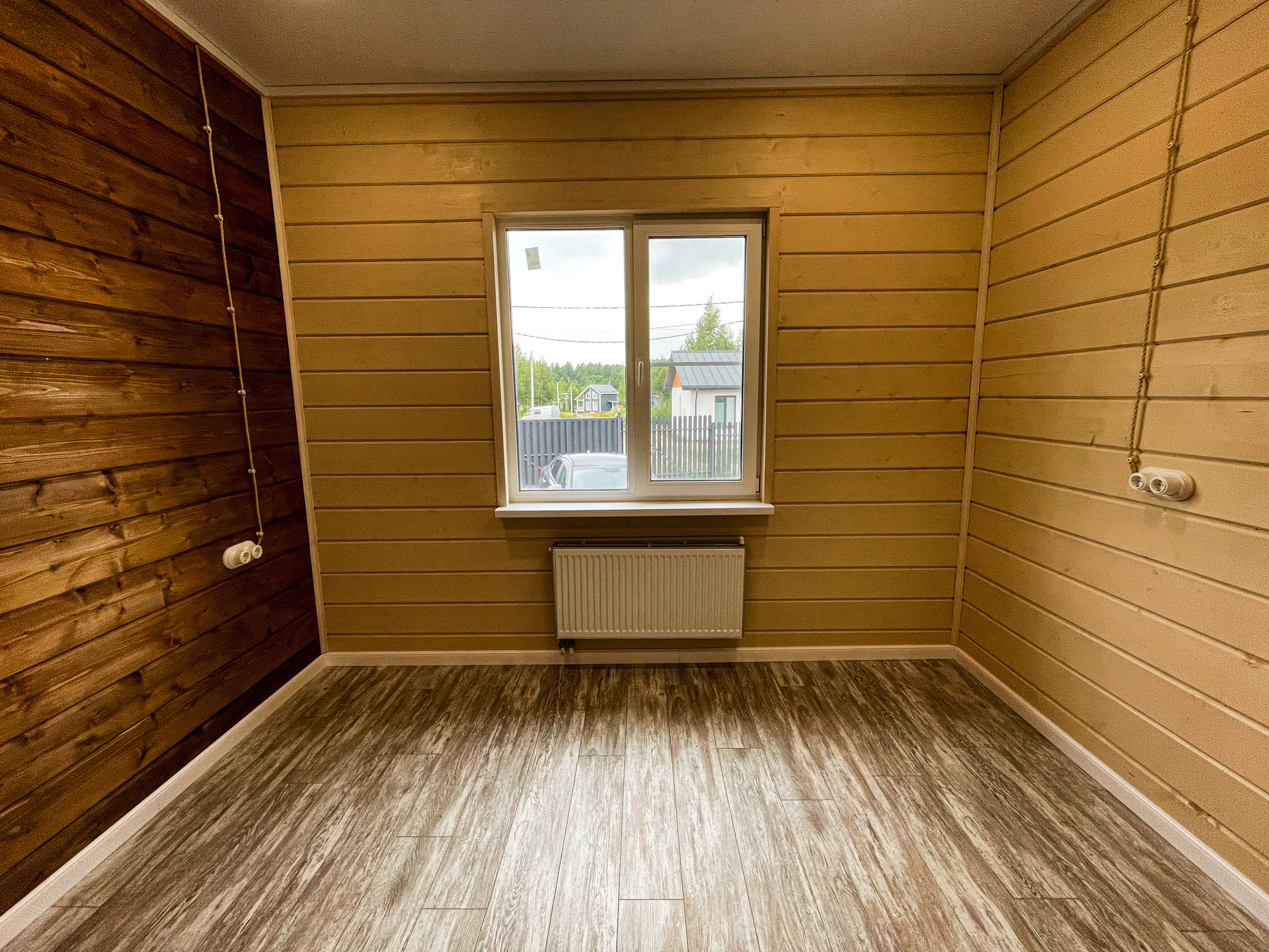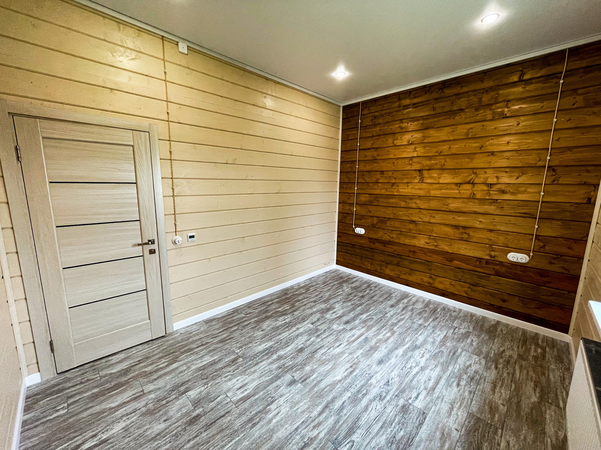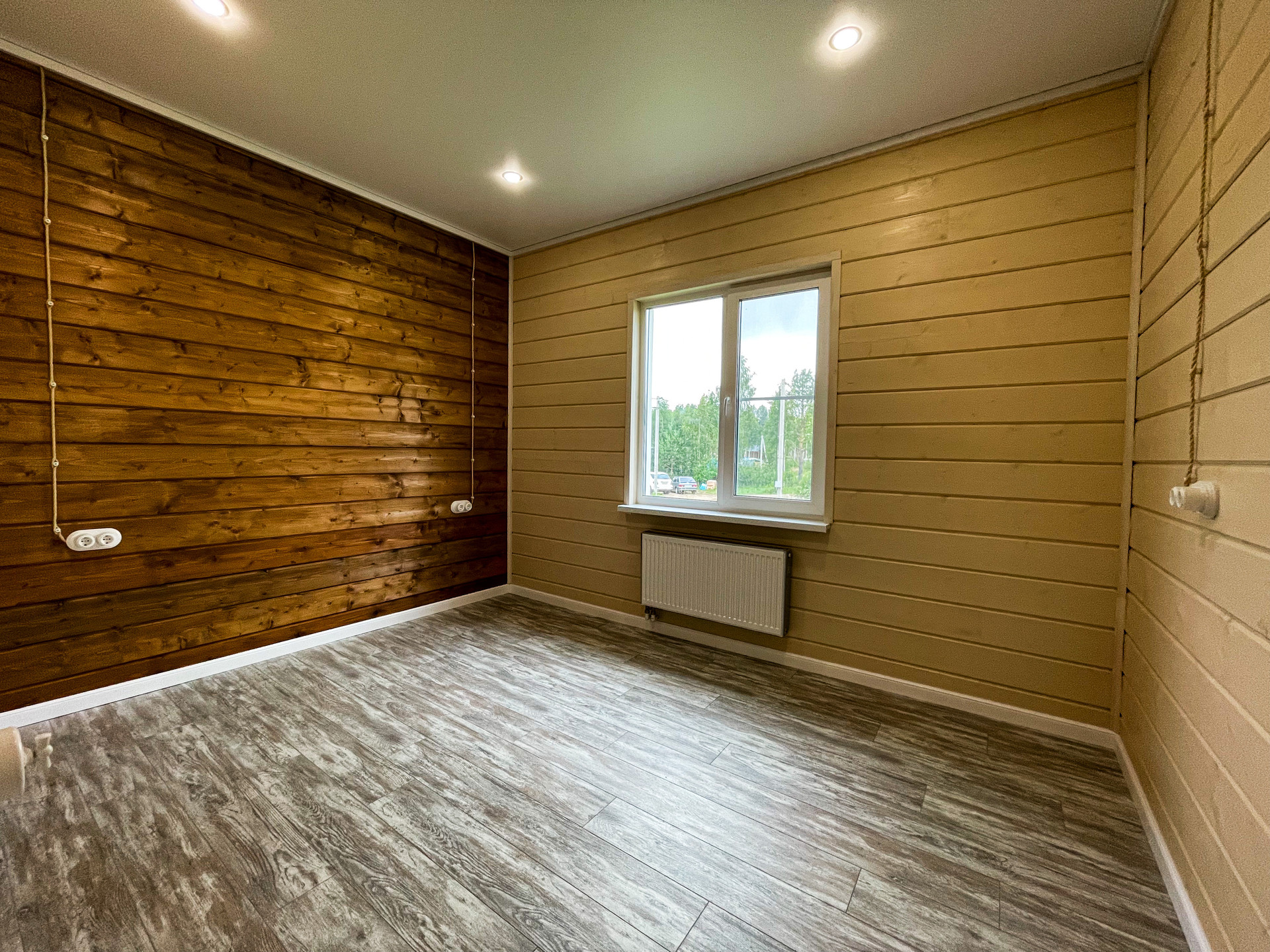 Фасад и внутренняя отделка дома имитация бруса (Карельский профиль АВ 20*200*6000). Покрашен краской в заводских условиях Rеnоwооd Наusе Раint.