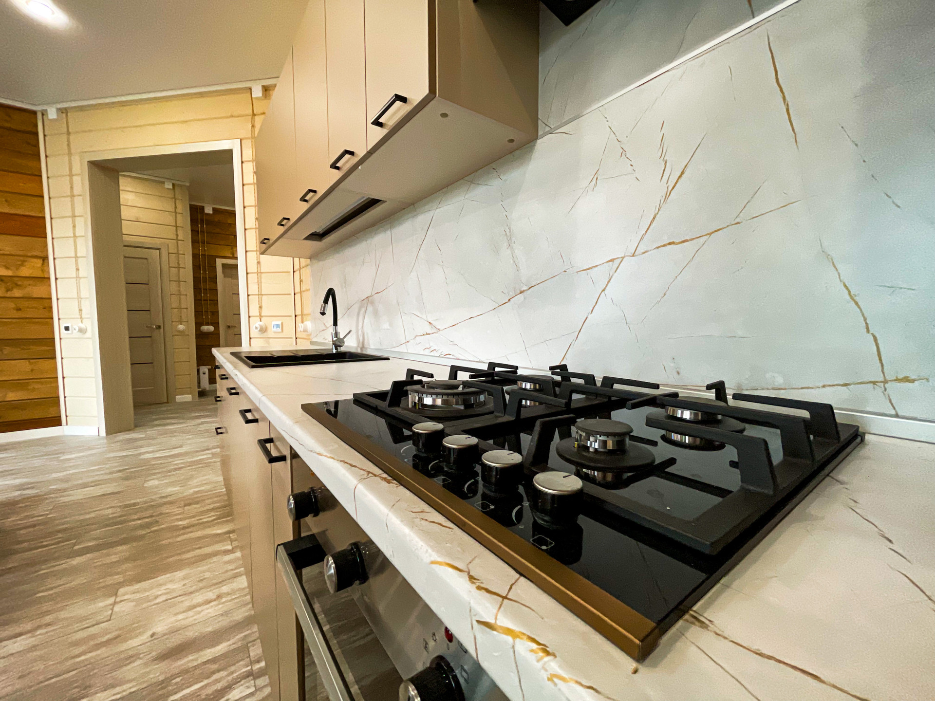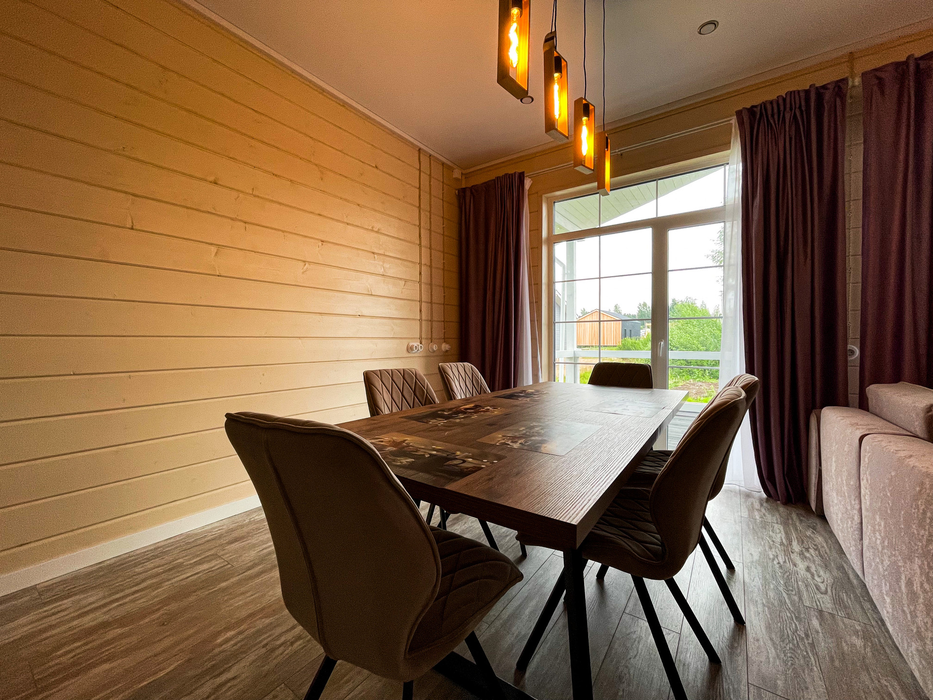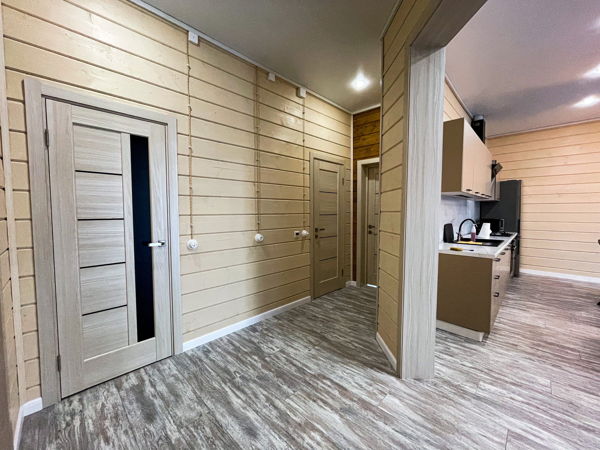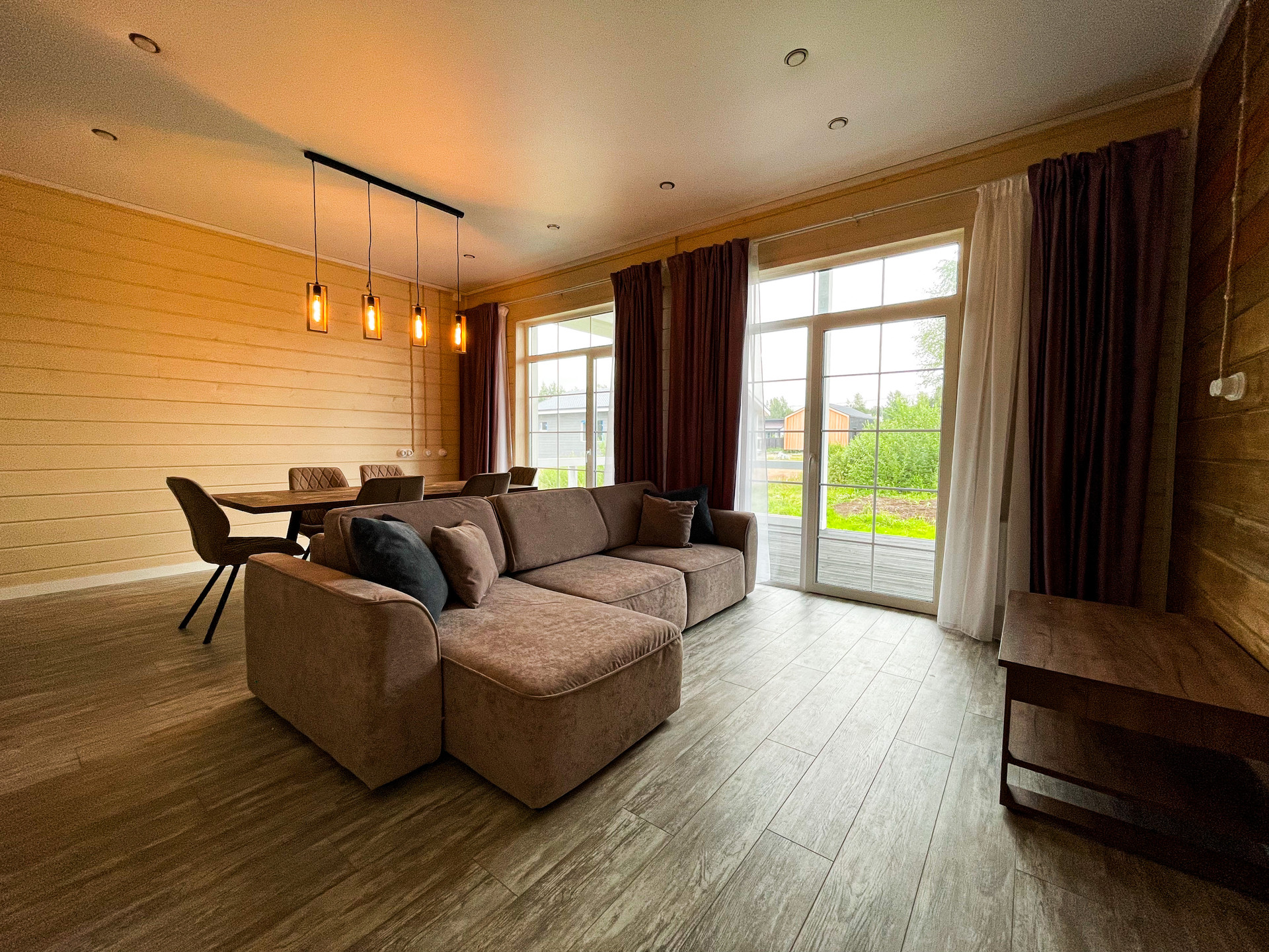 Отделка в светлых тонах с использованием материалов натурального дерева. Теплые (инфракрасные) полы. Дом укомплектован кухонным гарнитуром, мягкой мебелью в гостиной, мастер спальня с кроватью. Дом готов для проживания.