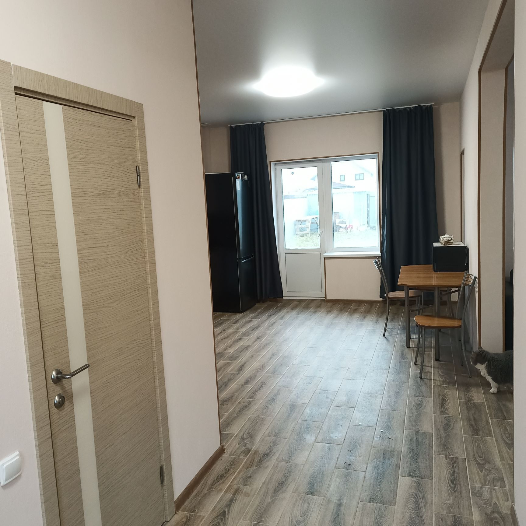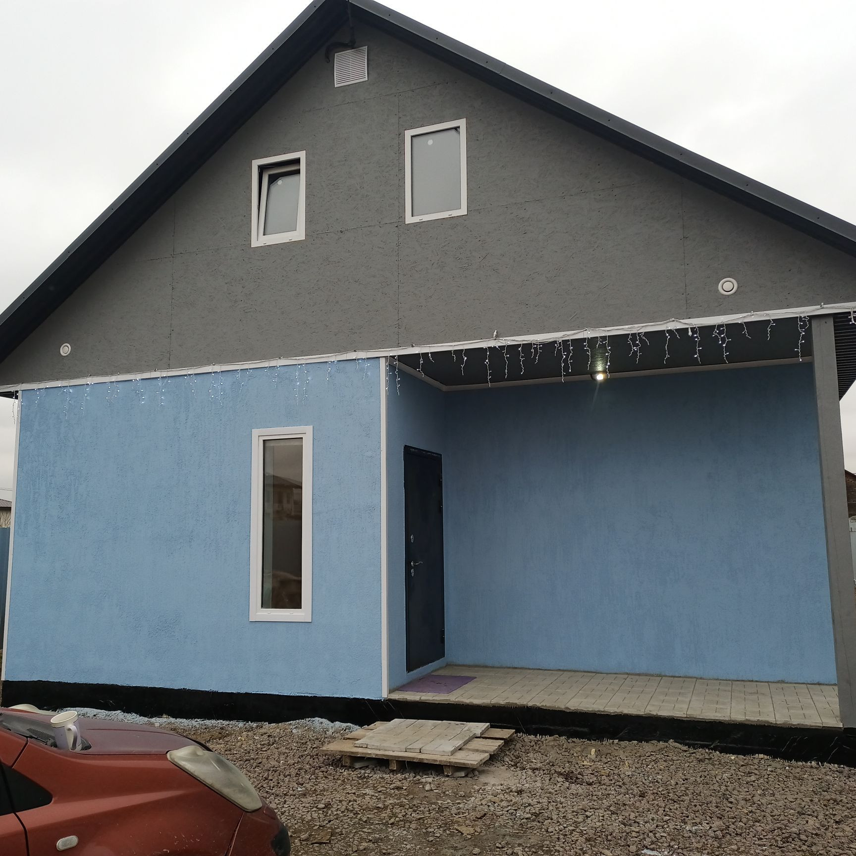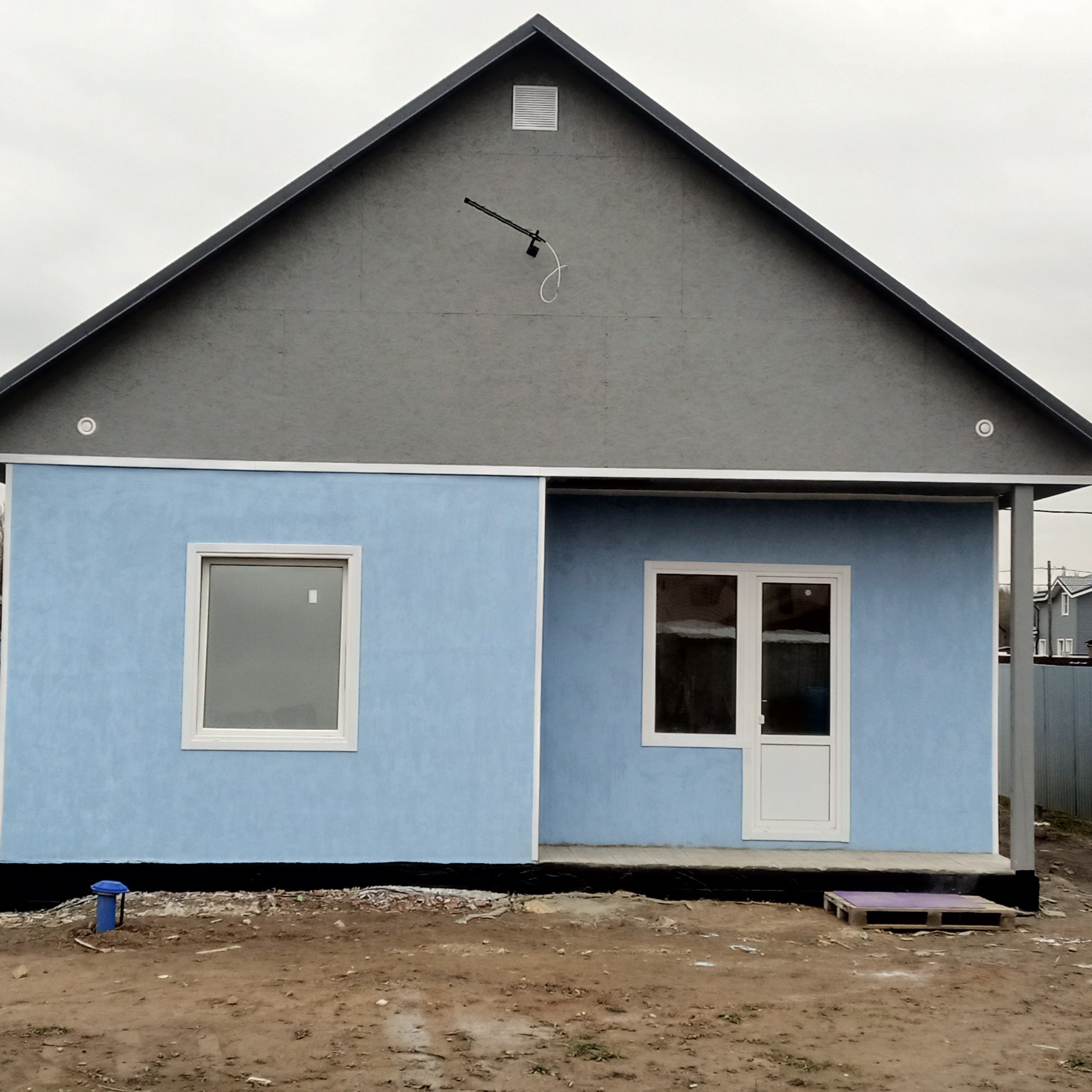 Новый дом, газоблок ЛСР 300 Д 500, бетонная плита 30 см, цоколь из красного кирпича, газоблок полностью просох, в апреле фасад был отштукатурен, дополнительно отделан и покрашен фасадной декоративной штукатуркой и краской "Церезит". Теплые полы (водный контур), керамогранит в столовой-студии, коридоре, ванной и туалете, коммерческий линолеум в комнатах, натяжные потолки. Новый кухонный гарнитур. Стены внутри отделаны декоративной штукатуркой "Церезит". Септик (2 колодца по 3 кольца с горловиной), своя скважина (32м). помимо фильтра грубой очистки воды, стоят фильтра и сделан дополнительный кран для питьевой. Бойлер на горячую воду на 100 л, хватает на семью из 5 человек. Свет 15 кВт напрямую от Ленэнерго, хозблок. Парковка внутри участка на 3 машины, 2 внутренние веранды, входная дверь с теплоразрывом. В СНТ 750 домов, и Усадьба продолжает застраиваться. Усадьба полностью окружена Гатчинском заповедником,  озеро внутри леса. Место уникальное, со своей историей есть мельница 18 века. Также возможность сделать 2 этаж ( это ещё 40 м), по договоренности можем сделать. В 2 км школа и детский сад, аптека, магазины. Строили на продажу по принципу "как для себя". Лично прожила зиму в доме и живу до сих пор, дом зимой зарекомендовал себя на отлично. Продажа только в заботливые руки!)