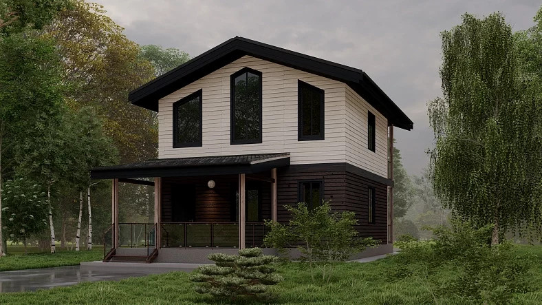 Доступен выбор участка, материала дома, площади, кол-ва комнат, отделки.