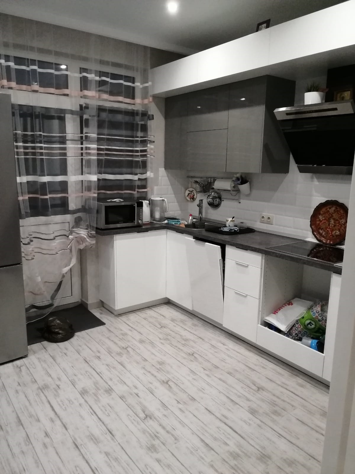 -Просторная кухня-гостиная с выходом на прекрасную террасу 18 м2 закрытая (мягкие окна) и участок.