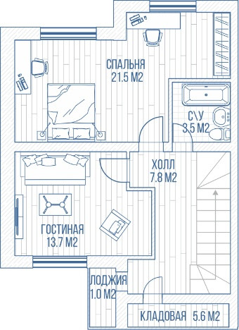 -спальня 21,5м2