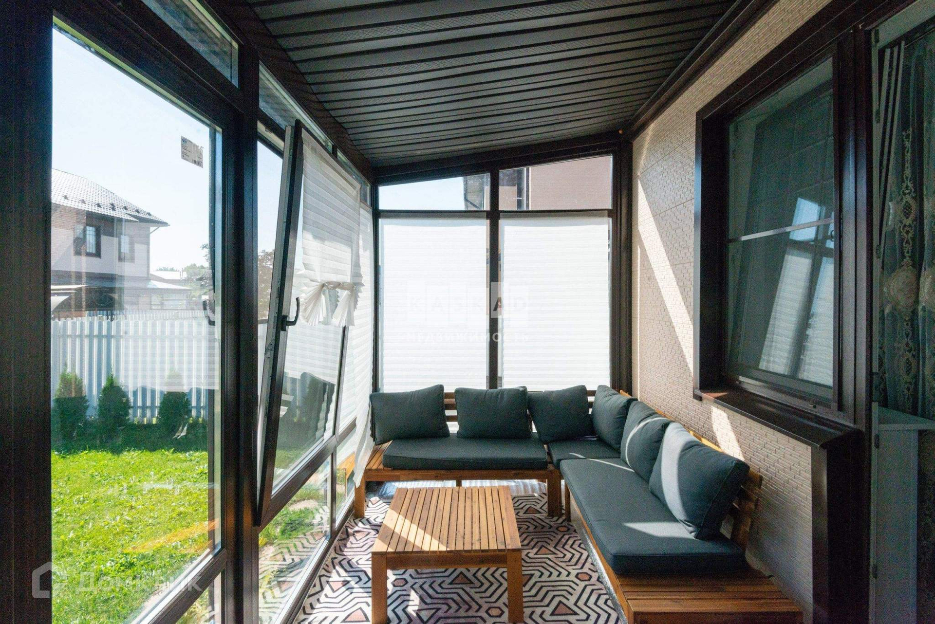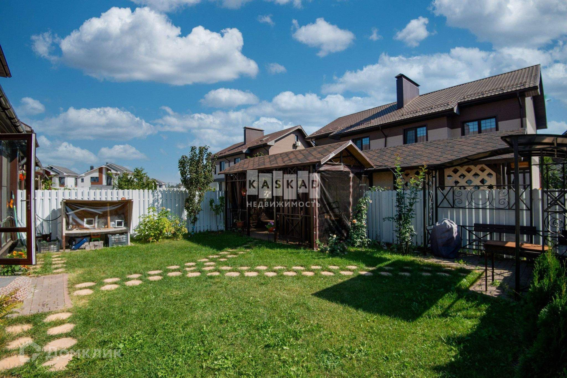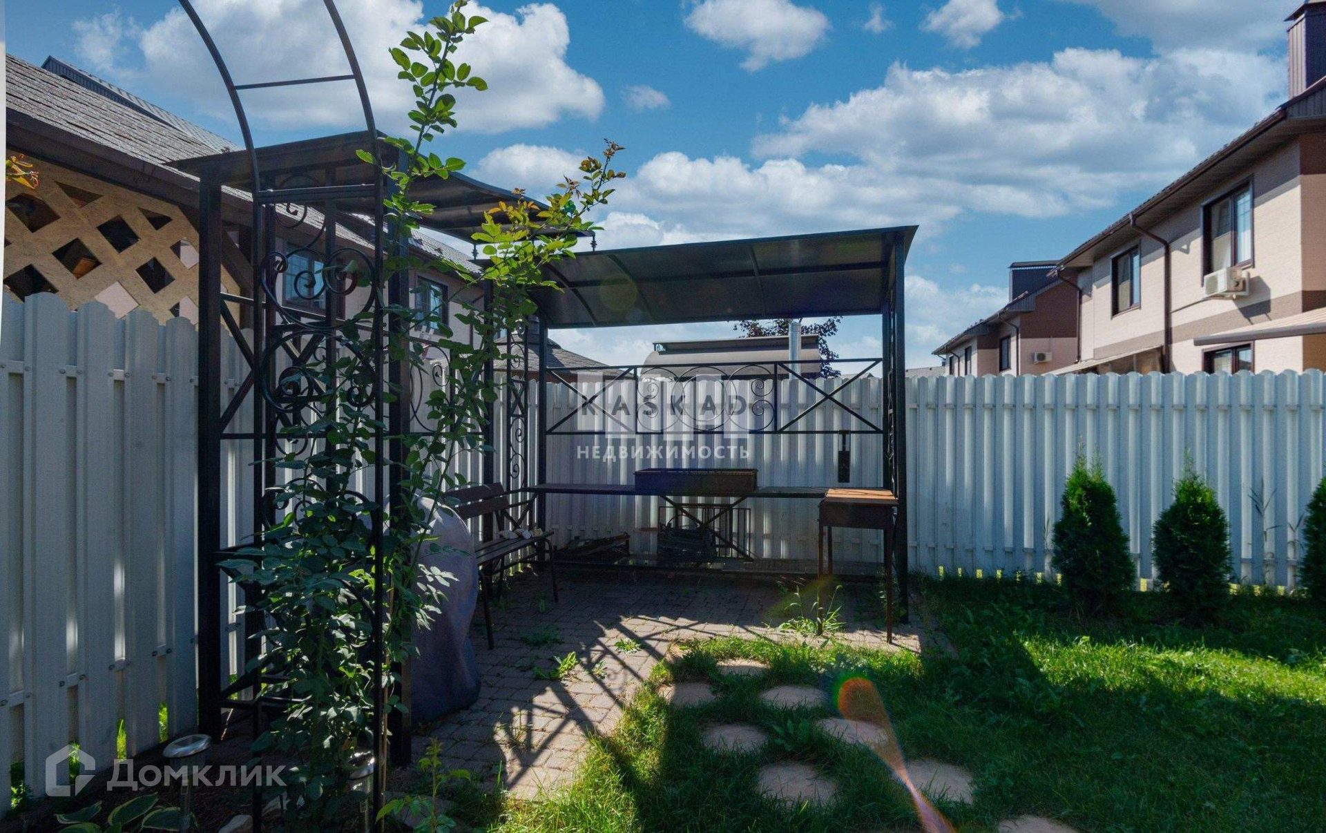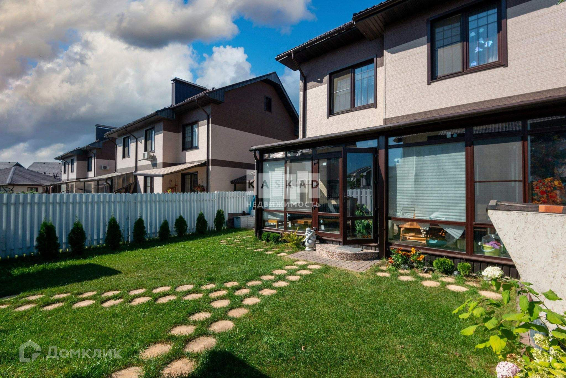 К дому с внешней и внутренней стороны прилегают дваучастка с ландшафтным дизайном: цветник, газон с зоной барбекю.