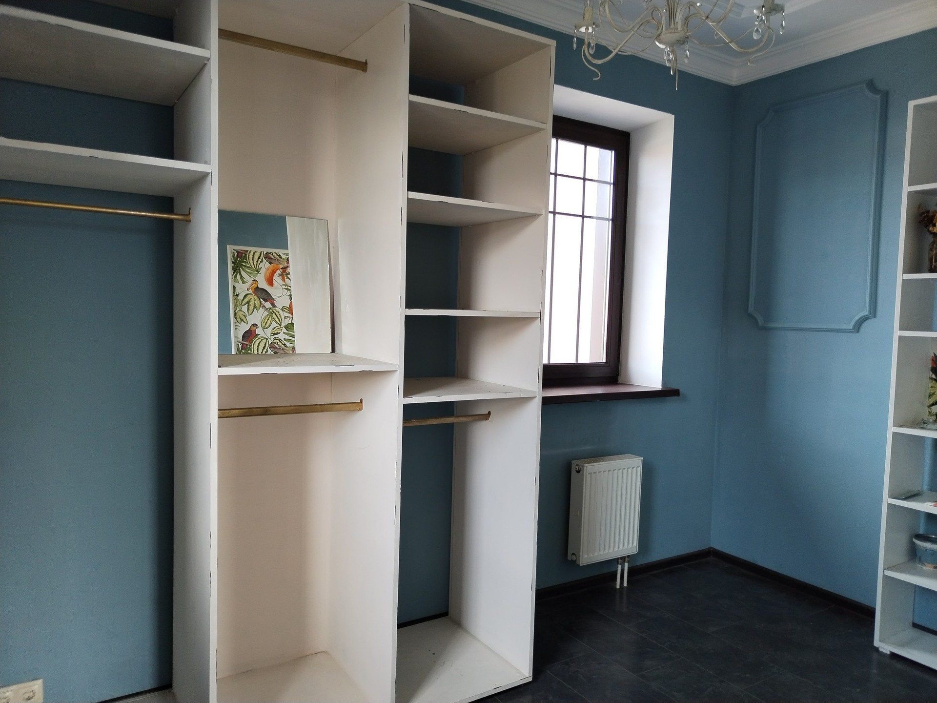 Первый этаж: прихожая, гостинная с кухней, сан узел, спальня, выход на террасу, выход в гараж и в котельную. На первом этаже полы с подогревом (от газового отопления ).