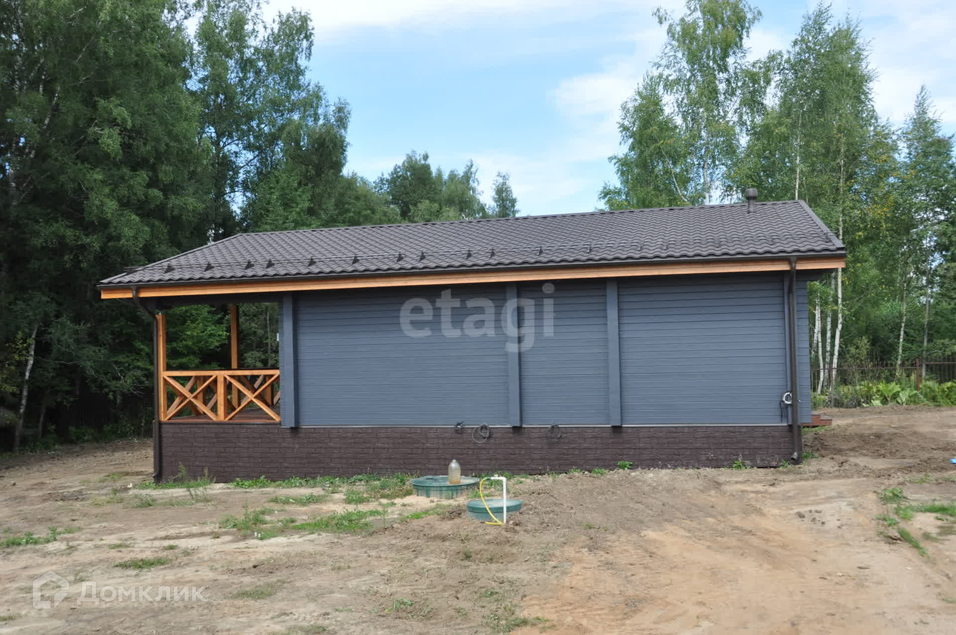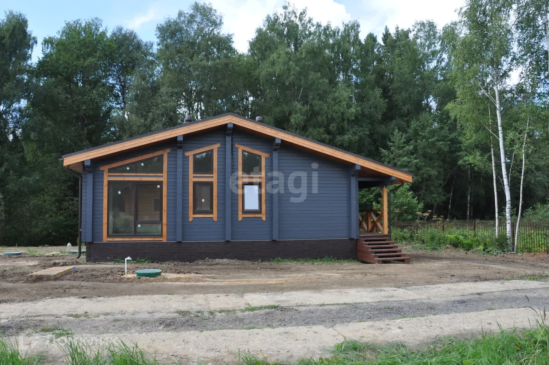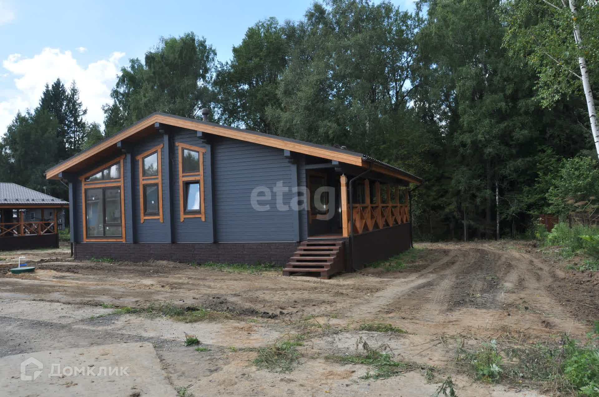 Дом расположен на участке граничащим с лесом, соседи с одной стороны, через лес можно спуститься к реке. В 400 м. от участка располагается большое озеро для купания и рыбалки, на озере оборудовано место для отдыха. Территория коттеджного поселка огорожена, въезд на территорию через шлагбаум, коттеджный поселок небольшой, всего 12 домов, охраняемая территория. Проезд к дому по идеальной асфальтированной дороге, внутри коттеджного поселка к участку проложены ЖБИ плиты, дороги зимой чистятся. В поселке нет членских взносов.