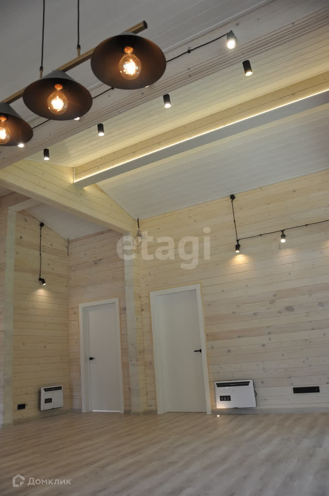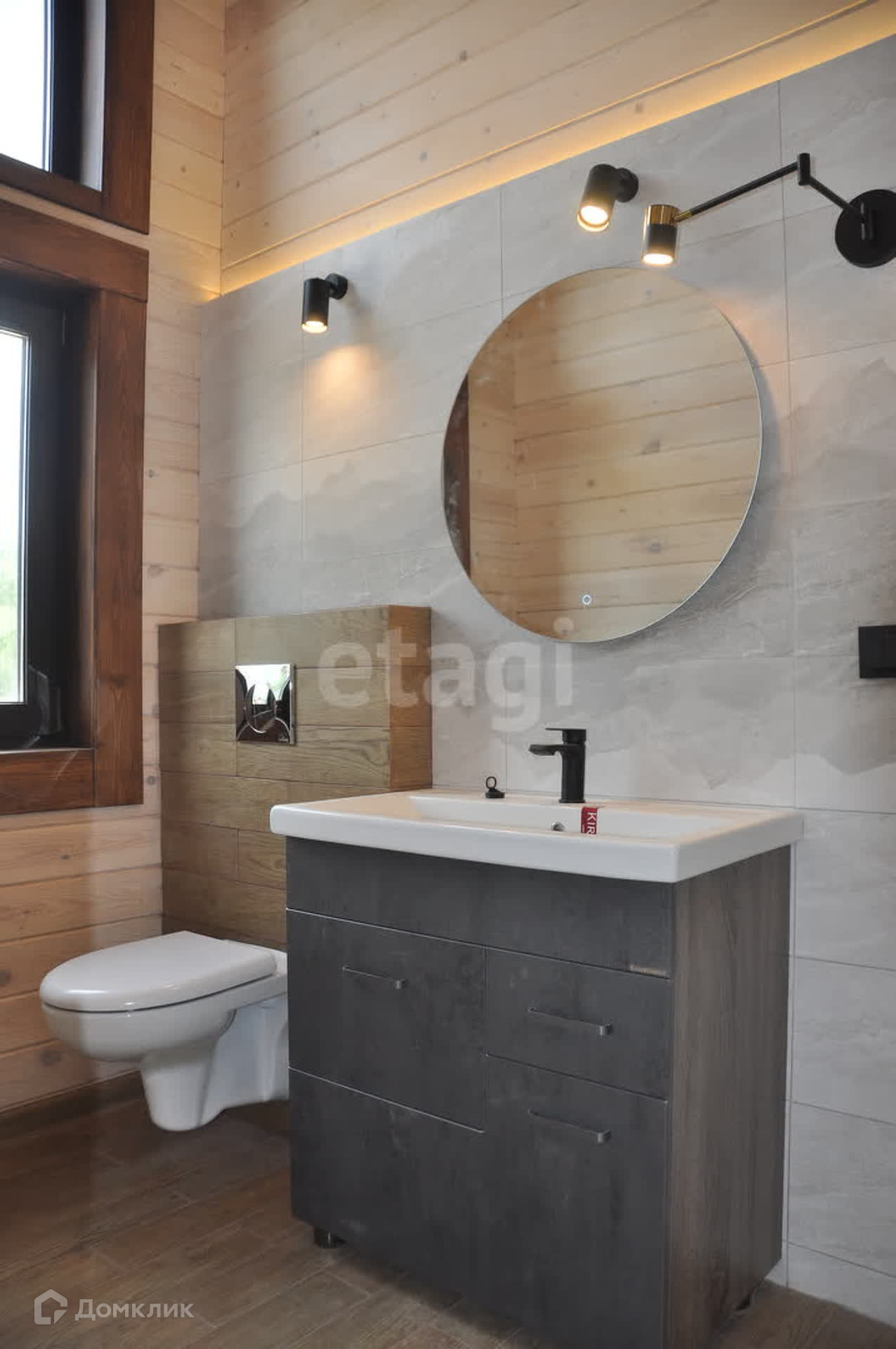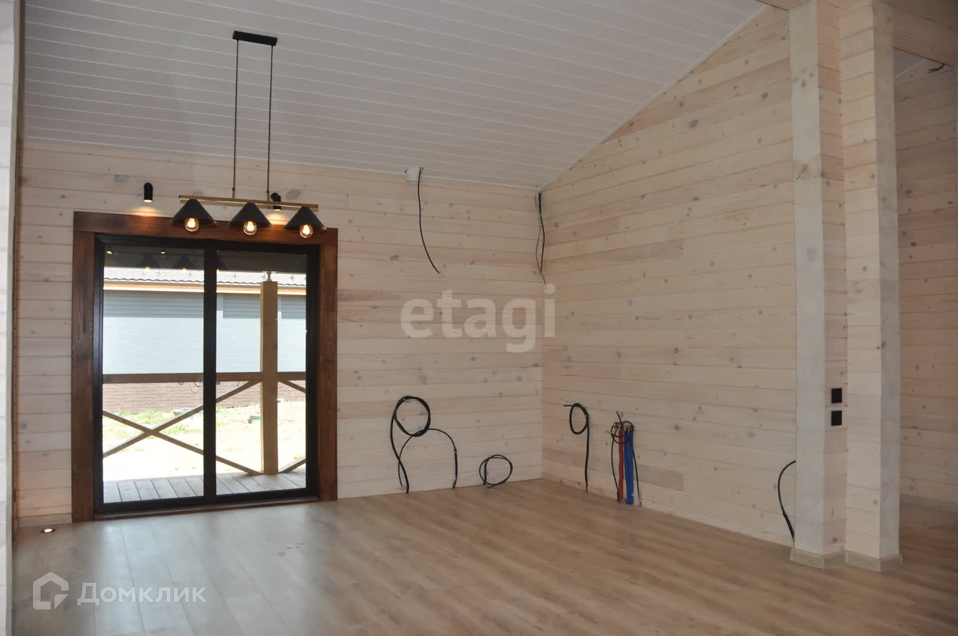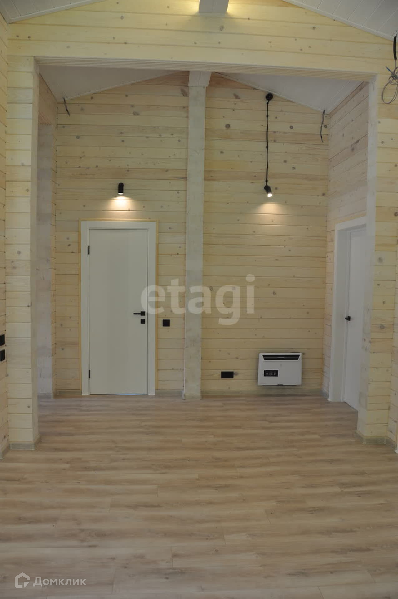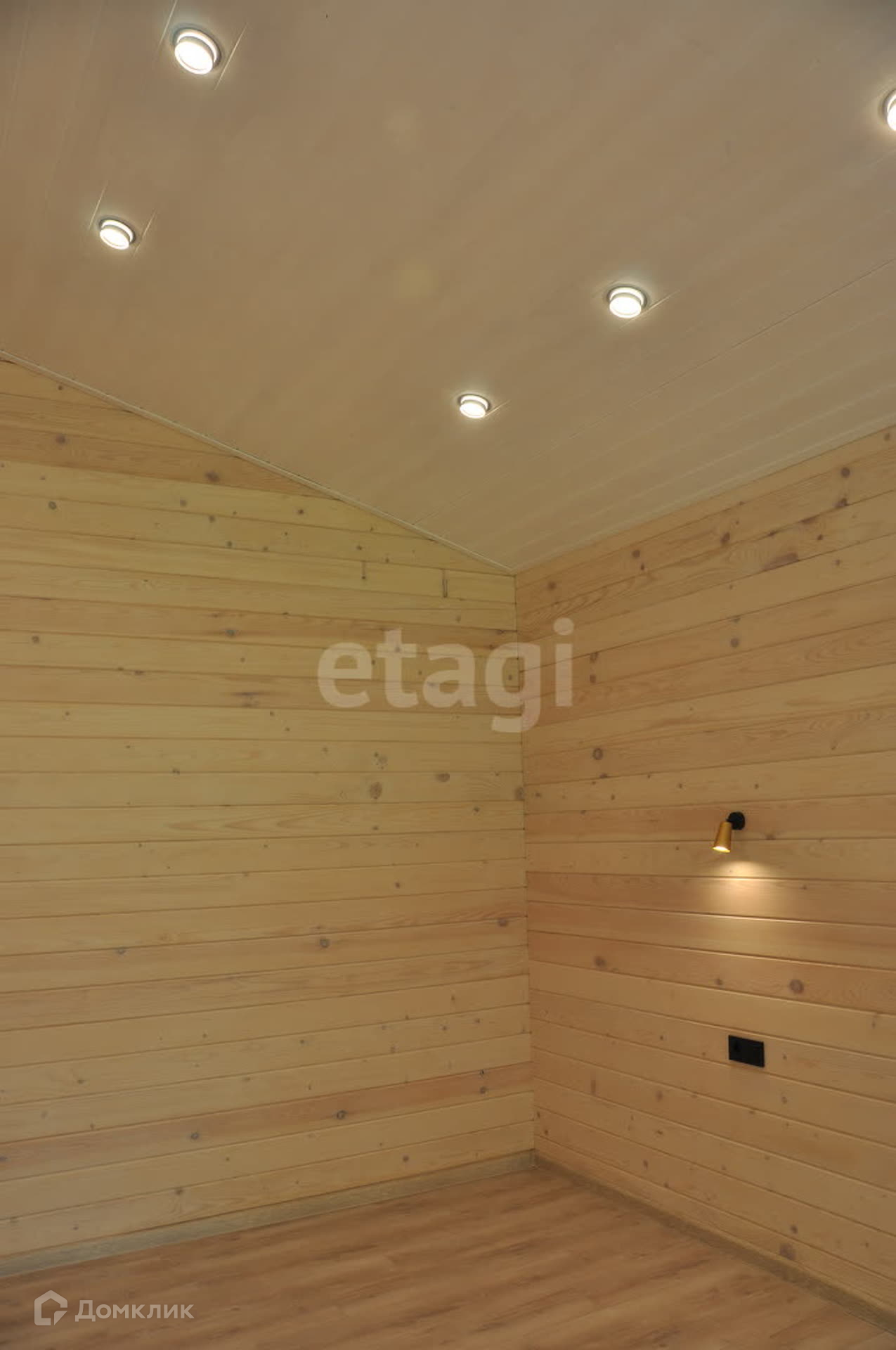 Чистовые полы из ламината и кафеля, потолок имитация бруса. В районе кафеля и под окнами теплые полы.