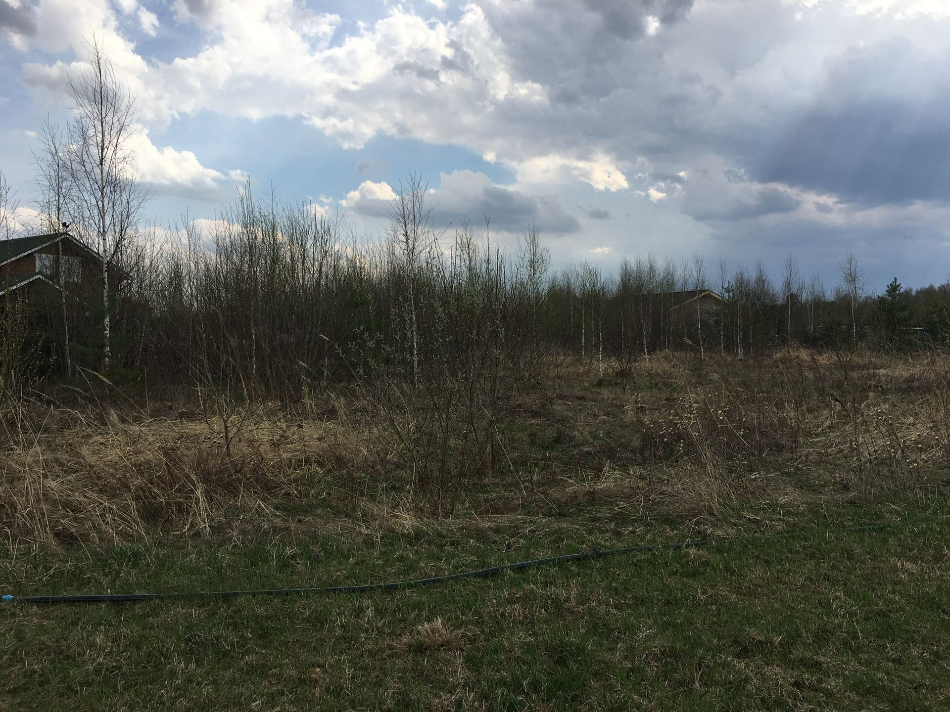 Участок ровный, без уклона. К границе подведены все центральные коммуникации: электричество, газ, водопровод и канализация. На участке растут молодые сосенки, березки, лесная земляника.