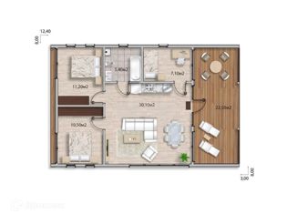 Общая площадь: 70 м2