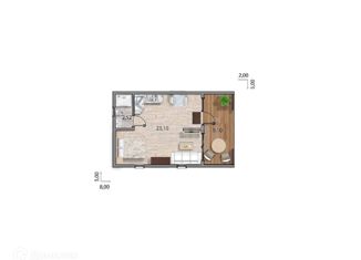Общая площадь: 34 м2
