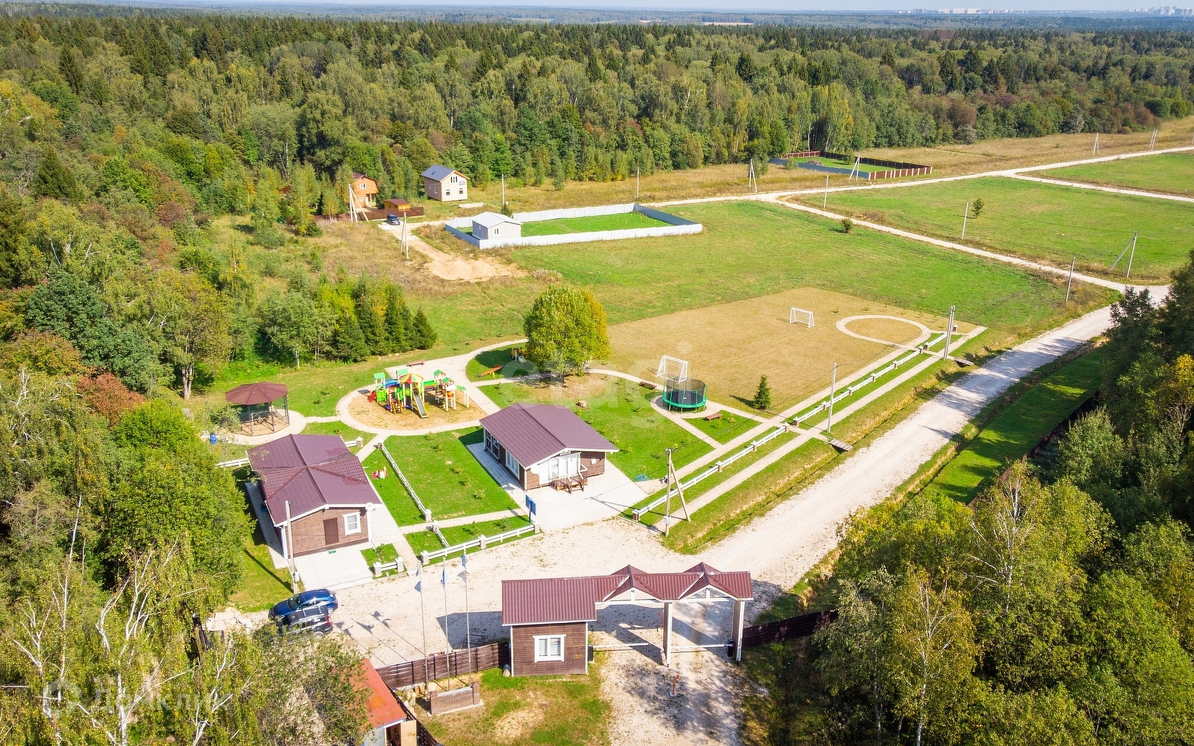 Для маленьких жителей поселка запланирована установка большого детского городка с батутом и мини зоопарком.