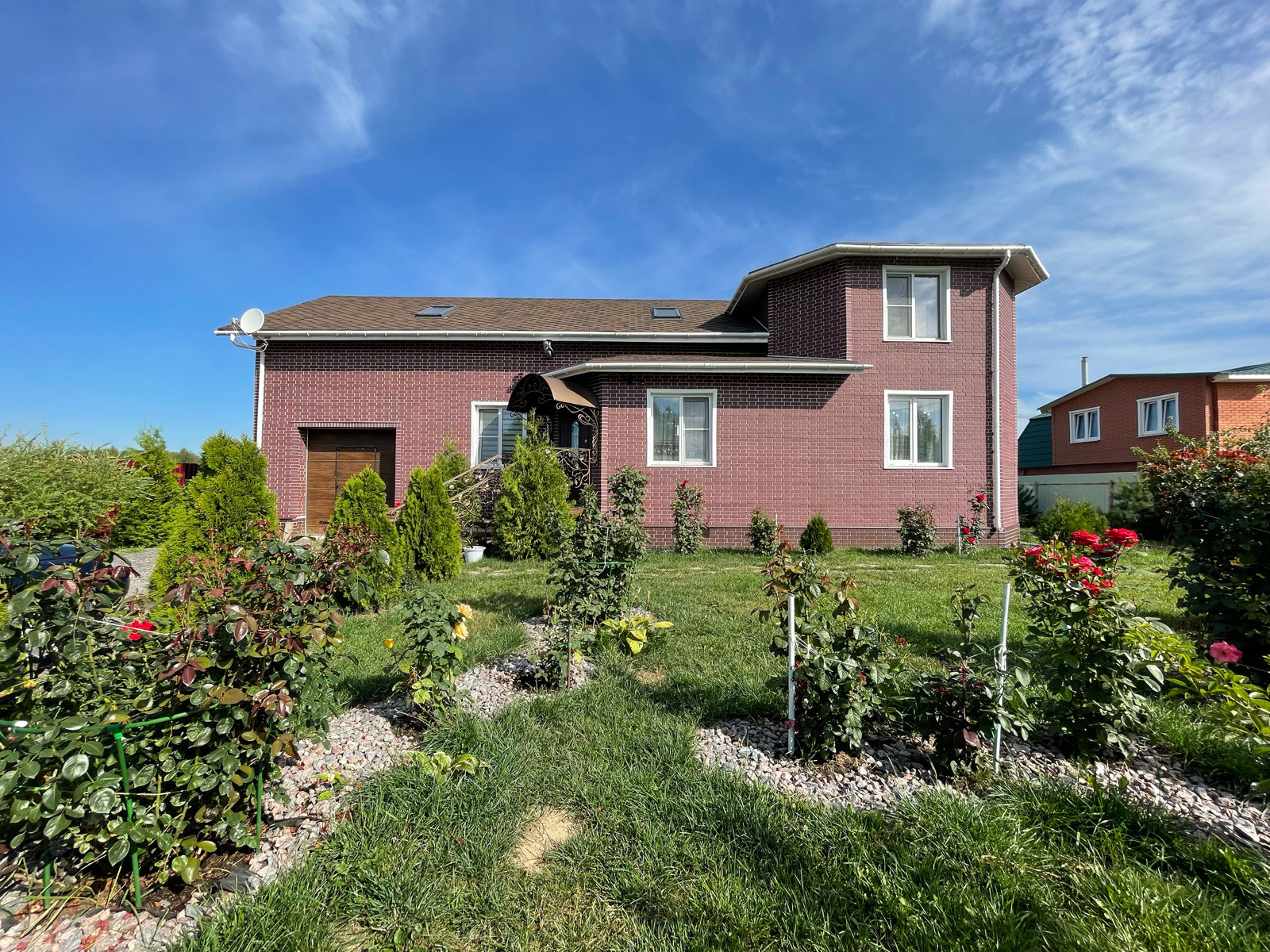 На участке плодовые деревья и кустарники, розы, ягоды, засажен по периметру.
