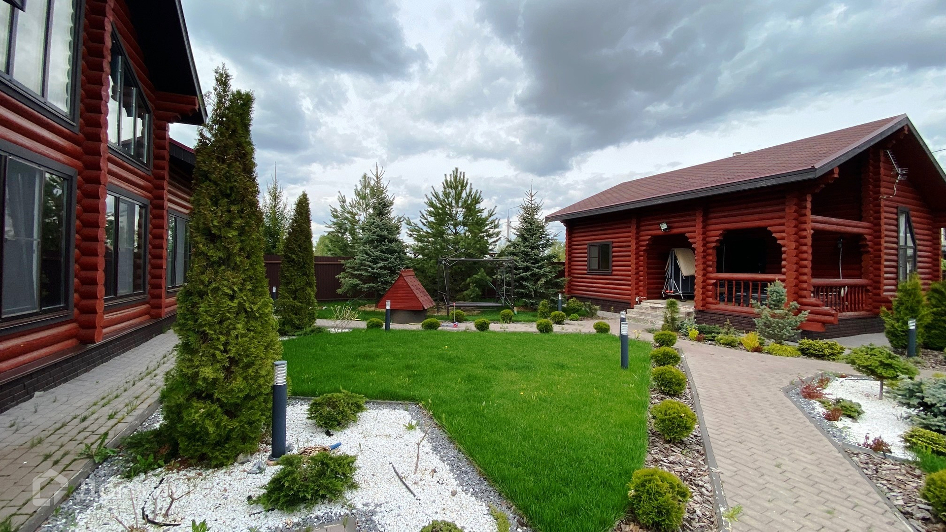 На участке площадью 10 соток с ландшафтным дизайном расположены: баня – гостевой дом, 96 кв.м., просторная парная с классической печью на дровах, две комнаты отдыха, открытая веранда. Въезд автоматические ворота, крытая площадка на два автомобиля.