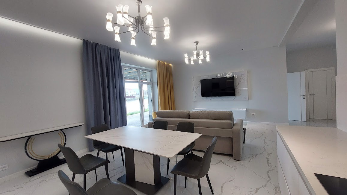 Предлагается к продаже современный дом в элитном посёлке 2022 года постройки. Построен из газосиликатного блока + утеплитель 10 см + фасад японскими панелями. Крыша шинглс и так же утеплена 20 см. Фундамент – армированная плита. Строился для себя, из качественных материалов. Ремонт сделан «под ключ».
