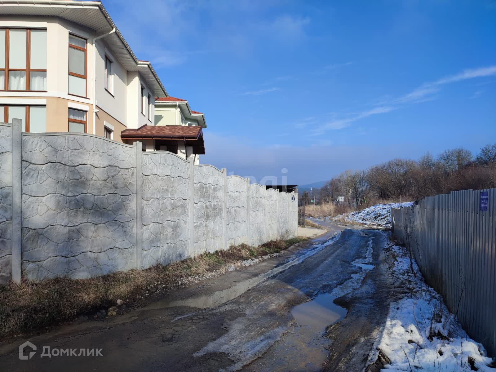 Электричество, газ проходит по границе участка. Забор из метало профиля.