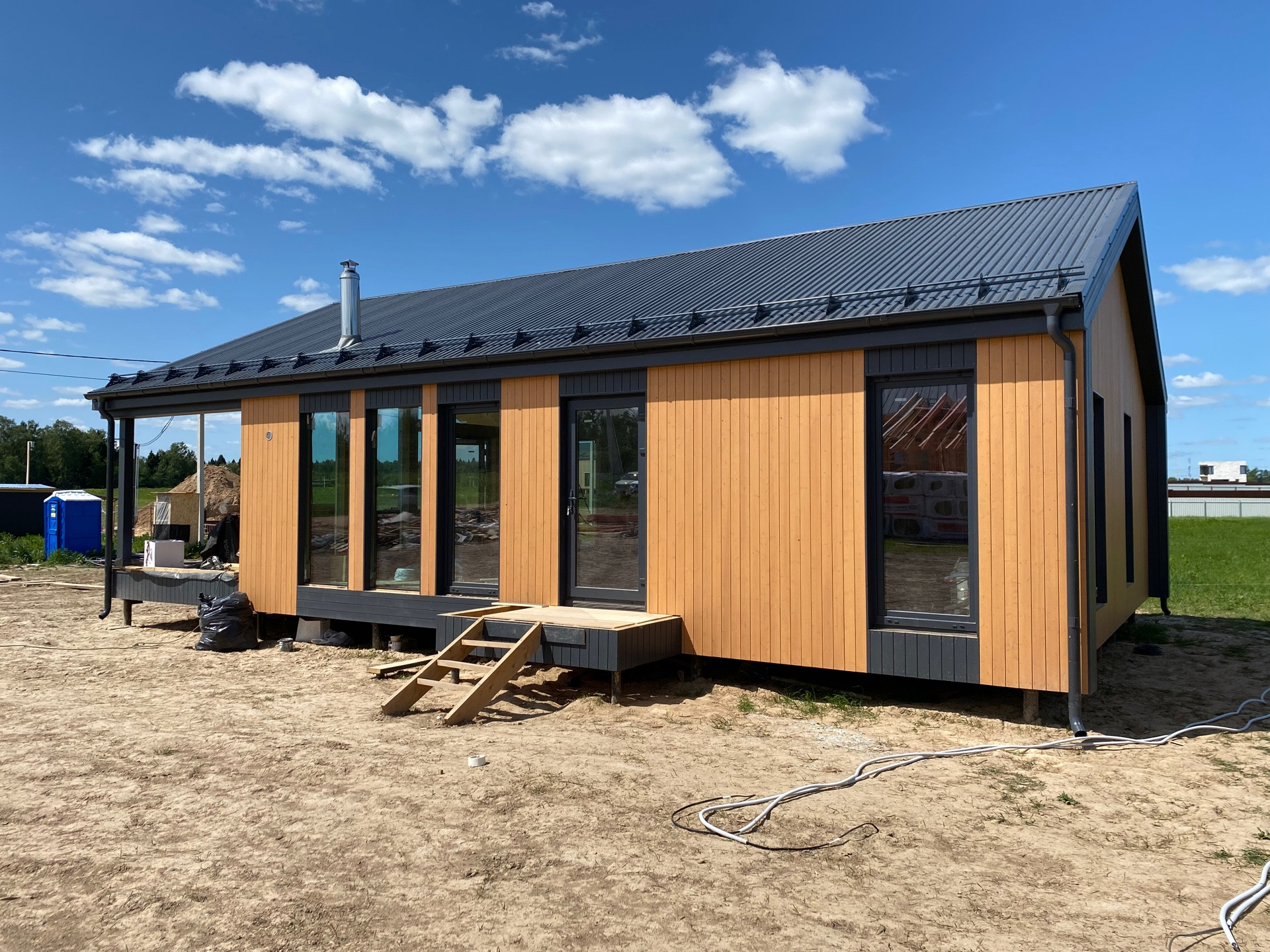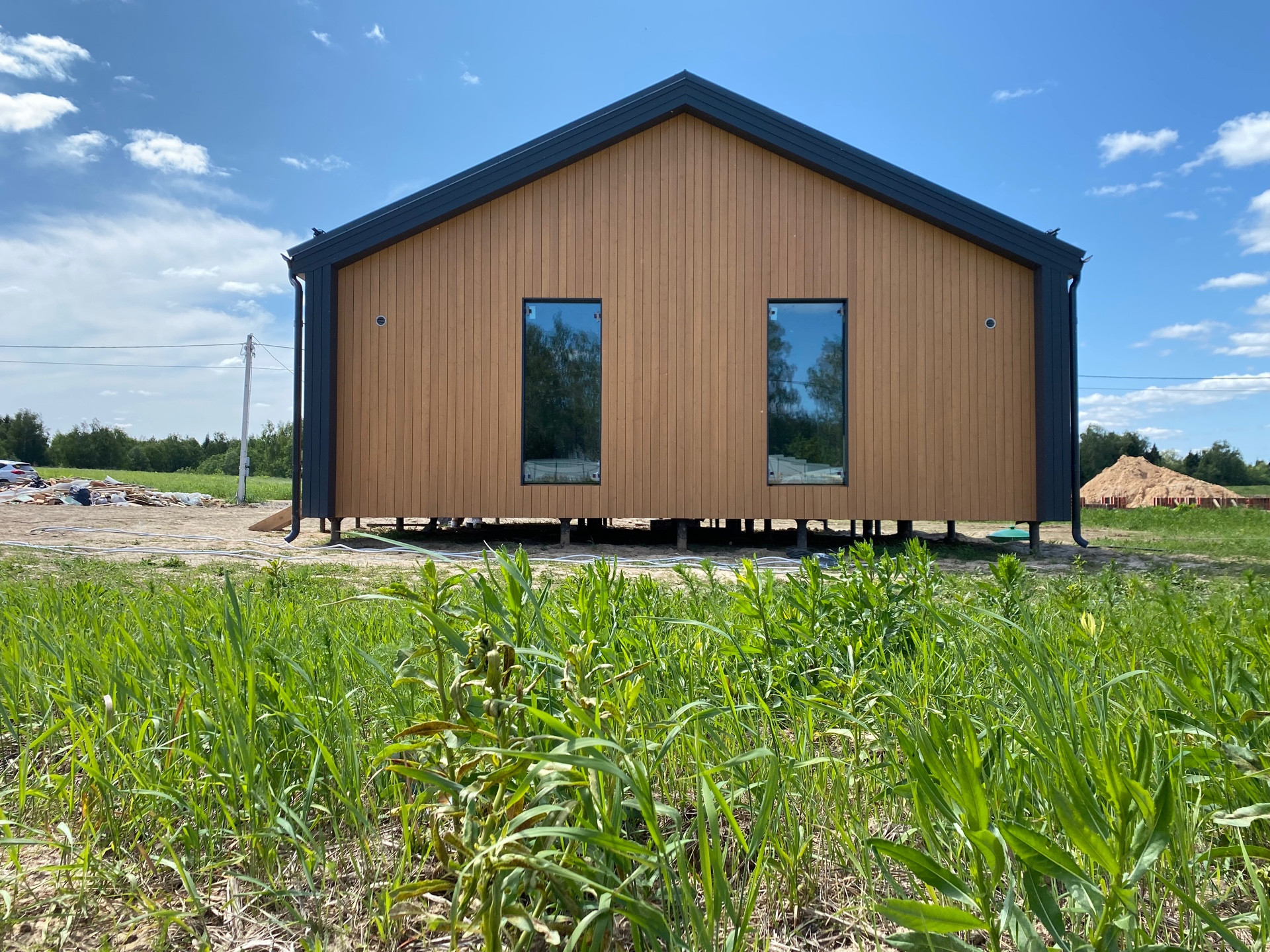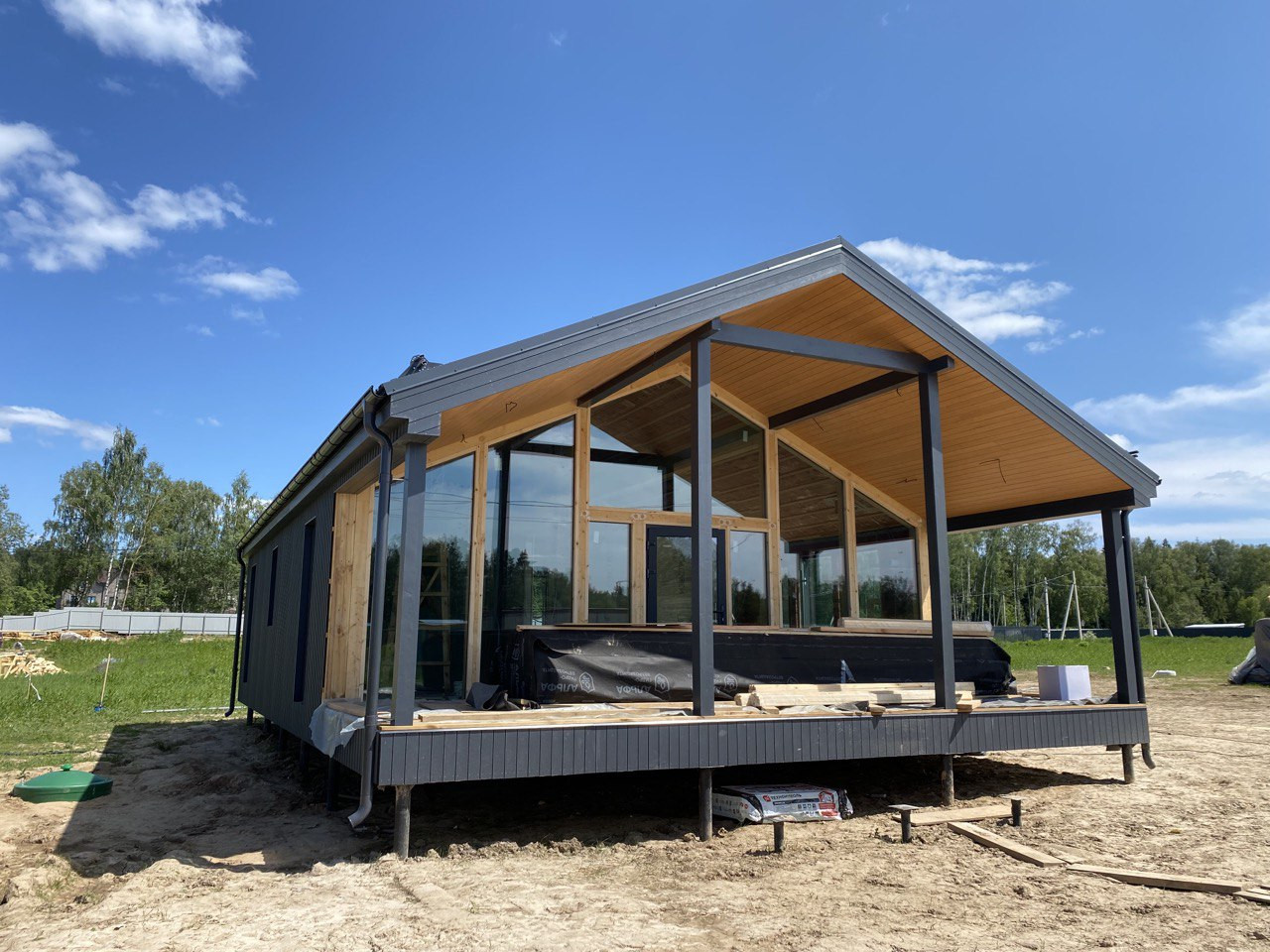 *Внешняя отделка дома из современных материалов планкен сосна, окрашен на заводе