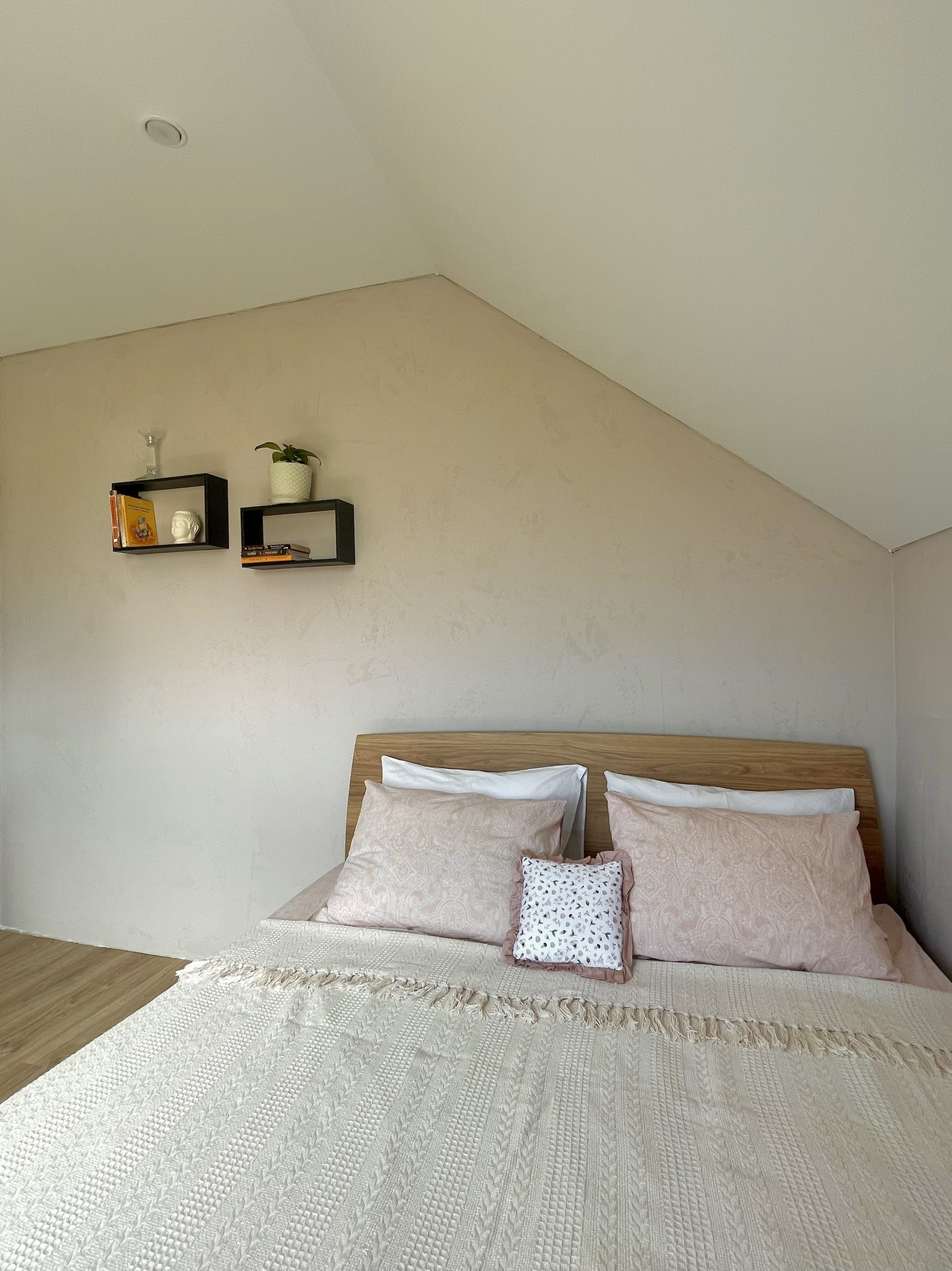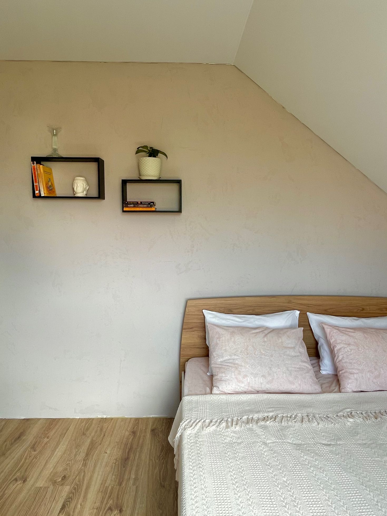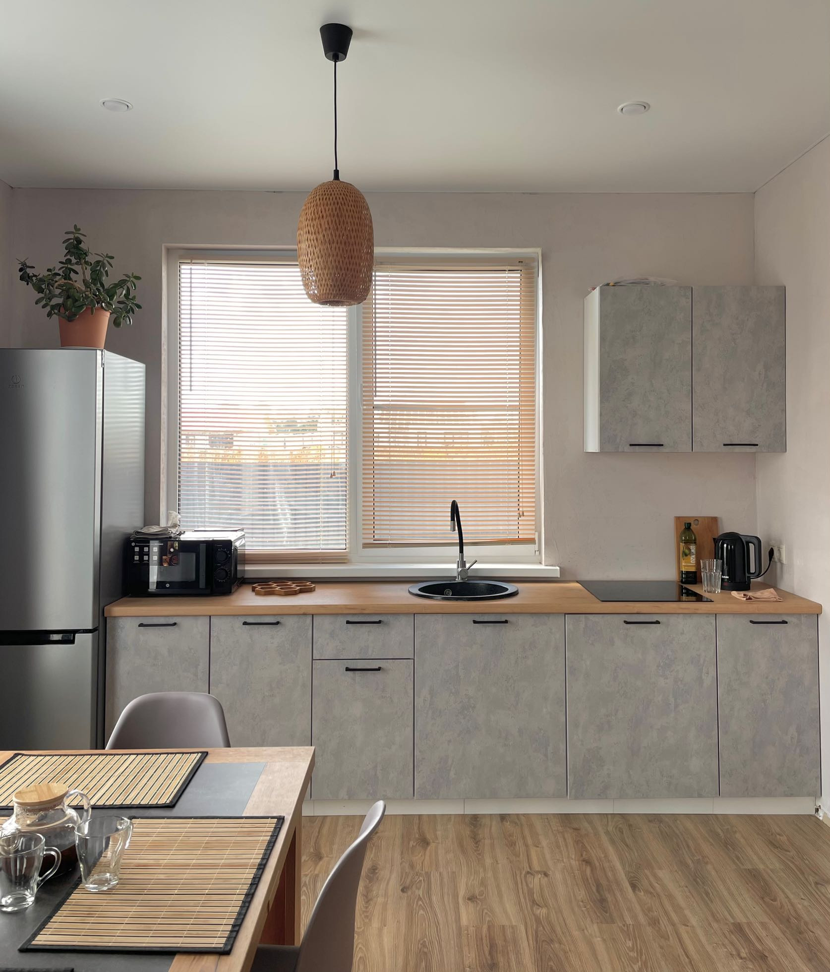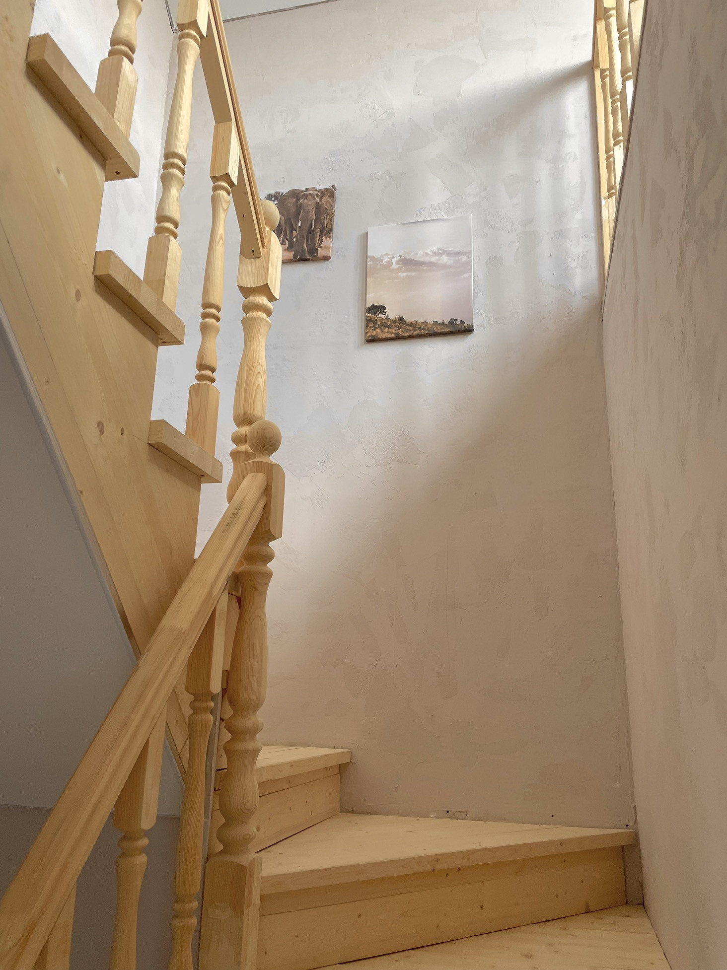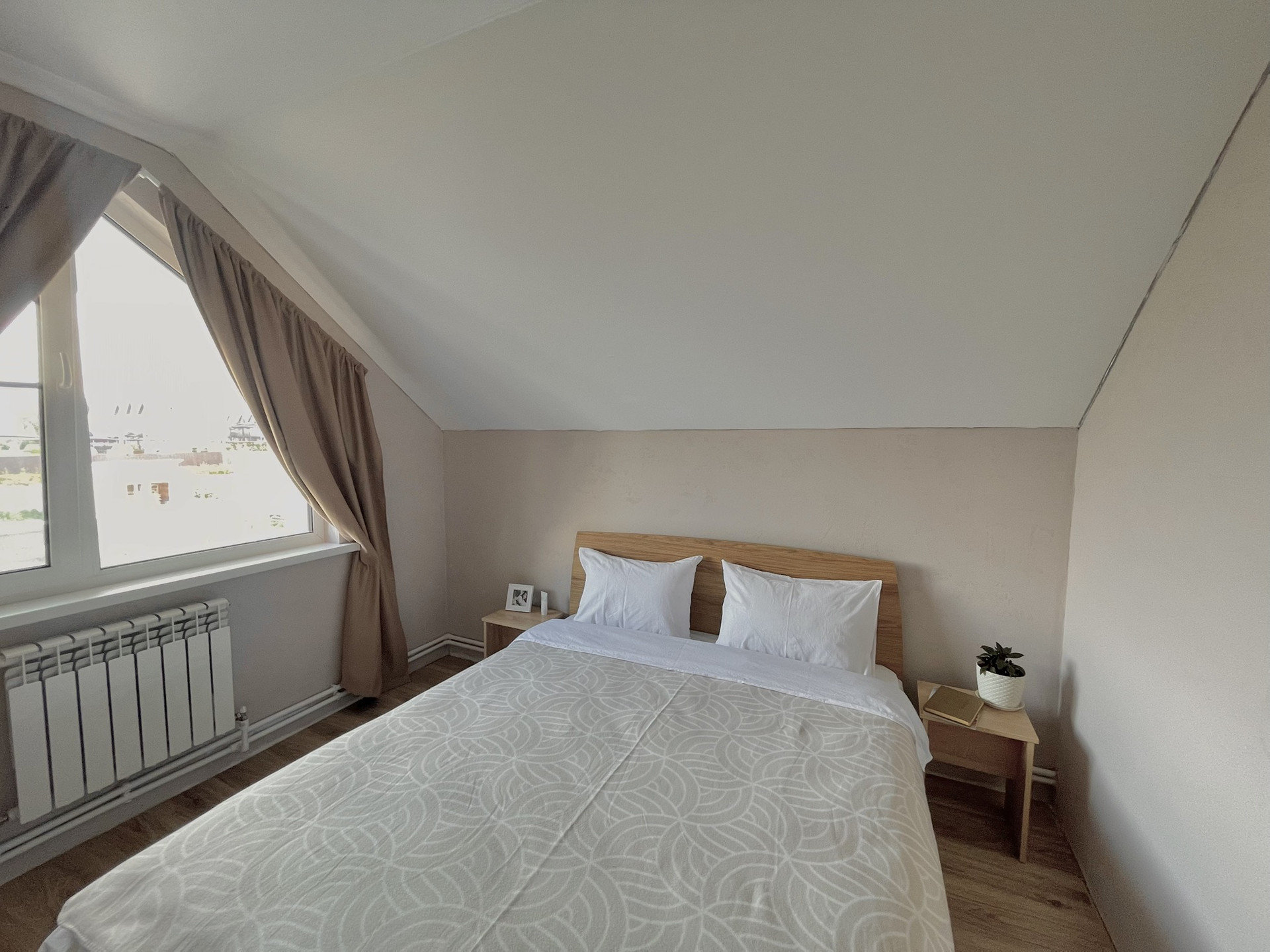 На первом этаже: кухня-гостиная, санузел, прихожая, котельная. На втором: три спальни, санузел и балкон.