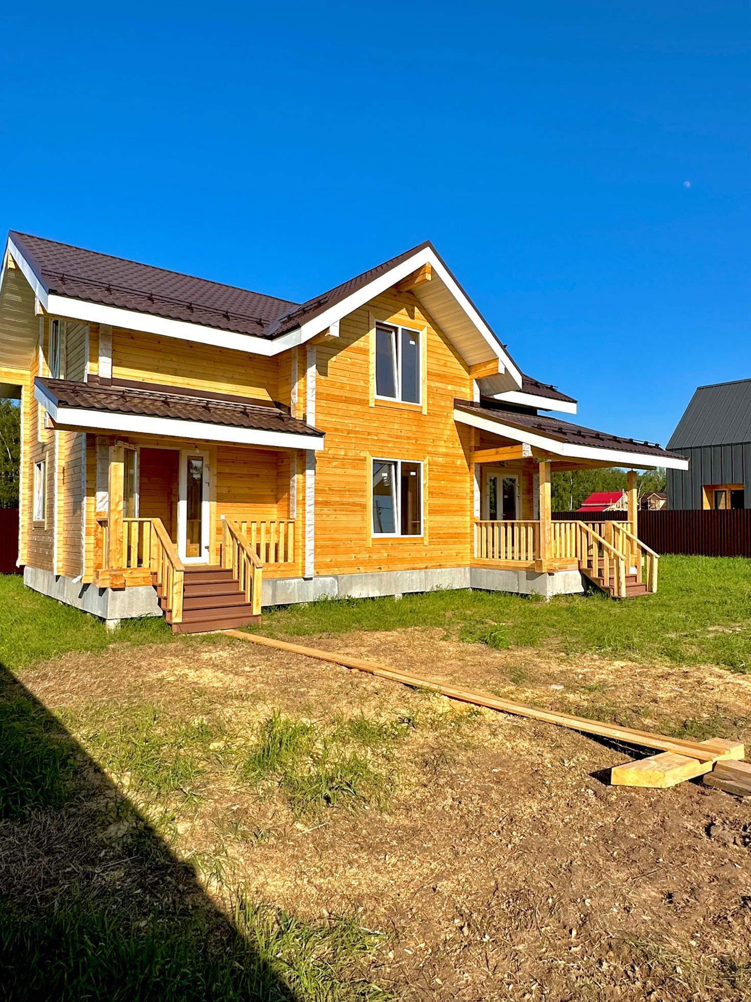 Предлагаем к приобретению новый дом 169 метров, с земельным участком СНТ 9 соток в КП «Весна Парк»! Поселок расположен в 30 км по Ярославскому шоссе от Москвы в живописном месте среди лесного массива, на берегу Пестовского водохранилища. Дом выполнен из бруса, фундамент ж/б сваи, утепленная кровля, установлены качественные стеклопакеты. Внутри разведена электрическая проводка, смонтирована отопите