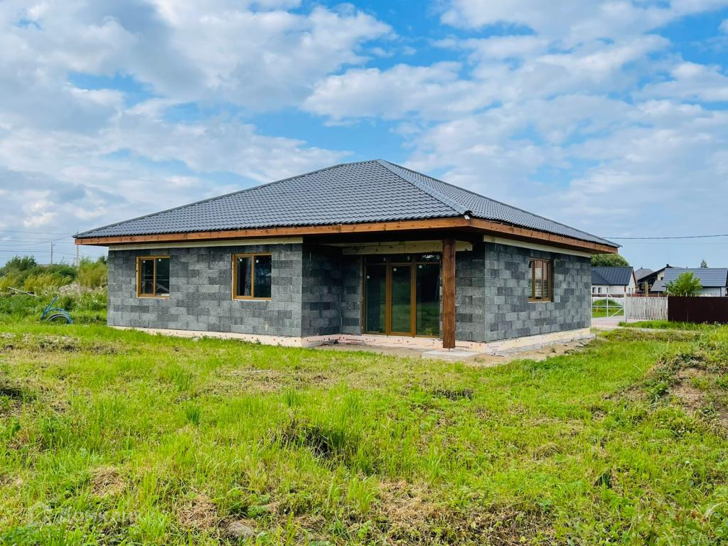 Современный новый жилой одноэтажный дом 186 кв. м. с солнечной террасой на сухом, ровном участке правильной формы.