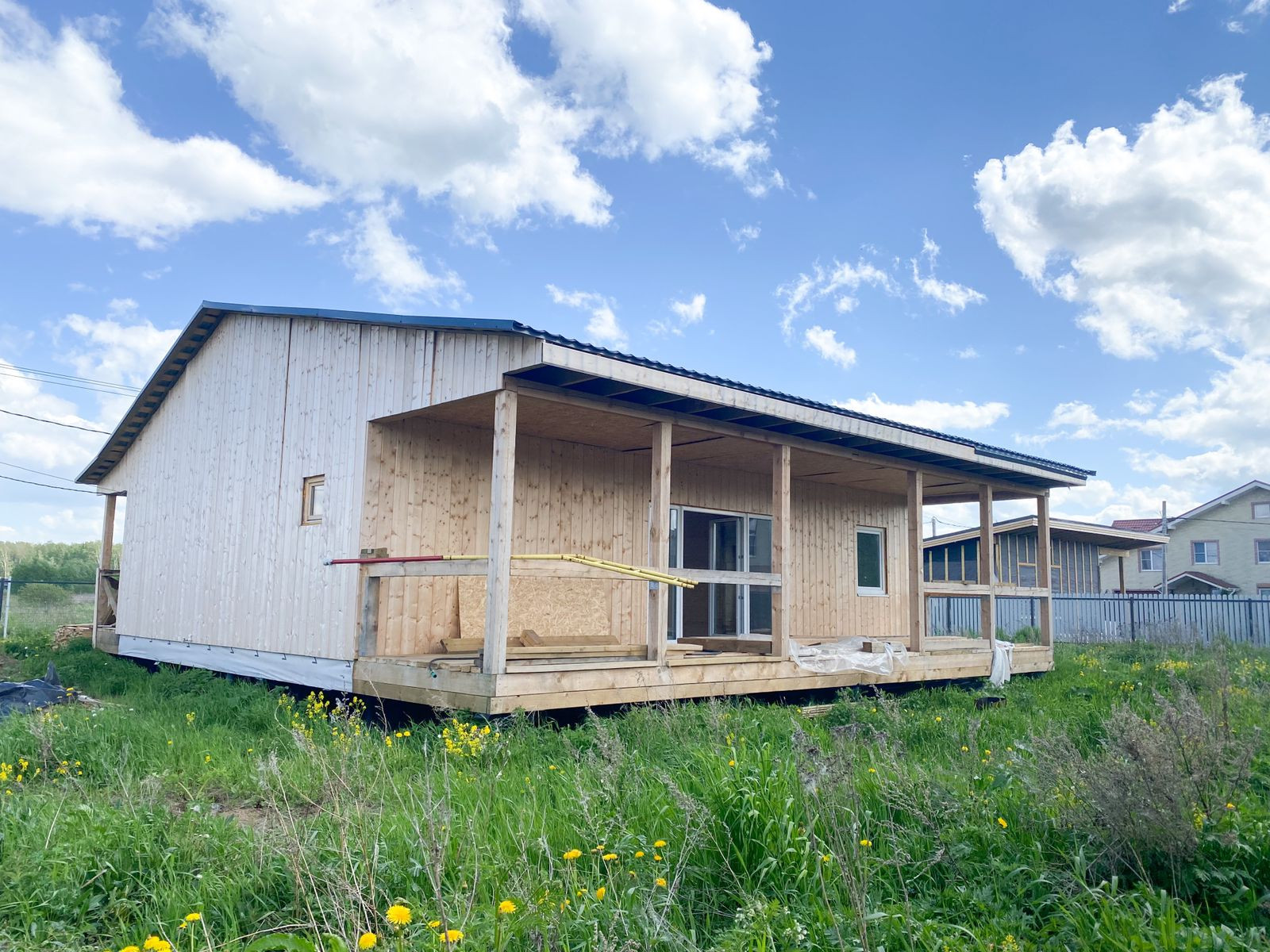 Каркас изготовлен из лучших пиломатериалов и с использованием лучшего утепления, крыша - металлочерепица, внутренняя отделка- имитация бруса, частично без внутренней отделки(потолки, ванная) , что даёт возможность завершить проект по своему желанию, полы шпунтованная доска 147*27 настелены ,ванная комната и туалет "зашиты" влагостойкими плитами квик-дек и готовы под отделку, имеется сауна.
