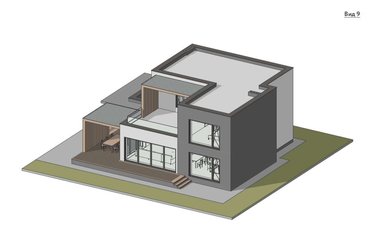 В данном проекте предусмотрена возможность организовать дополнительные зоны отдыха на эксплуатируемой кровле основного дома площадью 120 м2, а также на кровле гостевого дома площадью еще 100 м2! Дома с плоской кровлей в стиле «Хайтек» хороши как раз тем, что позволяют делать подобные доработки в любой момент! В данном случае, Вы можете добавить еще 2,2 сотки для зон отдыха, не задействовав при этом площадь самого участка!