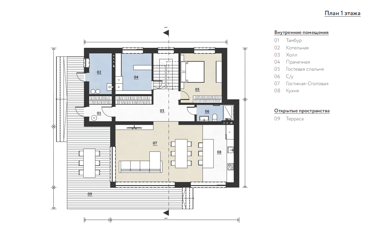 Планировка дома включает в себя: