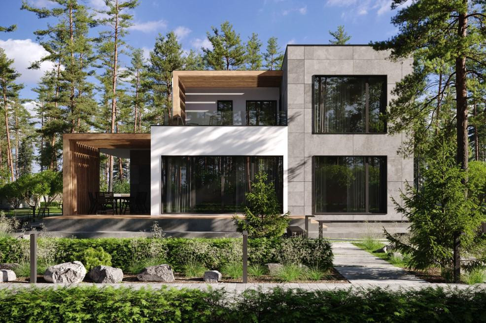 - панорамные окна и двери на 1-м и 2-м этажах